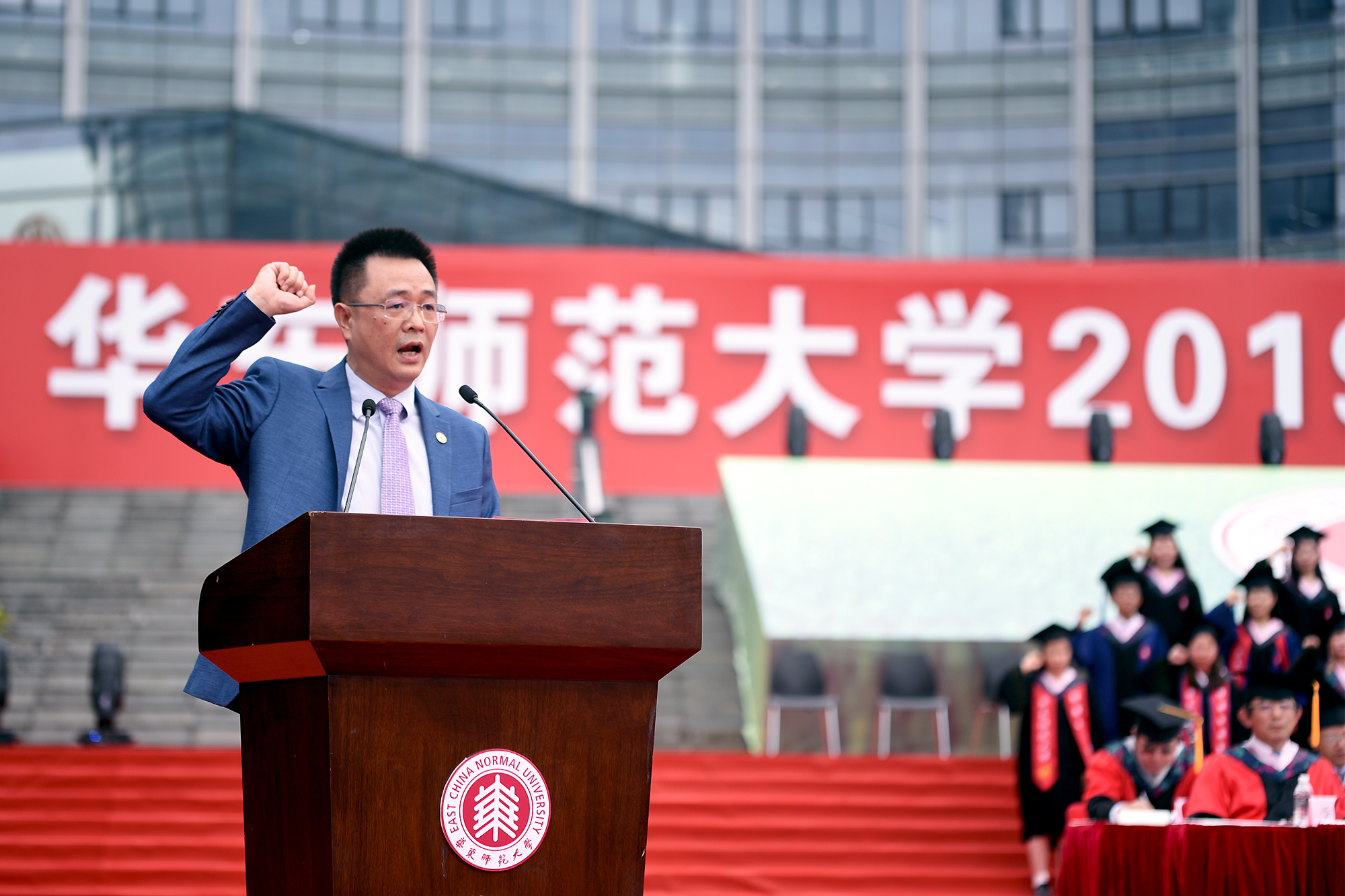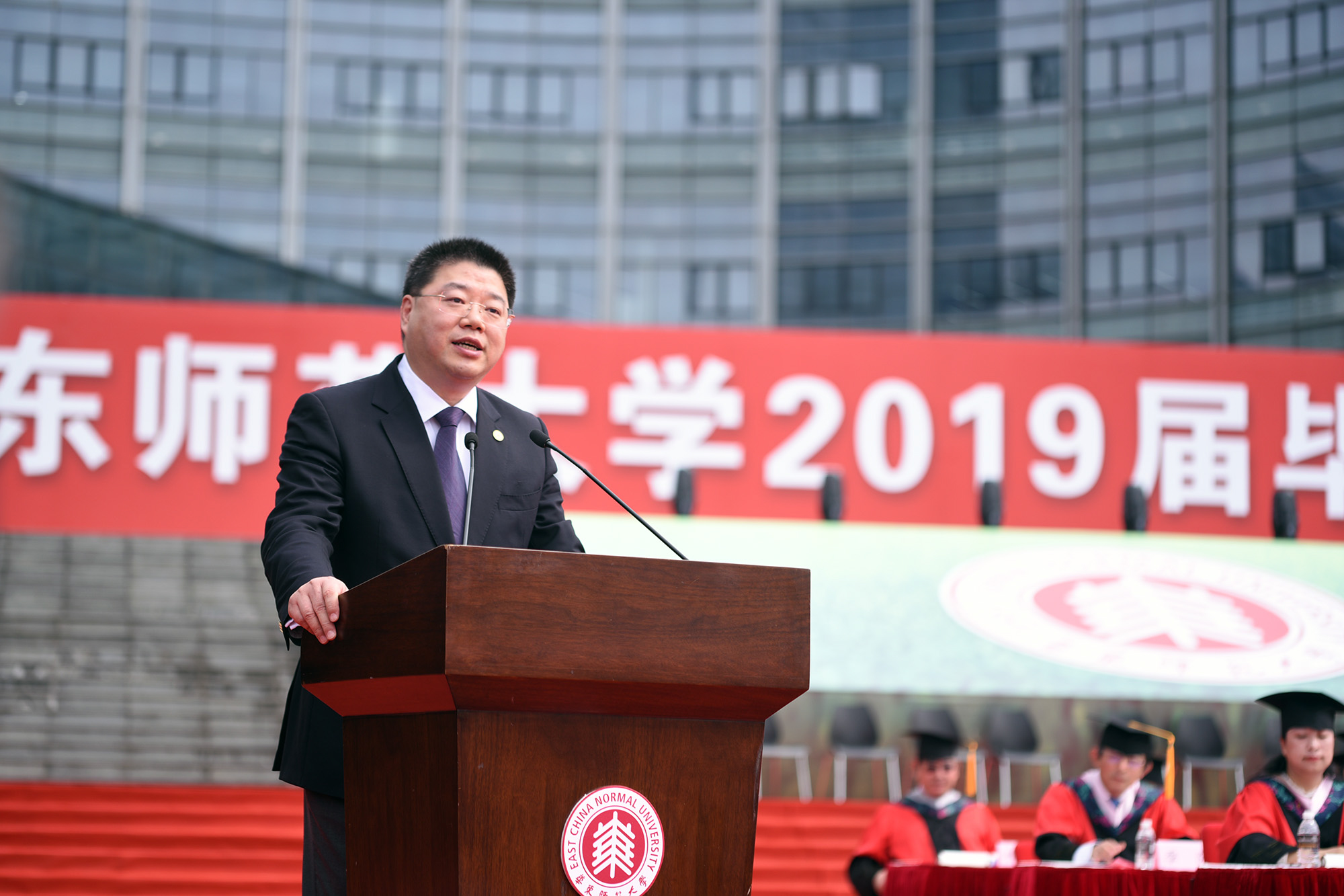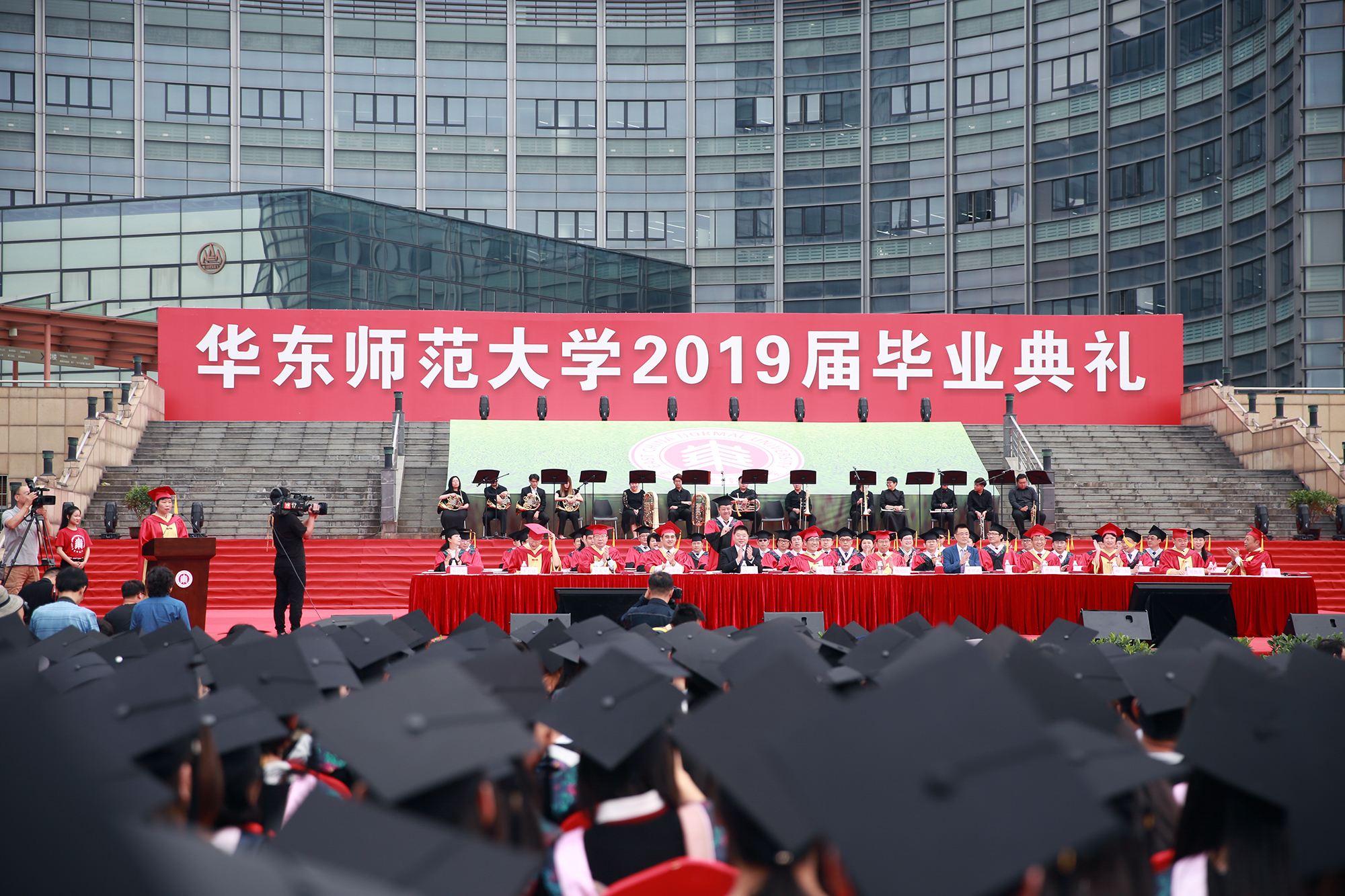 六月是属于毕业生的季节。典礼主持人校党委副书记杨昌利介绍,2019年,华东师大共有毕业生7054人,其中研究生3588人,本科生3466人。其中,有超过四分之一的同学立志投身于教育事业,有近两成同学继续求学深造,还有不少同学即将进入各自的专业领域工作,或是投身军旅、支援西部到祖国最需要的地方去,用实际行动诠释新时代青年的使命与担当。杨昌利表示:“这一刻是永远难忘的,经历了无数个日日夜夜的辛勤浇灌和不懈努力,入学时播撒的种子如今已结成累累的硕果,在六月的师大绽放出最为耀眼的光芒。”