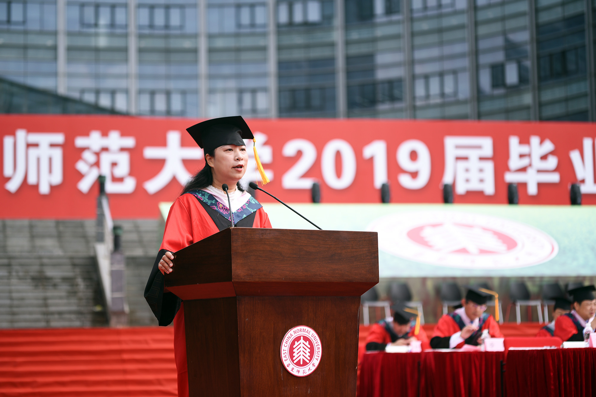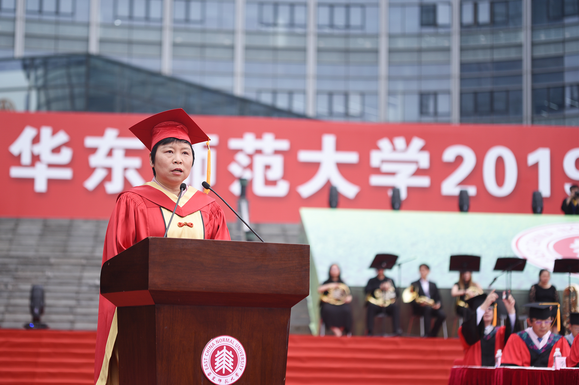 在毕业生即将离开校园、描绘人生崭新蓝图的时候,作为年青一代的燃灯者和领航人,教师们希望能将人生与学术的真谛传递给莘莘学子。外语学院院长袁筱一教授,多年从事法语语言、文学、翻译的教学与研究,其译作《温柔之歌》获第十届傅雷翻译出版奖。她用铿锵玫瑰般的语言向毕业生传递着她的期许:“我愿你们离开之后,能用从华东师大继承到的不变抵抗生活中时时刻刻都在产生、而价值却只系于一瞬的变化。”华东师大想要传承的,是怎样的不变呢?“华东师大所能够、并且期待给予你们的最最平常的不变,应该是与其他任何一所好的大学都没有分别的知识的能力。这种知识的能力使得我在离开学校,走入更为广阔的世界时不再畏惧,在问自己能够为这个社会做点什么的时候充满信心。所谓的知识,当然不只是老师在四年的时间里,通过课堂勾勒的某个领域内的知识体系。冯契先生所说的,要将‘理论’转化为‘方法’和‘德性’,这是关于知识、主体与世界的最朴素的、同时也是最好的表达。” 袁筱一说,“稍微不平常一点的不变,是学会接受做一个普通人。”她说相较于梦想的绚烂,华东师大曾给她的最大教益之一,是学会在抵达梦想前,甘心做一个普通人。“甘心,从而调整好气息,走好每一步,而不是一味地追问距离目标还有多远;甘心,从而认真地对待手上的每一件事情,而不是一味地追问这件事情能为自己带来多少即时的好处。”她表示,能从华东师大继承的最高贵的不变,是一颗坚定的,向往阳光的灵魂,足以抵挡在未来日子里可能遇到的所有伤害。