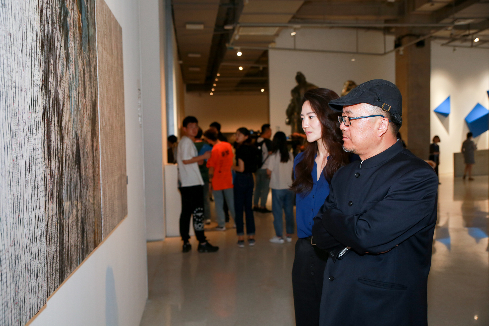 王宏舟在致辞中说道:“这是华东师大近年来规模最大的一次教师展,这次展览以美育定位为导向,整体作品侧重于对现实的关照和现场的阅读,进一步的聚焦社会文化和当下热点。这次呈现出的不同风格的作品是一次美学视觉的分享,也体现了美院老师在新时代背景下关注艺术创作,注重人才培养的思想和理念的交流与分享,这里呈现的有不少是我们美院老师教学积累的成果。我们希望今天只是开端,每年还能一步一步的扎实前进。希望华东师大美院能为推进新时代中国美育事业的发展做出更多的贡献。”
