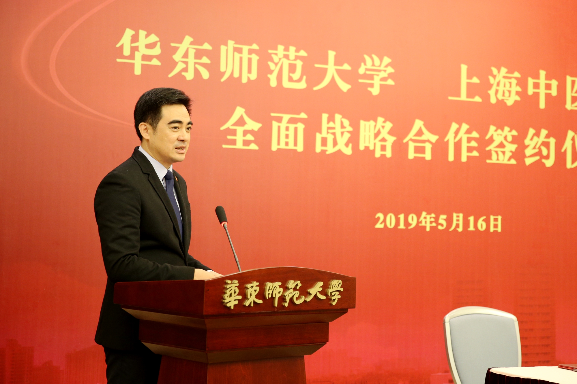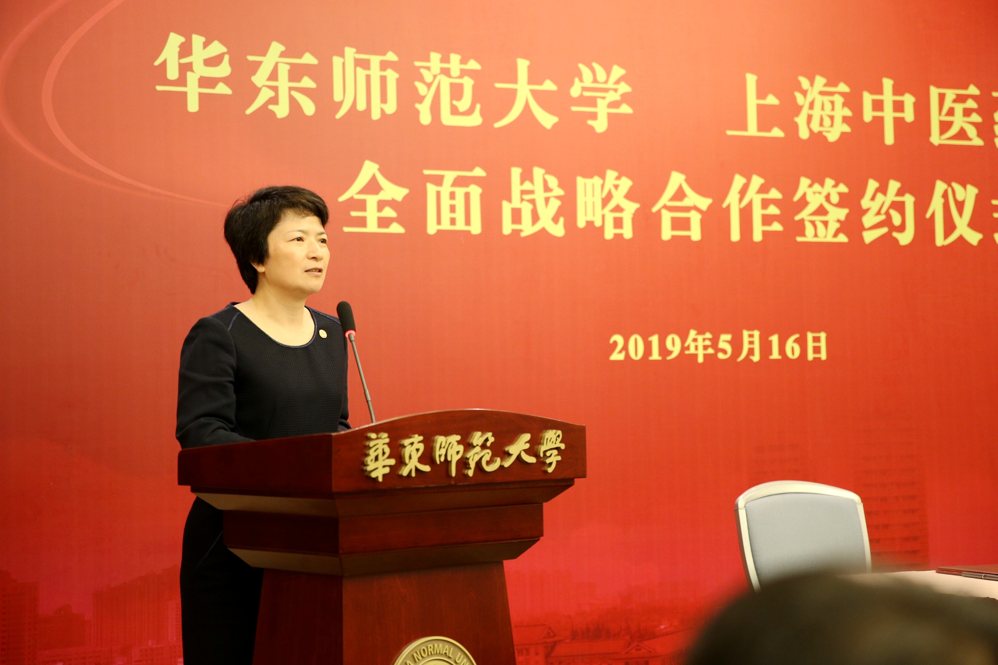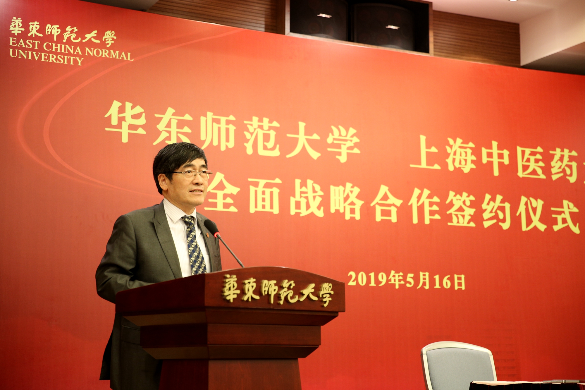 童世骏在讲话中指出,华东师大与上海中医药大学有着深厚的合作基础。华东师大作为地处上海的国家“双一流”建设A类高校,始终坚持对接国家战略和上海发展需求,学校在第十三次党代会上确定了深入实施“教育+”“生态+”“健康+”“智能+”“国际+”五大行动计划。此次两校的深化合作,既是巩固已有合作的“活水源”,更是为了构筑一流大学和一流学科建设的“蓄水池”。相信在双方的精诚合作、脚踏实地的推进下,必将携手打造出“健康中国”背景下校际合作的“样板房”、创新医学人才培养的“示范地”和高校服务医疗供给侧改革的“试验田”,为提高广义上的全民健康水平提供更普惠的幸福方案。