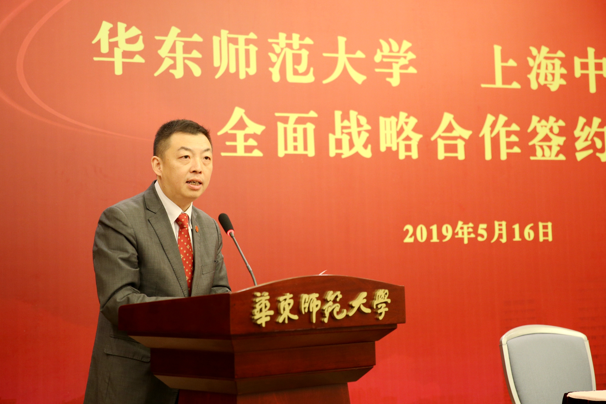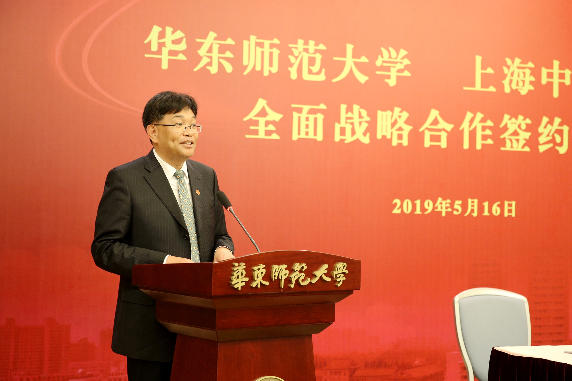 华东师大副校长梅兵介绍两校全面战略合作框架协议
