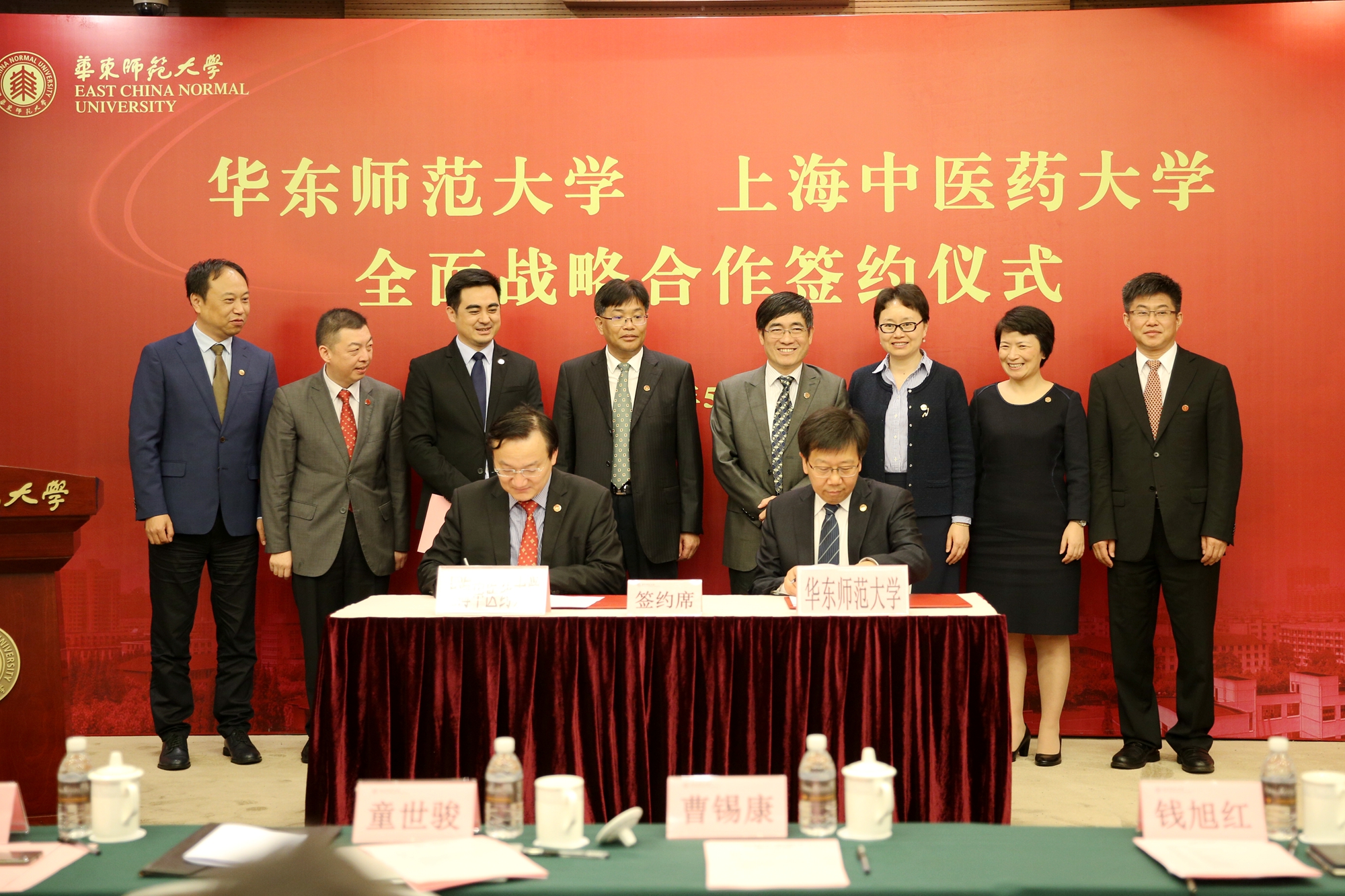 华东师大校长钱旭红和上海中医药大学校长徐建光代表双方签署两校全面战略合作框架协议
