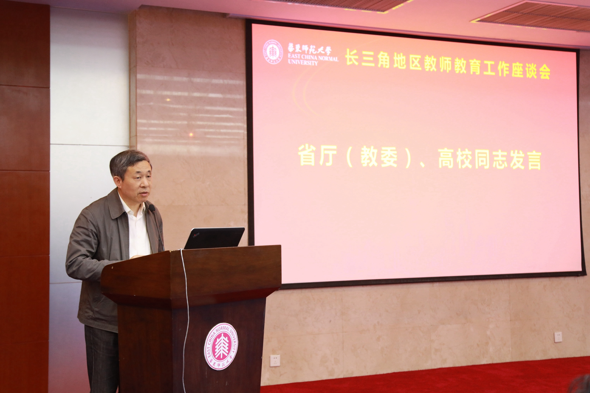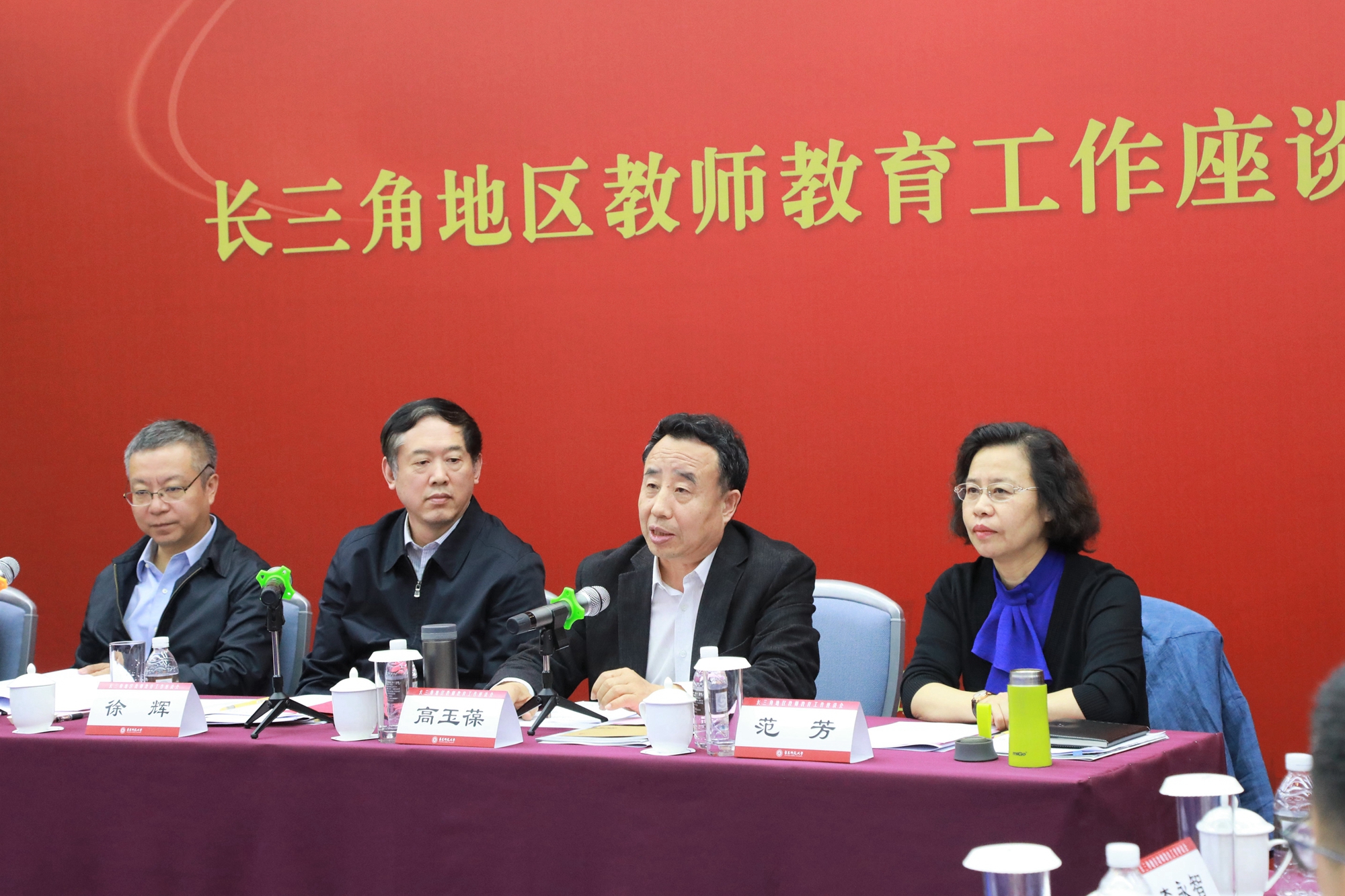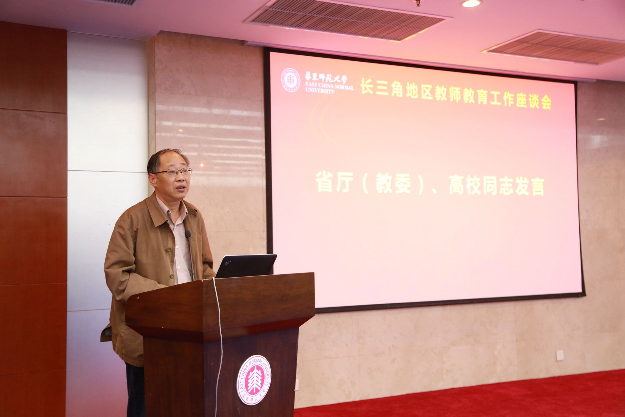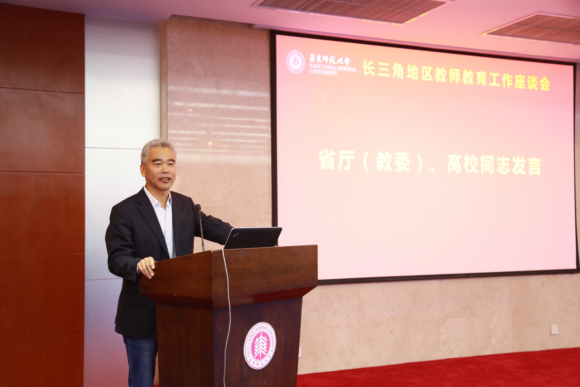 座谈会上,上海、江苏、浙江、安徽省(市)教育厅(教委)以及相关师范院校代表的领导和专家围绕教师教育工作从基本情况、经验做法、问题困难、意见建议等方面做了发言。永利皇宫登录官网副校长戴立益代表我校做了“新时代智能新师范——华东师大在行动”的报告,介绍了我校在教师教育方面的努力和成就,以及在智能时代办新师范的各种探索,并就国家在新时代发展教师教育过程中的问题提出了有益的建议。