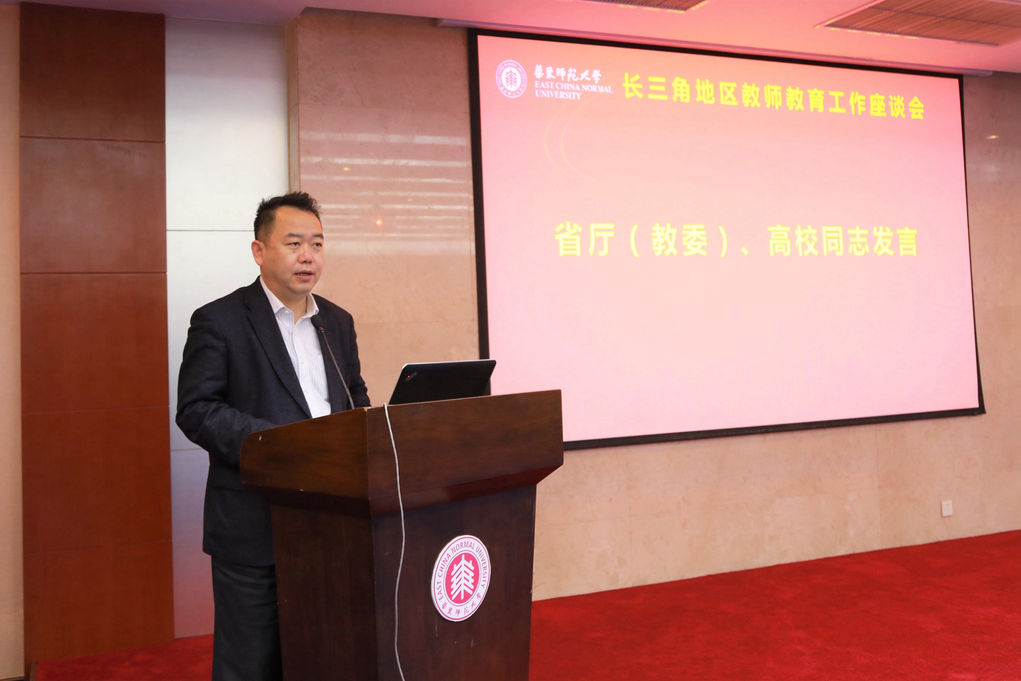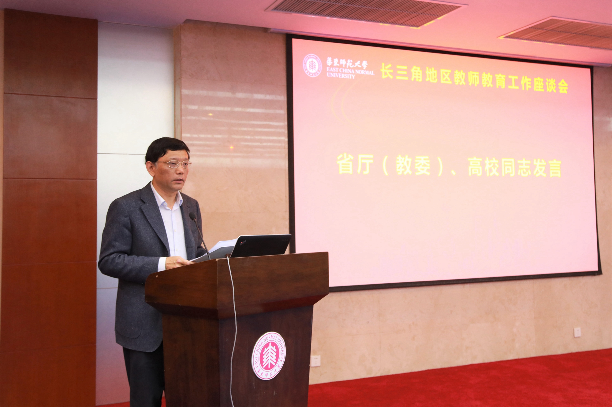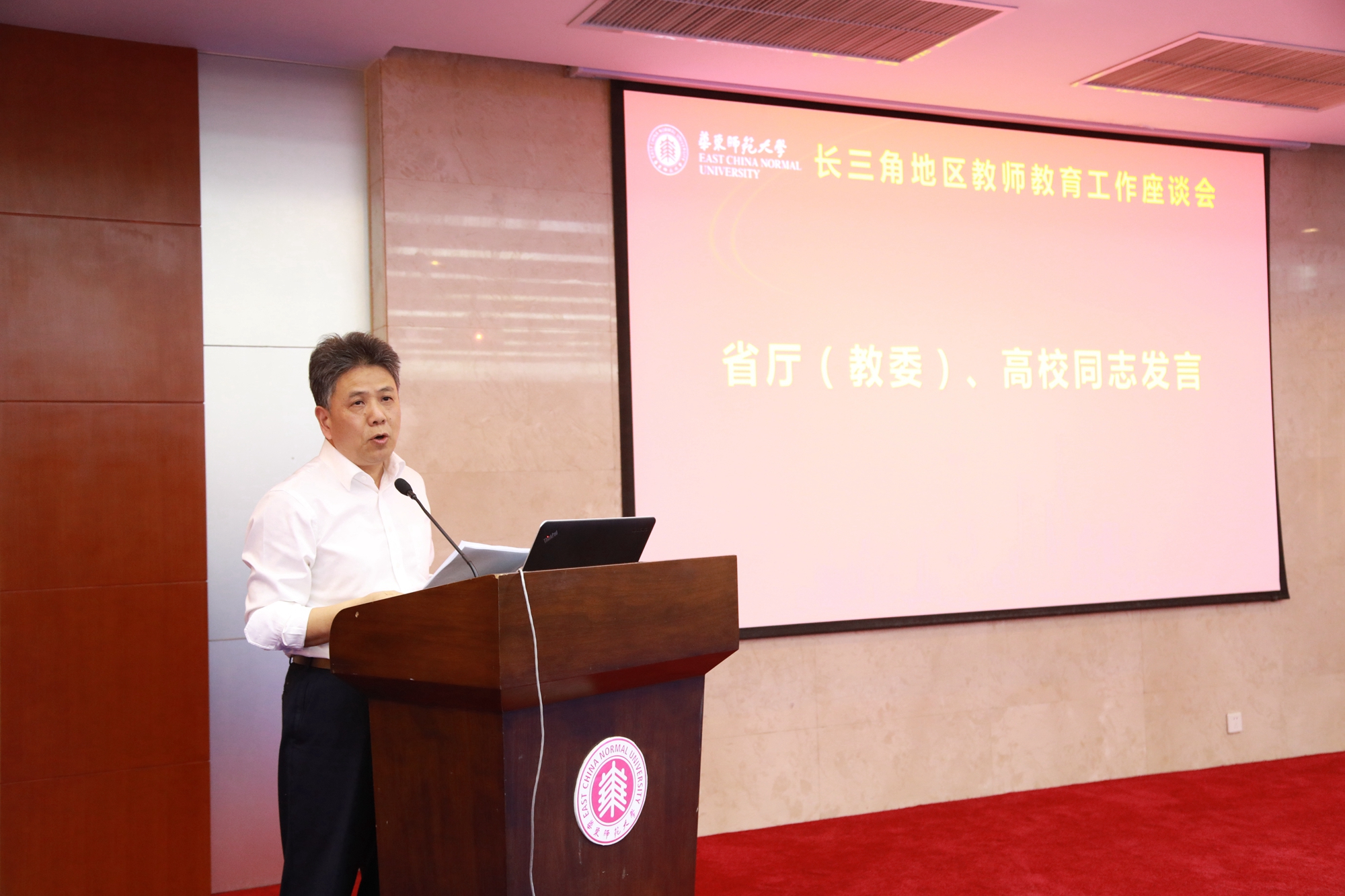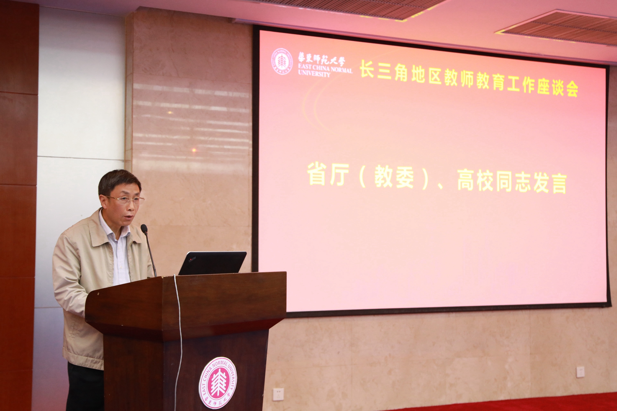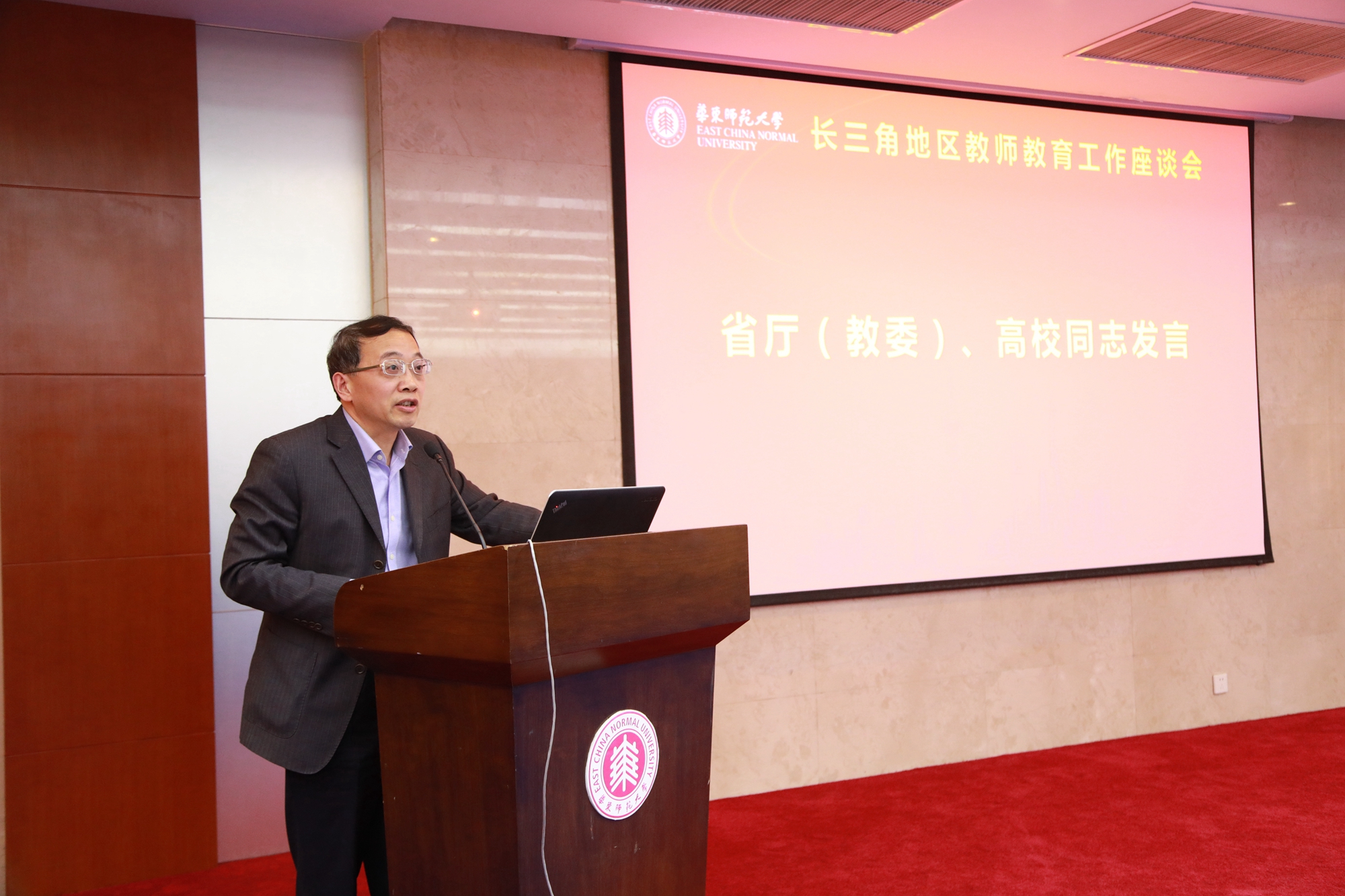 座谈会上,上海、江苏、浙江、安徽省(市)教育厅(教委)以及相关师范院校代表的领导和专家围绕教师教育工作从基本情况、经验做法、问题困难、意见建议等方面做了发言。永利皇宫登录官网副校长戴立益代表我校做了“新时代智能新师范——华东师大在行动”的报告,介绍了我校在教师教育方面的努力和成就,以及在智能时代办新师范的各种探索,并就国家在新时代发展教师教育过程中的问题提出了有益的建议。