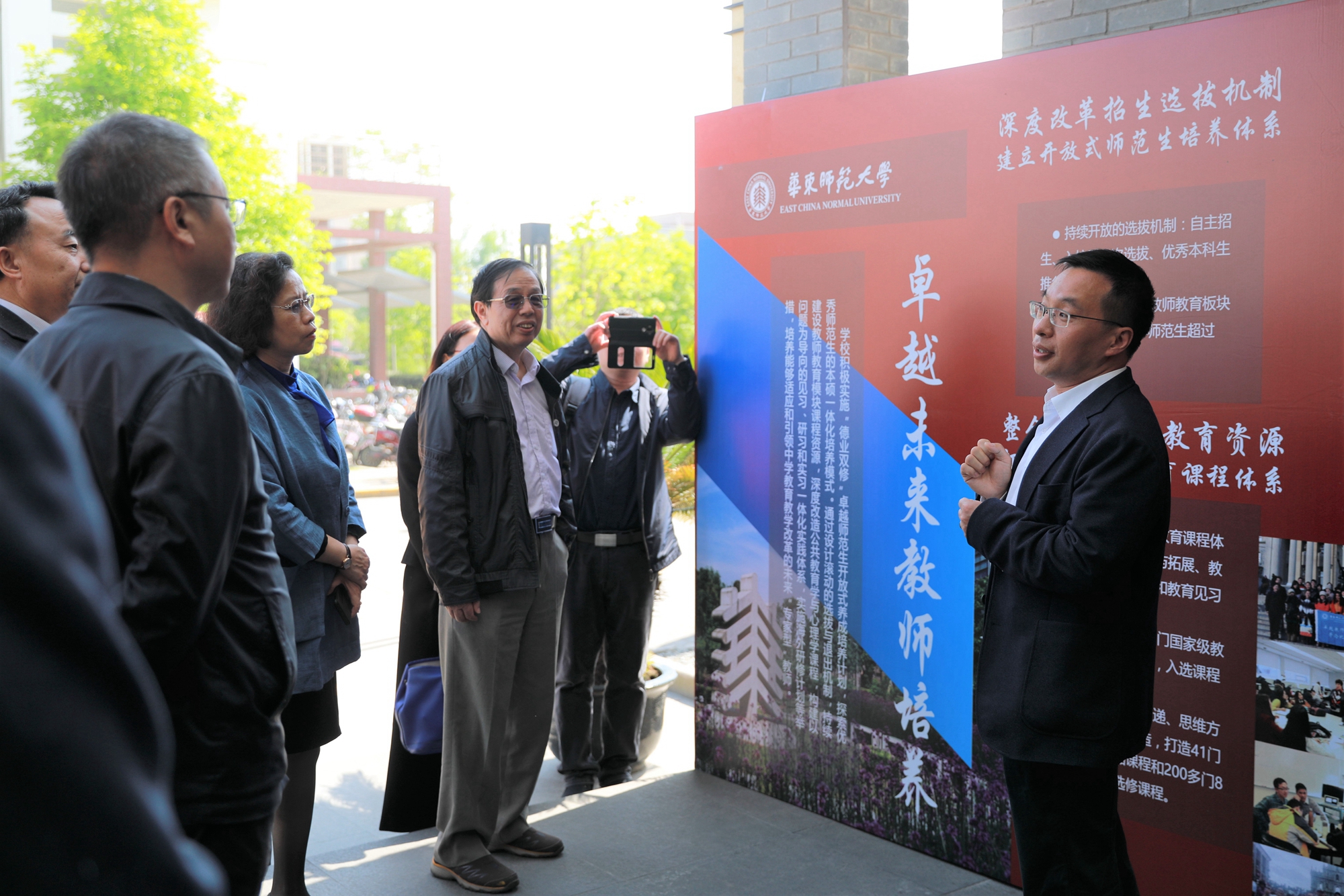 下午,在樱桃河畔,与会嘉宾在全国政协常委、上海市副市长、民盟中央副主席、民盟上海市委主委陈群的带领下,对永利皇宫登录官网的师范生培养,教师教育工作进行了现场考察,先后实地调研考察了孟宪承书院、教师教育国家级实验教学示范中心、中国语言文学系,听取了我校中文系中国语言文学学科建设和本科教学情况汇报,听取师范专业示范性课程“语言学概论”利用“大夏学堂”进行翻转混合式教学的情况介绍,并就其中的相关问题进行了研讨。调研团队一行还考察了冯契学术成就陈列室。