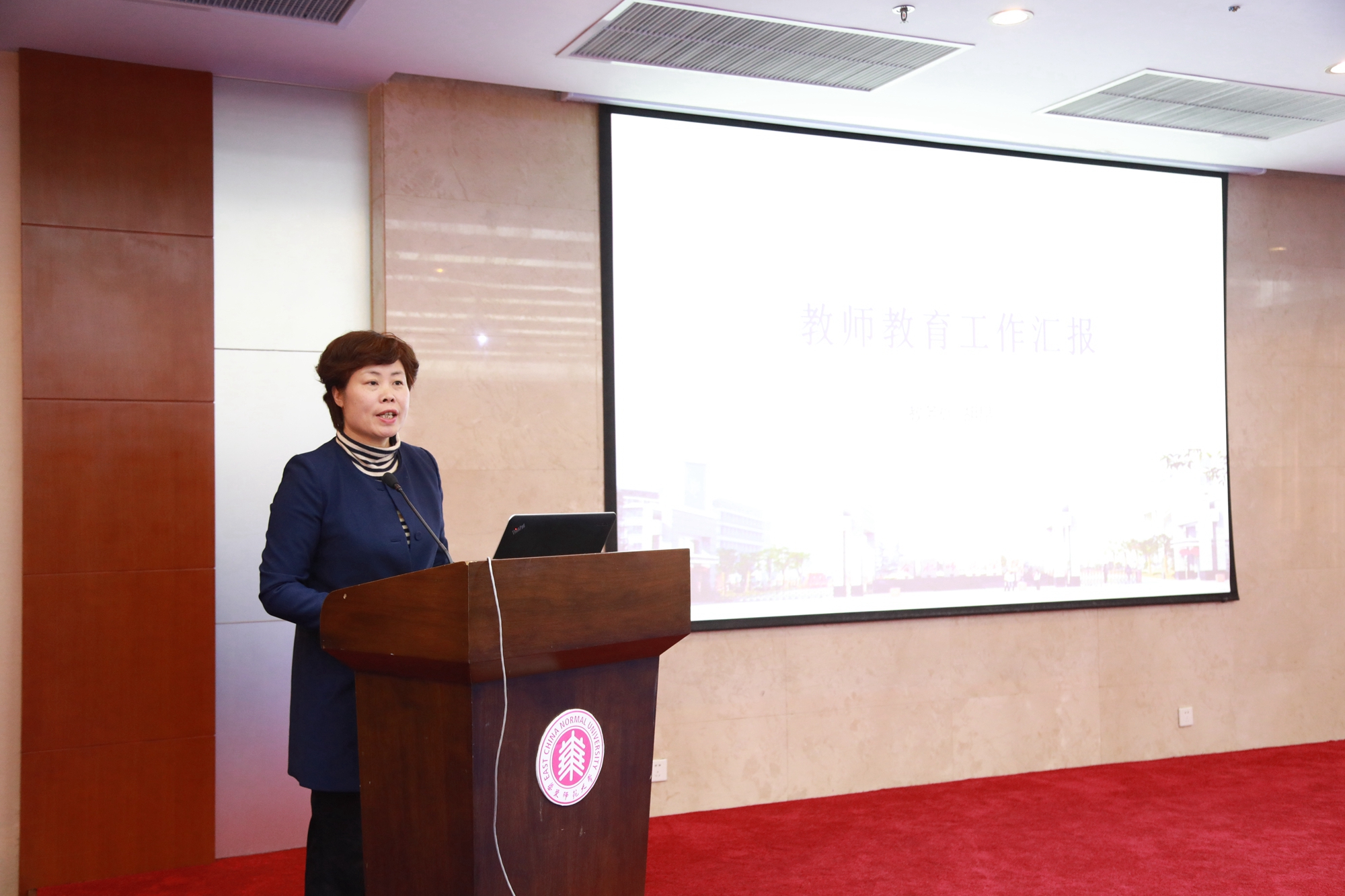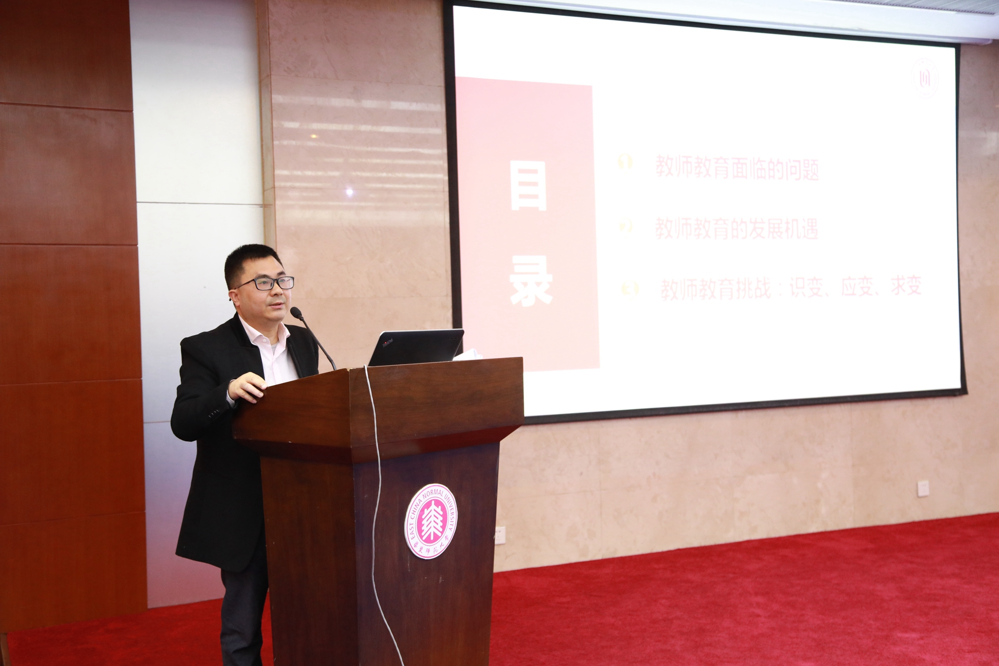 教育部教师工作司司长任友群在讲话中强调,教师队伍建设是教育事业的基础工作,改革开放四十年来特别是十八大以来,教师教育取得了巨大成就,但还存在需要攻坚克难的地方,尤其是在中西部地区、农村地区,加强教师队伍建设工作刻不容缓。在改革过程中,我们要认真贯彻习近平总书记关于加强教师队伍建设的重要论述和指示精神,明确新时代教师队伍建设的根本任务。他提到,要增强教师职业吸引力,形成尊师重教的社会氛围,当前要重点发力的问题主要包括师德师风建设、教师减负、教师待遇、教师职称、教师编制、教师教育体系提升等。他希望大家不畏困难,早作筹谋,积极对标,齐心协力,努力实现“培养造就数以百万计的骨干教师、数以十万计的卓越教师、数以万计的教育家型教师”的教育现代化目标。