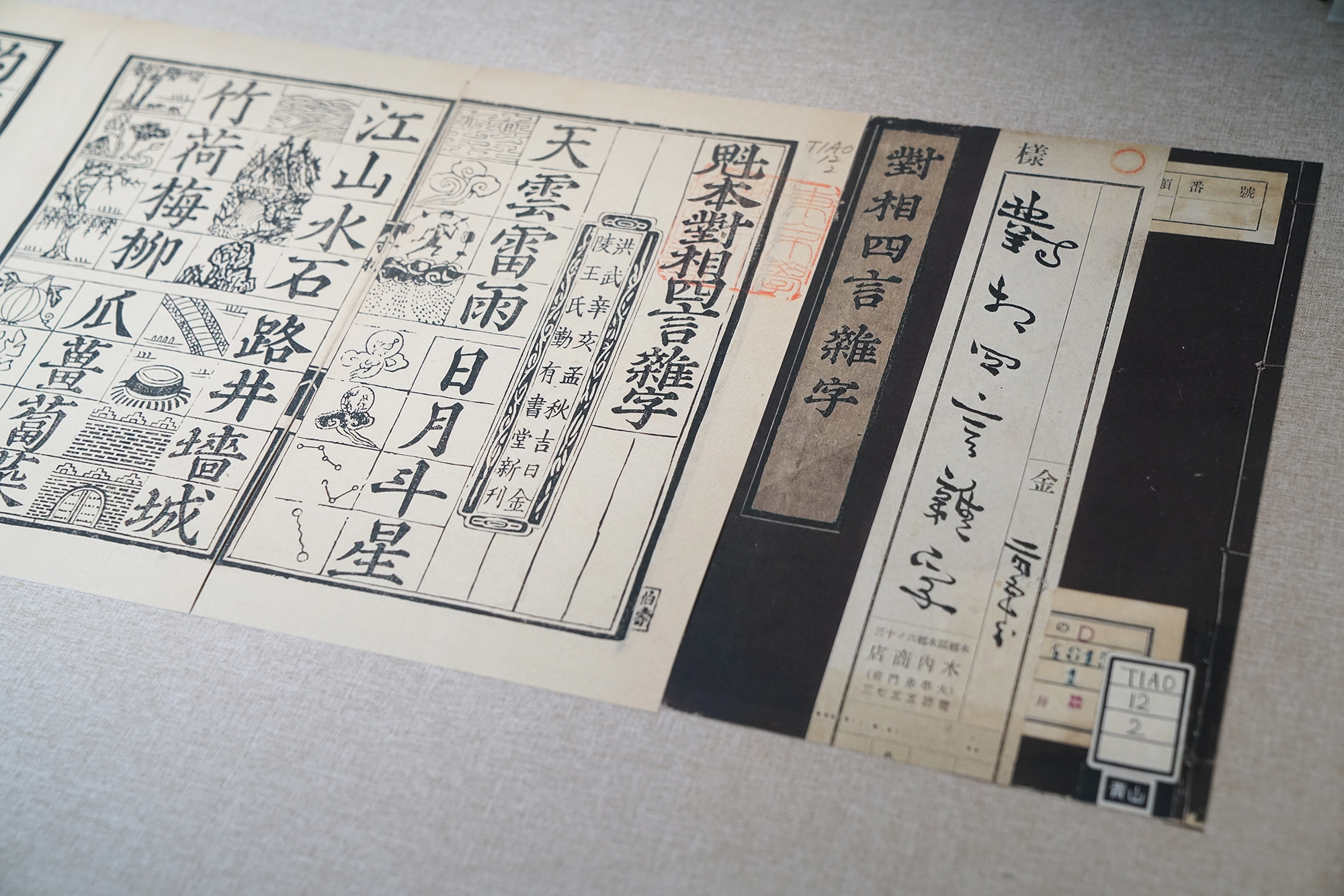 展览现场呈现了全本的《新编对相四言》。这本著作无撰者姓名及出版年代,不少学者对其出版做出过考证,如张志公、商伟、唐晓云等。现藏于哥伦比亚大学东亚图书馆的《新编对相四言》为1436年刻本,2015年上海书店出版社出版了该书的影印本。《新编对相四言》问世两百多年后,17世纪的欧洲发行了捷克教育家夸美纽斯编写的第一本幼儿插图读物《世界图解》。