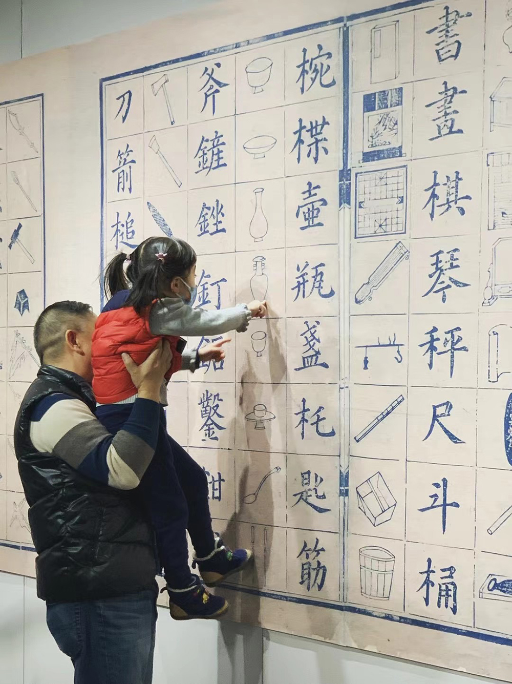 展览现场还展播了与展览主题一致的原创主题纪录片,开展了猜字答图、识别古代异体字和读音的互动游戏。通过围绕主题的实物、图像、影像、游戏、主题沙龙等展览形式,立体鲜活地展示与挖掘了传统中国对相杂字所提供的,通过图像形态表现出来的丰富的知识世界、精神世界及其发展历程,而把各个时代有关农业经济、商业活动、百工技艺及其市井生活的图像加以时间序列连接,这些图像符号将成为我们理解社会历史发展的另一种窗口与路径。