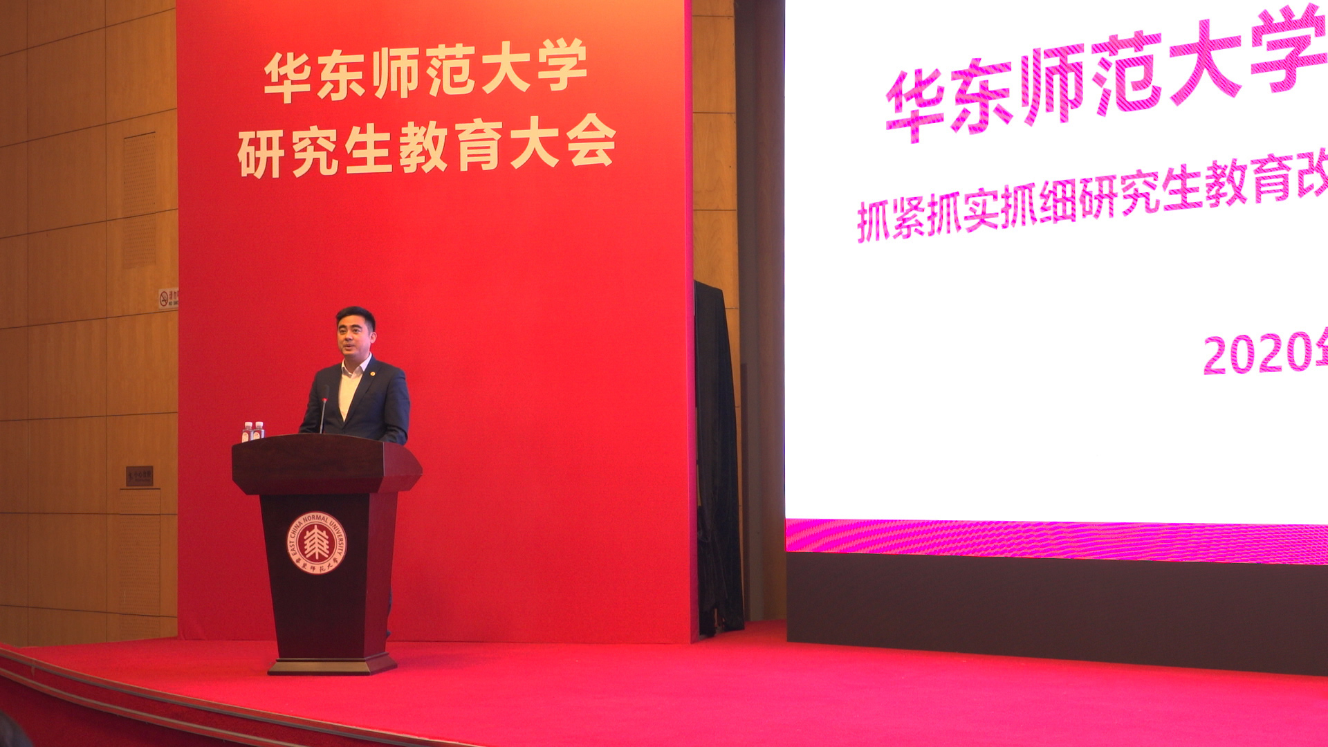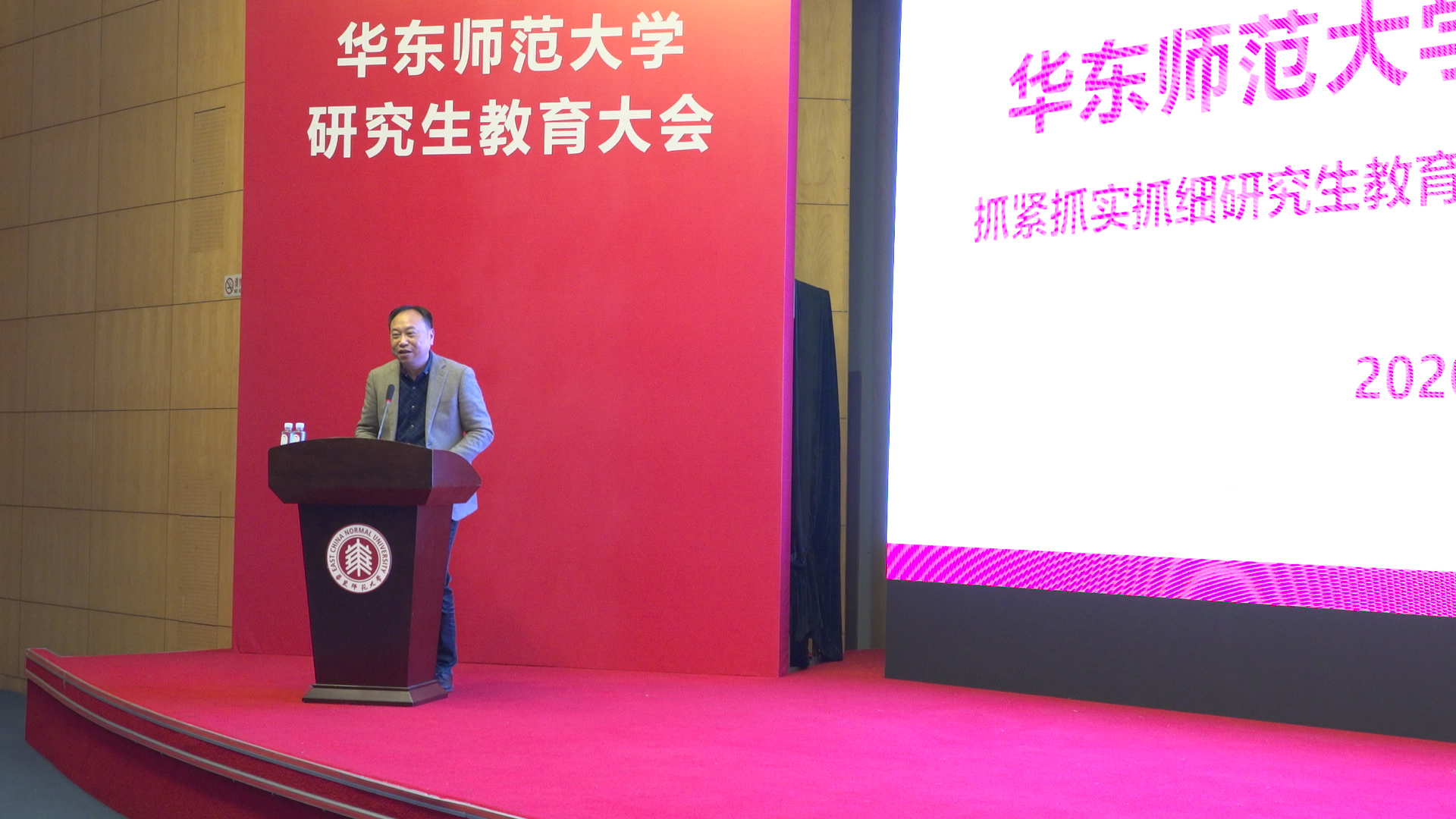 栾宗涛处长代表国务院学位委员会办公室、教育部学位管理与研究生教育司讲话。他谈到,经过多年建设,华东师大研究生教育取得了很好成效,希望学校在推动新时代研究生教育高质量发展中创造更多的经验。他指出,召开研究生教育大会、印发研究生卓越育人工作方案及行动计划是华东师大发展史上具有标志性的事件,将对学校发展,特别是研究生教育和人才培养起到重要作用。