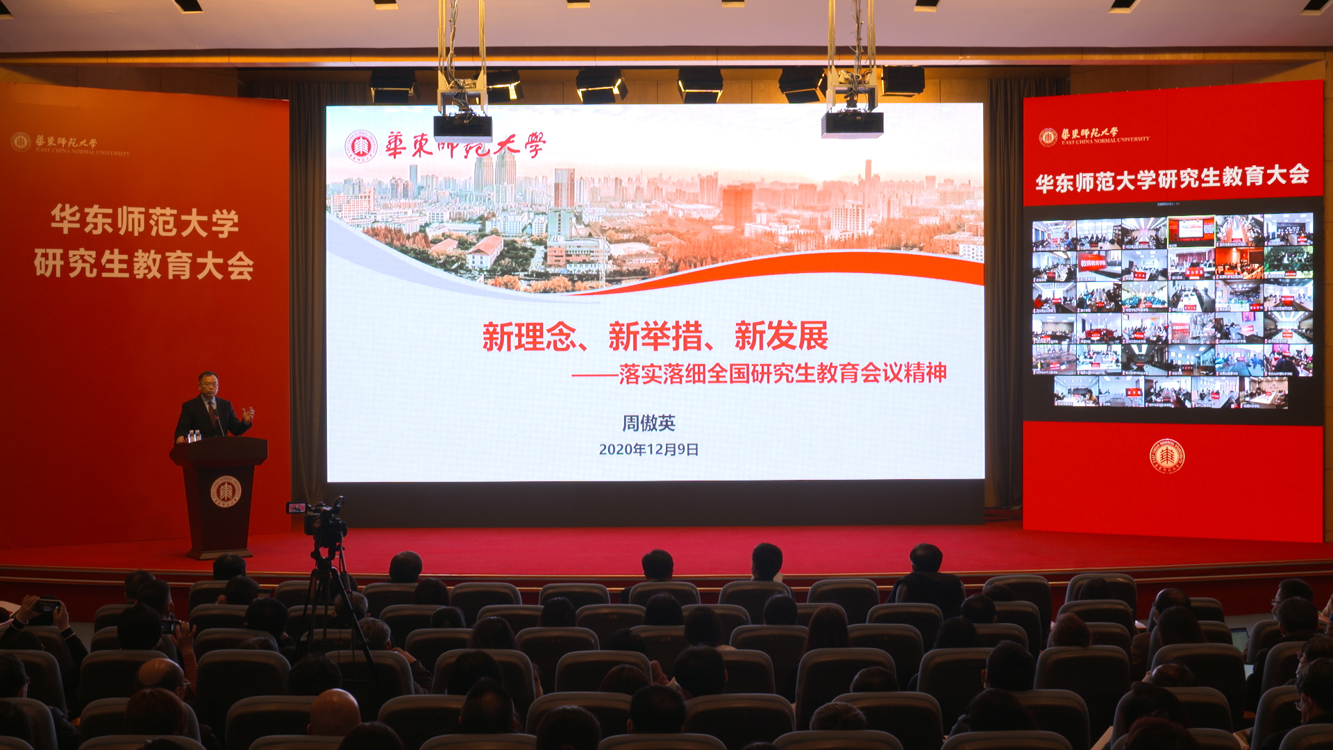 为全面贯彻落实中央领导指示批示和全国研究生教育会议精神,12月9日,永利皇宫登录官网以线上线下相结合的方式召开研究生教育大会。教育部学位管理与研究生教育司栾宗涛处长,校领导钱旭红、朱民、王宏舟、杨昌利、李志斌、周傲英、戴立益,相关职能部门负责人,校学位评定委员会委员、教学委员会委员,学位点责任教授,各培养单位正职、研究生教育分管领导、副书记、研究生工作秘书及全体2020年新增博士生导师等在主会场科学会堂参加会议;各培养单位设33个视频分会场,研究生导师代表和研究生代表与会。校党委常务副书记王宏舟、副校长戴立益分别主持大会第一、第二阶段。