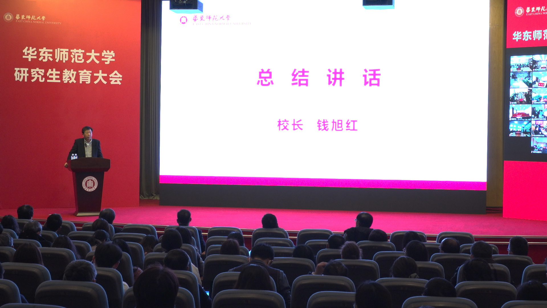 校长钱旭红院士作大会总结讲话,从学校“育人、文明、发展”三大使命内涵出发,阐释了长期以来对研究生工作的思考。钱旭红强调,学校研究生卓越育人工作应特别关注价值塑造、知识创造、思维提升、能力达成和精神养成五个要素,在思政课程与专业课程教育、招生、培养、学位授予等四个方面彻底变革,并提出了检验治理变革效果的三大标志。他希望全体教师从研究生工作的教育目标、人才规格、培养方案、课程体系和教学方式等方面入手,认真梳理反思;要求每一位导师、干部都关心研究生教育,全校上下齐力,全面推进研究生教育创新发展,最终建成能够辐射全世界的研究生教育的方法和模式。