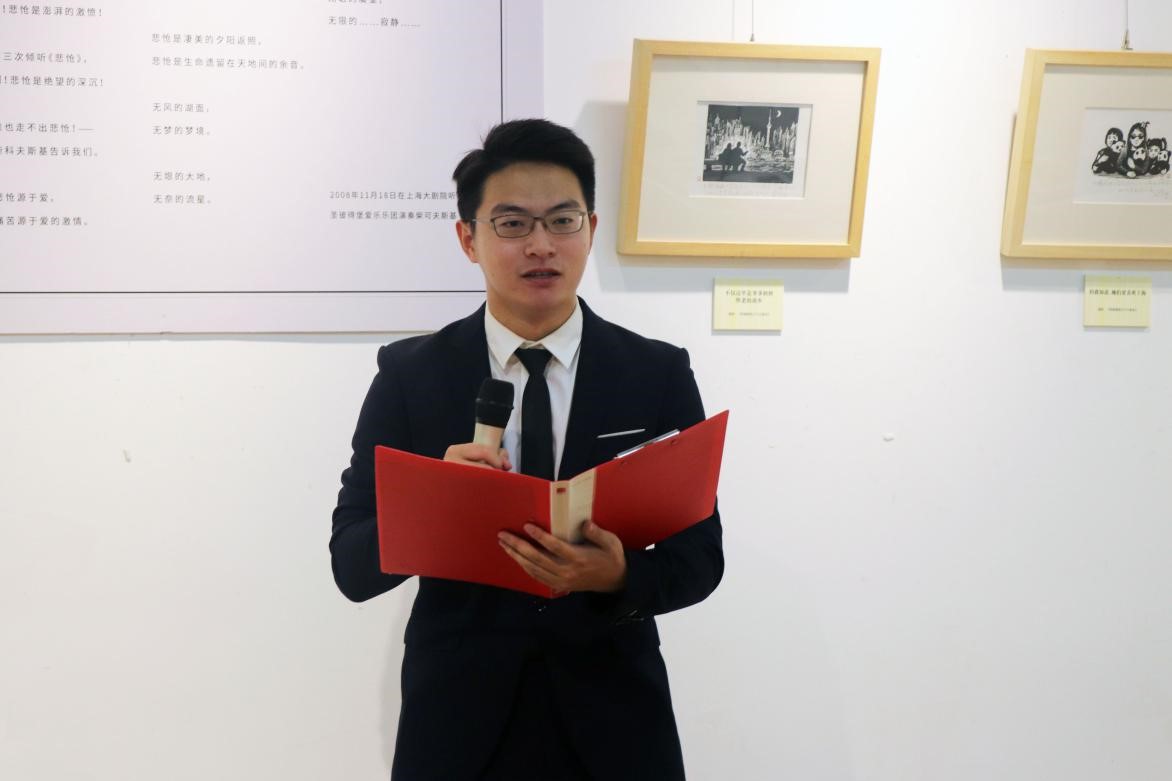 张嵩祖之子、上海当代艺术博物馆张德群在开幕式上深情讲述了父亲的刀木人生:在他小时候的印象中,父亲是为了创作而不需要睡觉的人。此后,几十年如一日,父亲为创作版画废寝忘食,即使退休后仍充满热情。同时,他也回忆了父亲与诗人白桦先生多年交流,只为更好地创作这批版画的艰辛历程。最后,他对华东师大举办此次展览表示感谢。