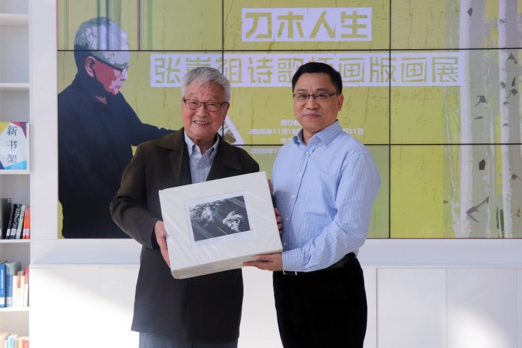 11月18日,展示著名版画家张嵩祖先生的艺术总结之作“刀木人生:张嵩祖诗歌插画版画展”在闵行校区图书馆二楼展厅正式开幕。