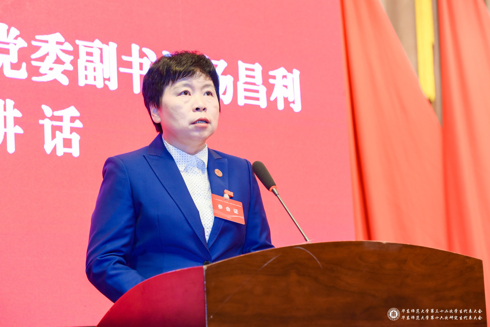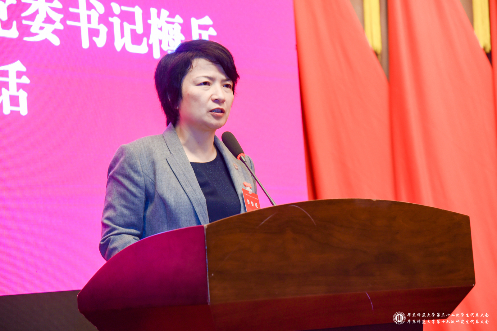 校党委书记梅兵代表学校党委向大会的召开表示热烈的祝贺,并向全体代表致以亲切的问候。她在讲话中指出,“双代会”是学生政治生活中的一件大事,过去一年学生会、研究生会在“德智体美劳”五育体系构建、大学生思想引领、学生组织机构改革、校园文化塑造、社会实践、创新创业等方面作出了独特的贡献,希望未来学生会及研究生会能进一步直面现存问题、明确职能定位、完善运行机制,不断提升自我教育、自我管理、自我服务、自我监督的能力,抓住时代契机,更好的组织动员全校青年学生坚定跟党走,团结更多青年学生,在学业、工作和品德等方方面面成为标杆。