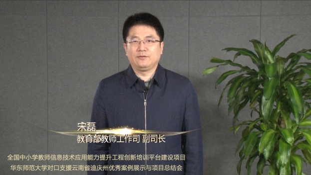 总结活动伊始,项目组采用视频方式回顾了对口支援活动启动以来的需求调研、协议签署、线上线下教研交流、专项培训、案例遴选等活动实施过程。随后,教育部教师工作司副司长宋磊在视频讲话中指出,云南省迪庆州是打赢脱贫攻坚战的主战场,希望通过该项目的“输血”和优秀教学实践的萃取提炼,强化本地教师“造血”能力,同时应总结项目经验,辐射更多地区教师信息化教学能力的提升。