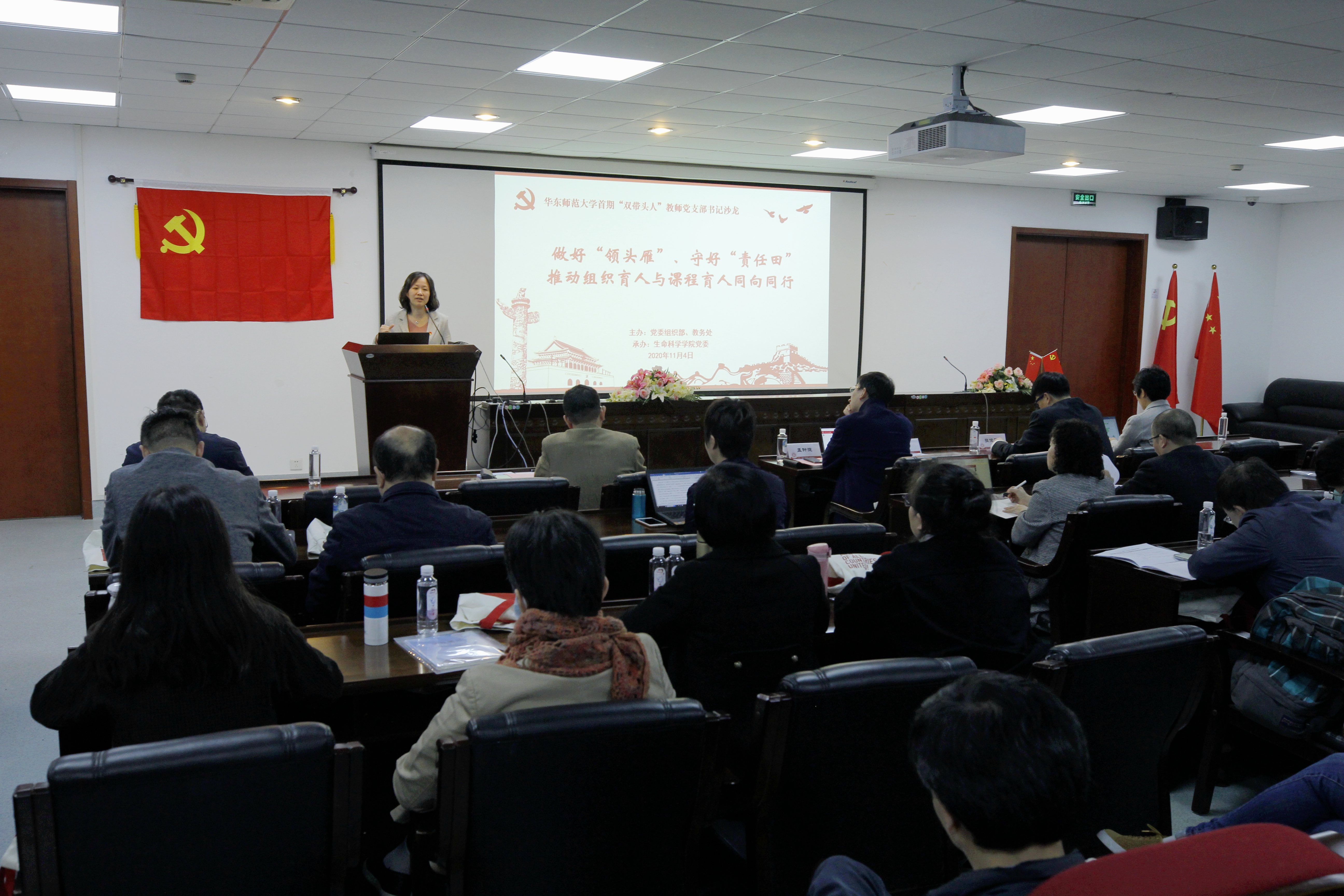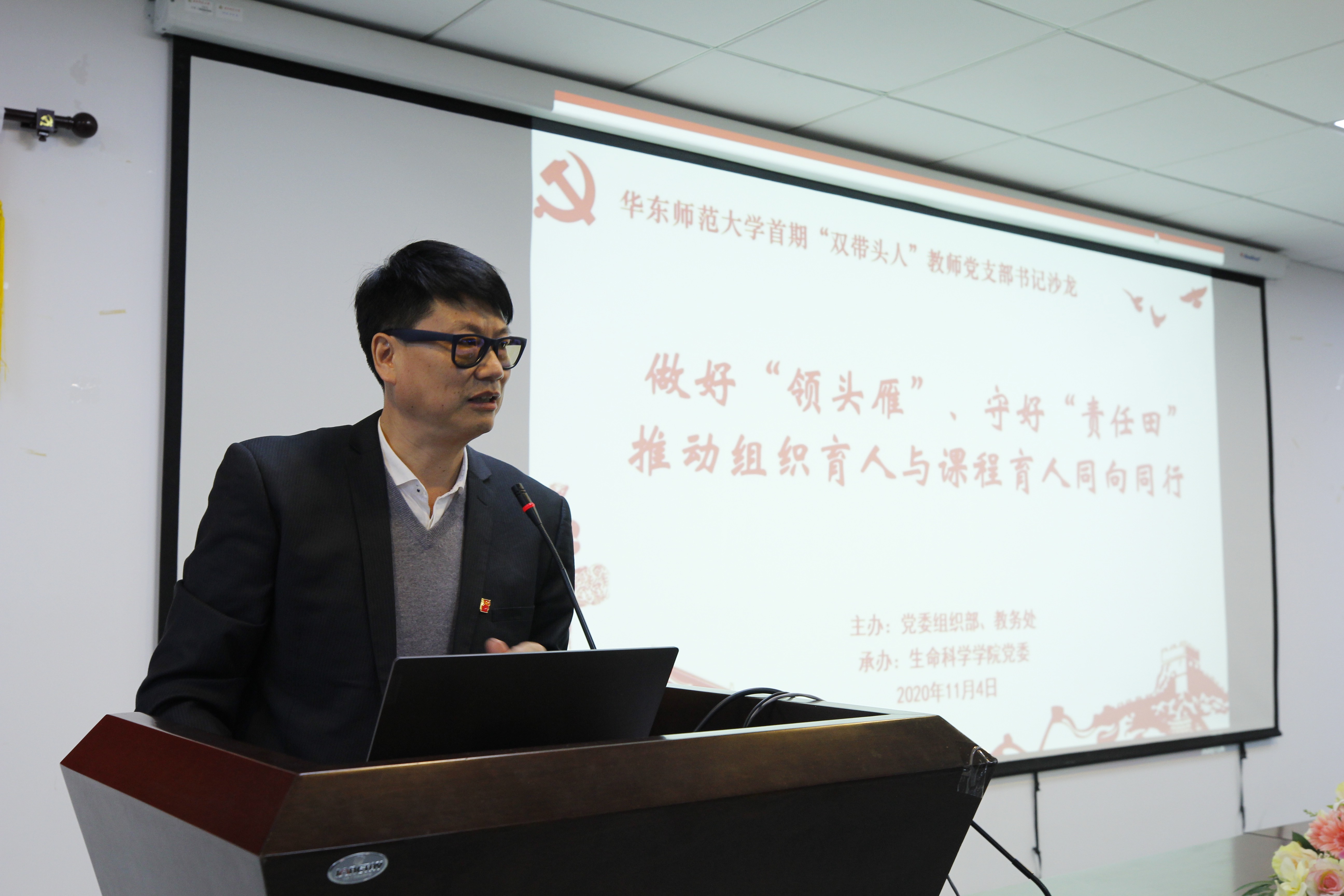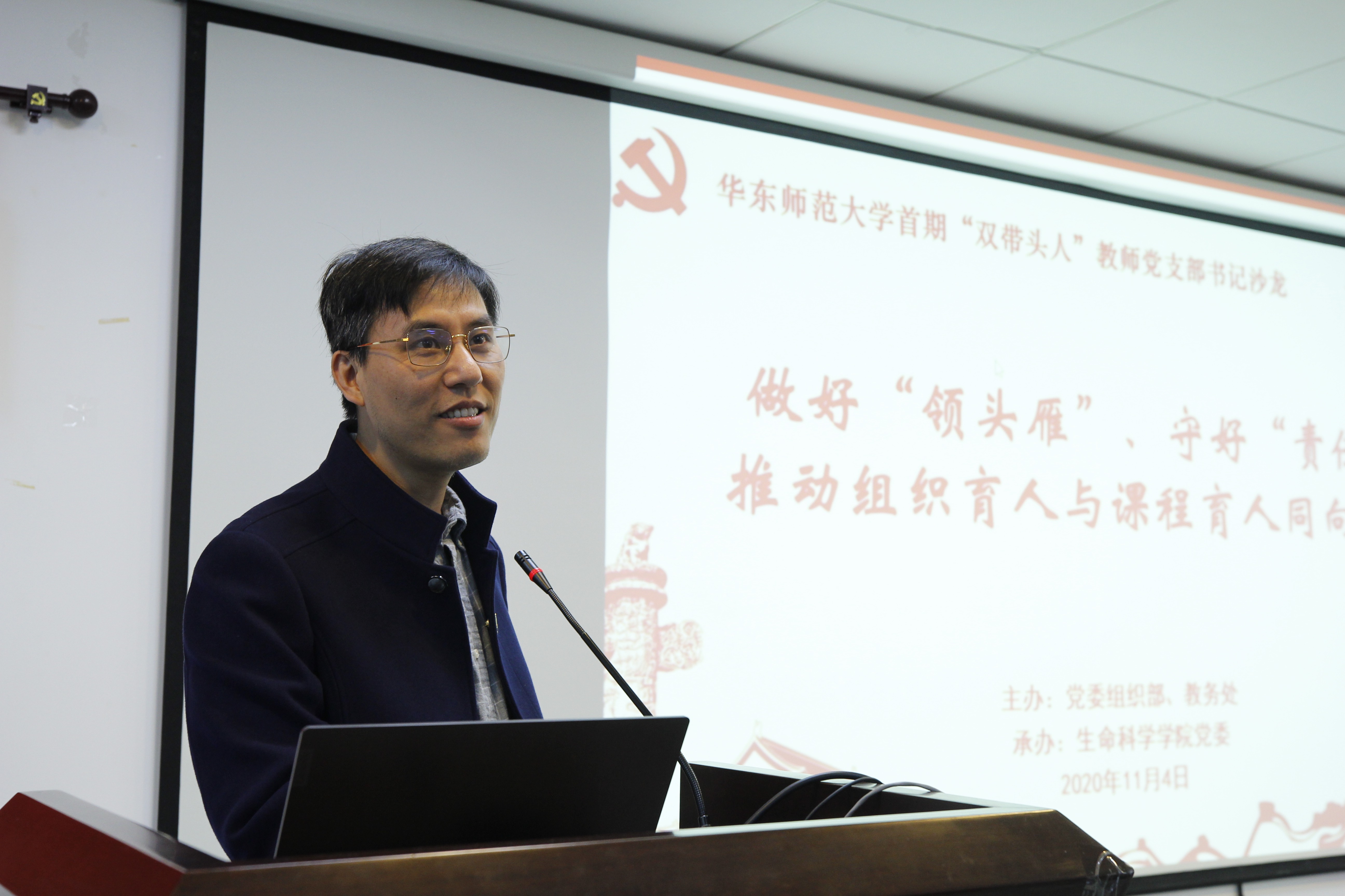 11月4日上午,永利皇宫登录官网首期“双带头人”教师党支部书记沙龙在闵行校区生命科学学院举行。沙龙以“做好‘领头雁’、守好‘责任田’,推动组织育人与课程育人同向同行”为主题,由党委组织部和教务处主办,生命科学学院党委承办。校党委常委、组织部部长程静出席并致辞,教务处处长孟钟捷、党校副校长兼高级研修学院副院长张俊华作点评指导,沙龙由生命科学学院党委书记党远鸿主持,各单位“双带头人”教师党支部书记代表和第18期教职工党支部书记培训班学员与会。