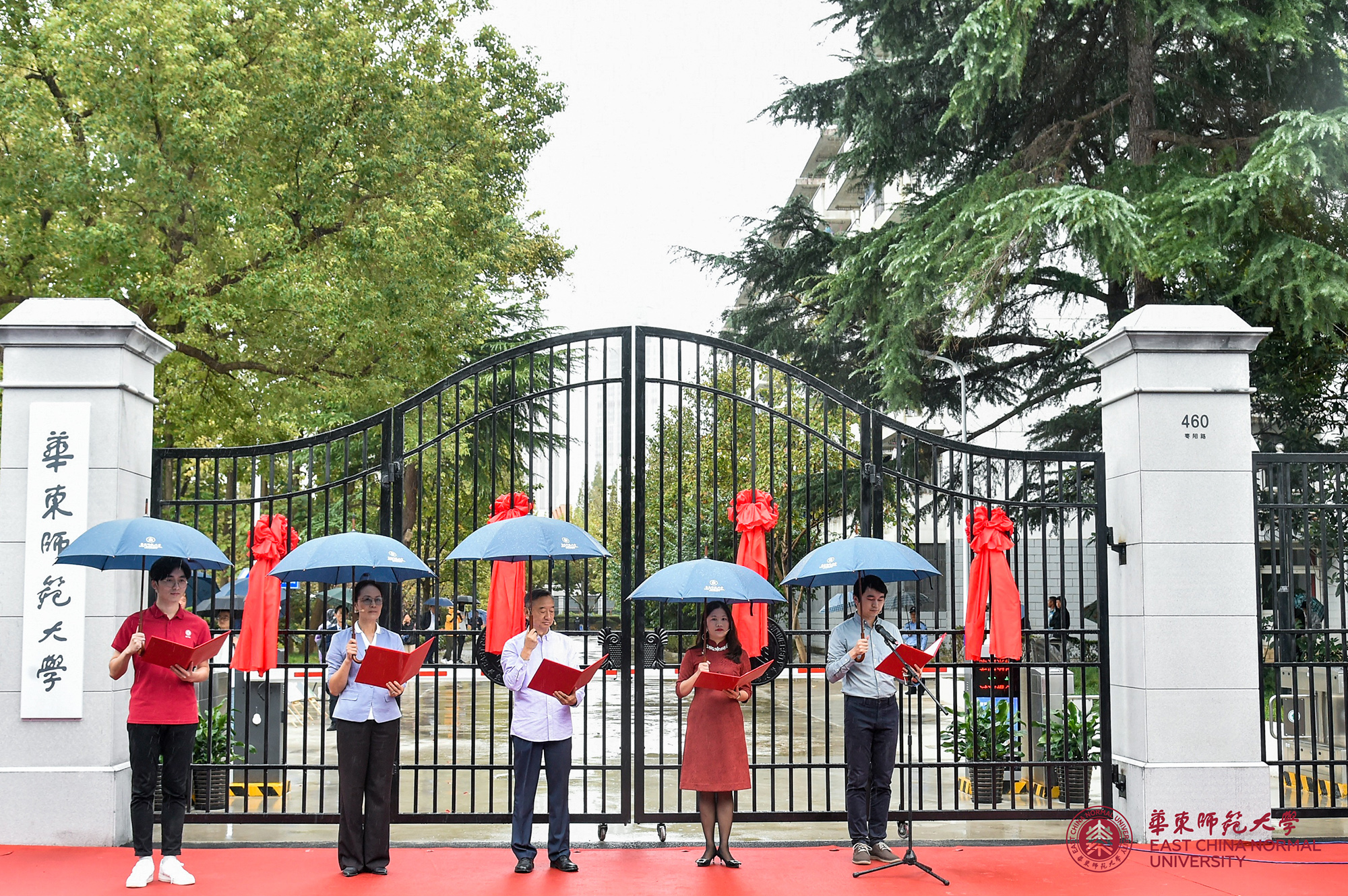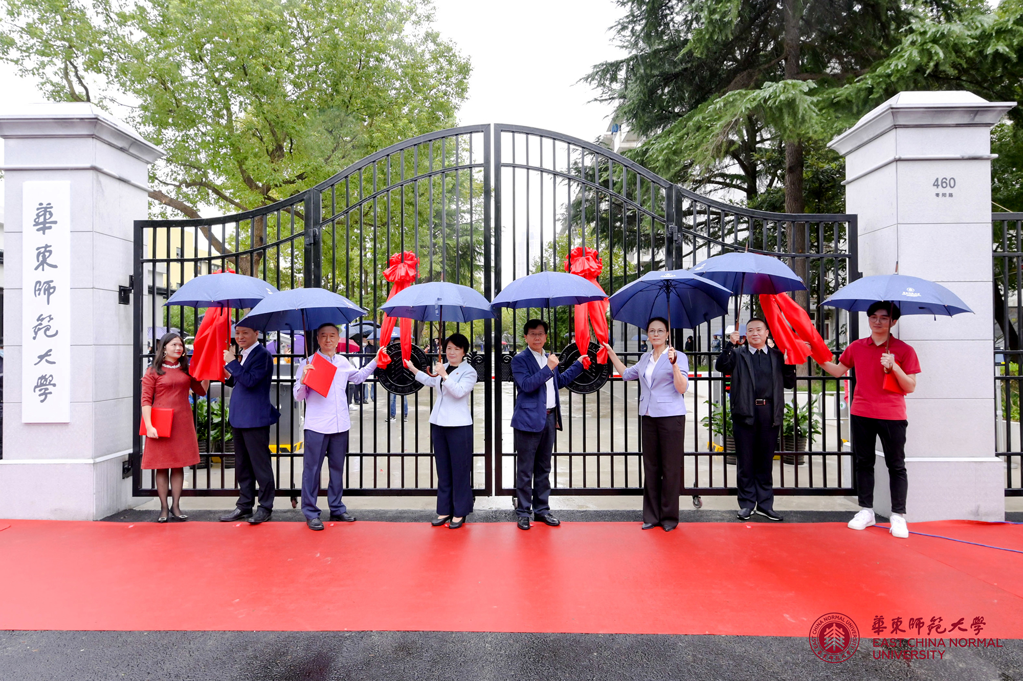 校党委书记梅兵、校长钱旭红、普陀区委副书记顾军、上海科技金融产业集聚区管委办主任吴超,和师生代表一起共同启动校门,打开了这道珍藏在无数师大人内心深处的精神世界之门。