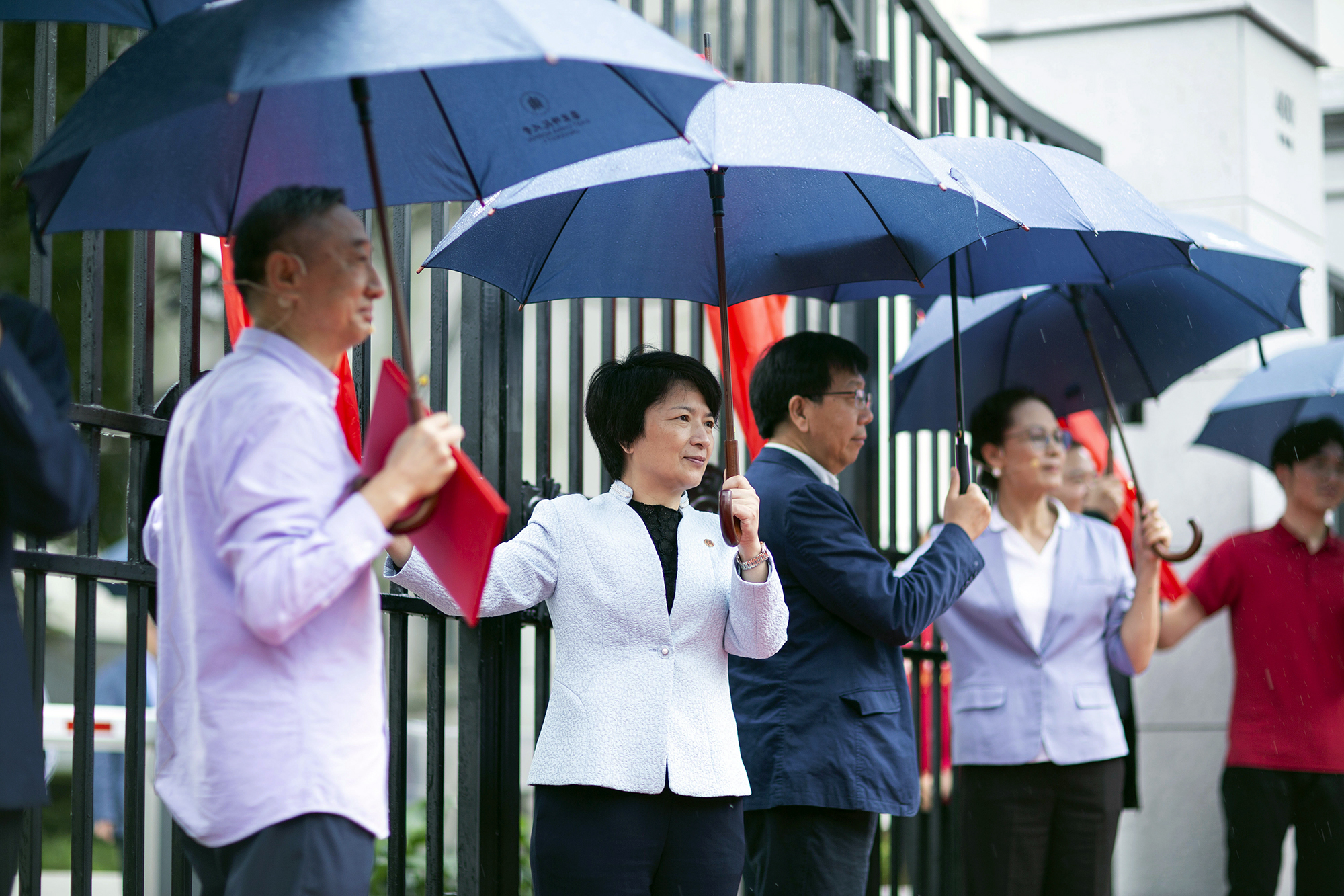 校党委书记梅兵、校长钱旭红、普陀区委副书记顾军、上海科技金融产业集聚区管委办主任吴超,和师生代表一起共同启动校门