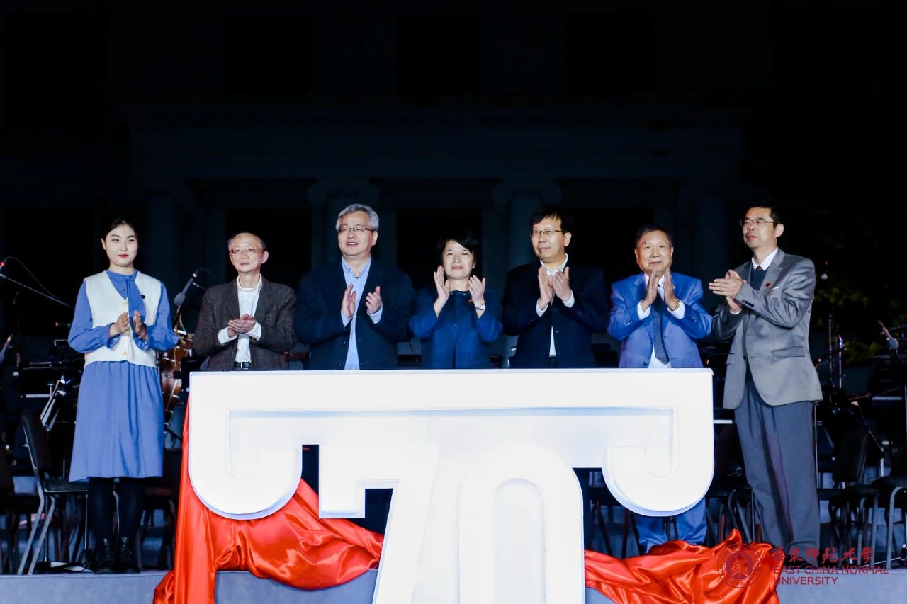 启动仪式上,华东师大党委书记梅兵,校长钱旭红,物理与电子科学学院教师管曙光,哲学系教师陈卫平,学生代表、经济与管理学部赵烁,校基金会理事、四季教育集团董事长田培庆校友,奥中友协华人委员会永远名誉会长、著名侨领鲁家贤先生7位嘉宾共同为华东师大70周年校庆标识揭幕。