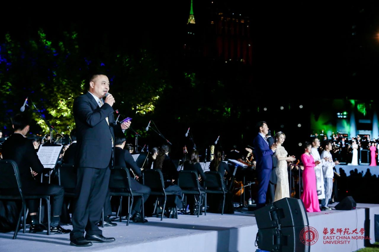 以校庆促凝聚、以校庆促发展、以校庆促育人。当晚,中山北路校区群贤堂前草坪上,百余名师生同台演绎,千余位观众露天共赏,奏响“建教育强国、以教育强国”的时代强音。