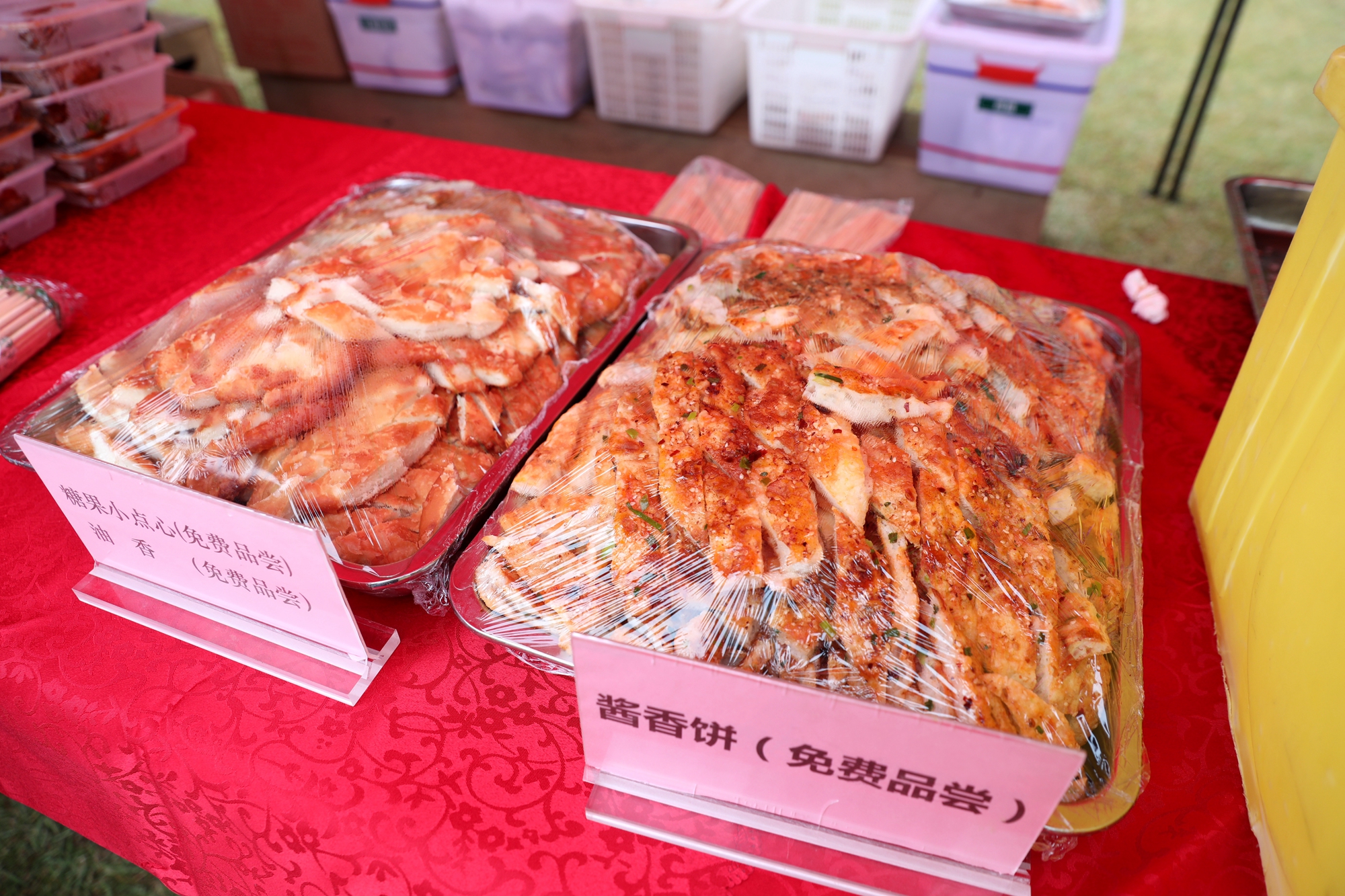 “人未到,食先备”,上午10点半,各部门已早早做好了准备,在工作台上摆好了琳琅满目的美食,有饱满料足的中式糕点、有色泽诱人的西式点心、有色香味俱佳的营养菜肴、有新鲜实惠的当季蔬果。师生们不仅可以吃到膳食服务中心(1)的比利时巧克力、虎皮卷、巧克力泡芙、苏北肉圆,还可以吃到膳食服务中心(2)的开胃小木耳、广式叉烧、榴莲酥;不仅可以品尝到秋林阁的蝴蝶酥、椒盐酥饼、酒酿糕、去骨凤爪,还可以品尝到中快餐饮的绿豆糕、拿破仑、肉松酥条、卤水鸭翅;不仅可以试试象郡餐饮的水果捞新品,还能试试清真食堂的椒麻鸡和肉夹馍。