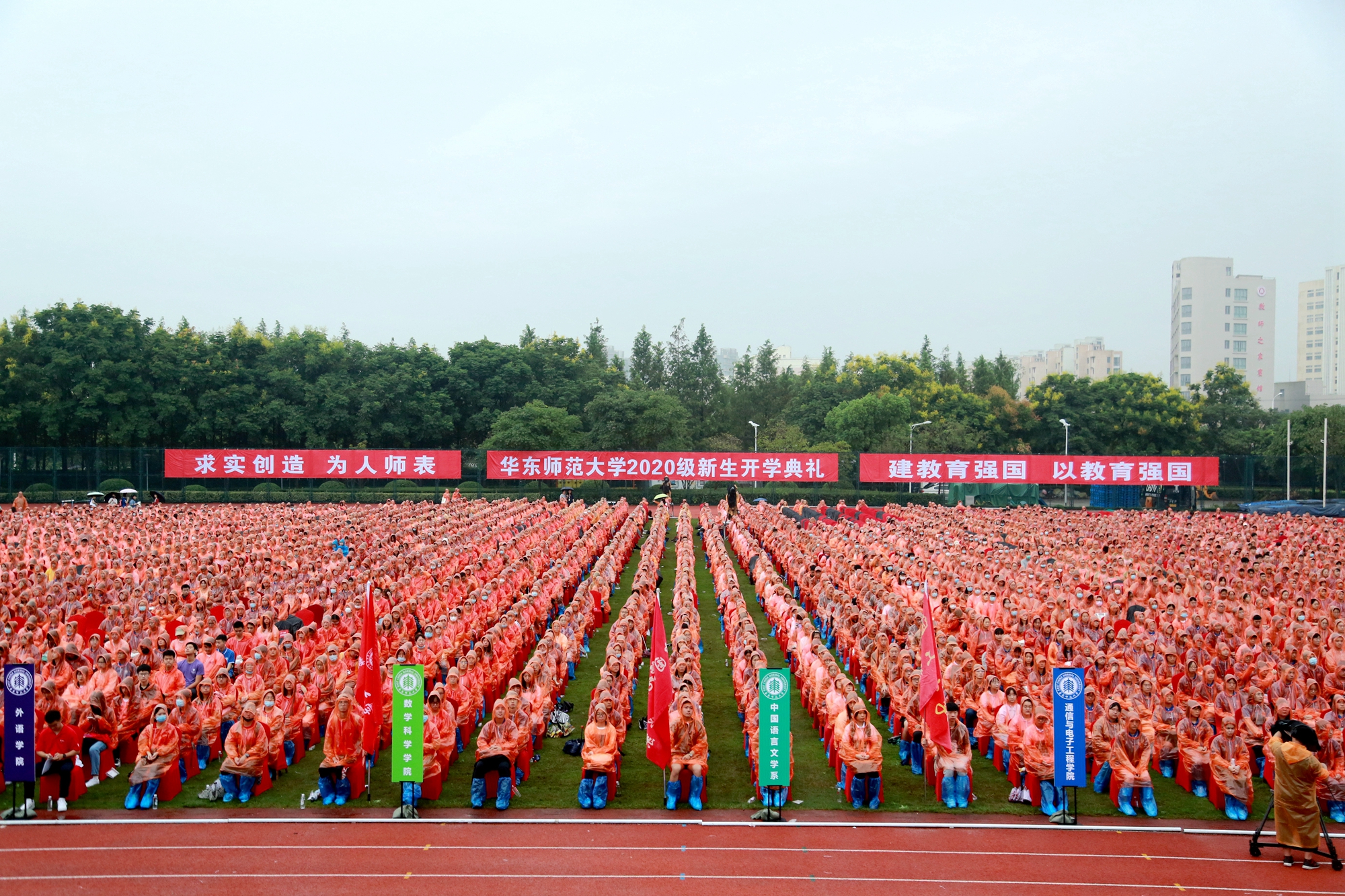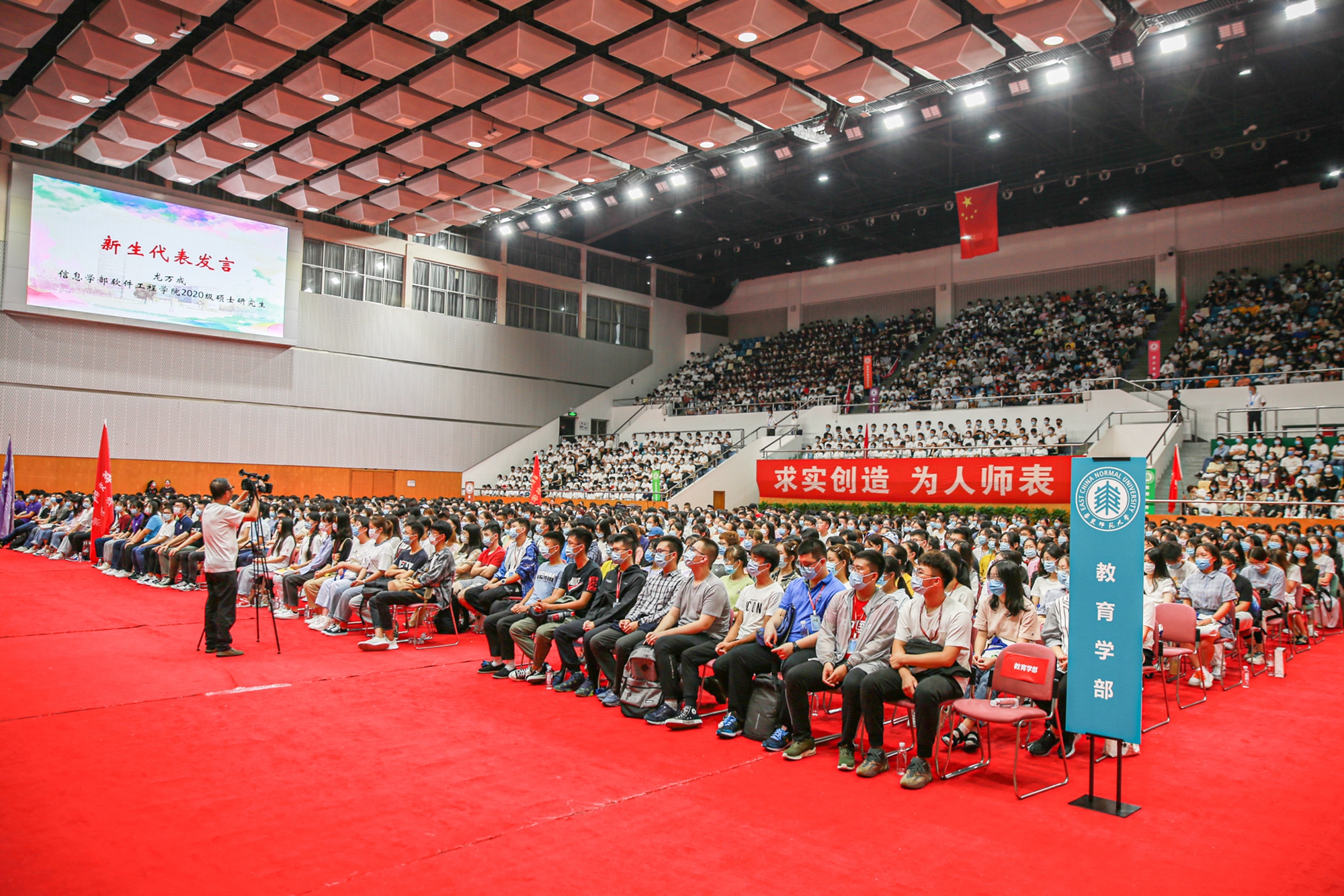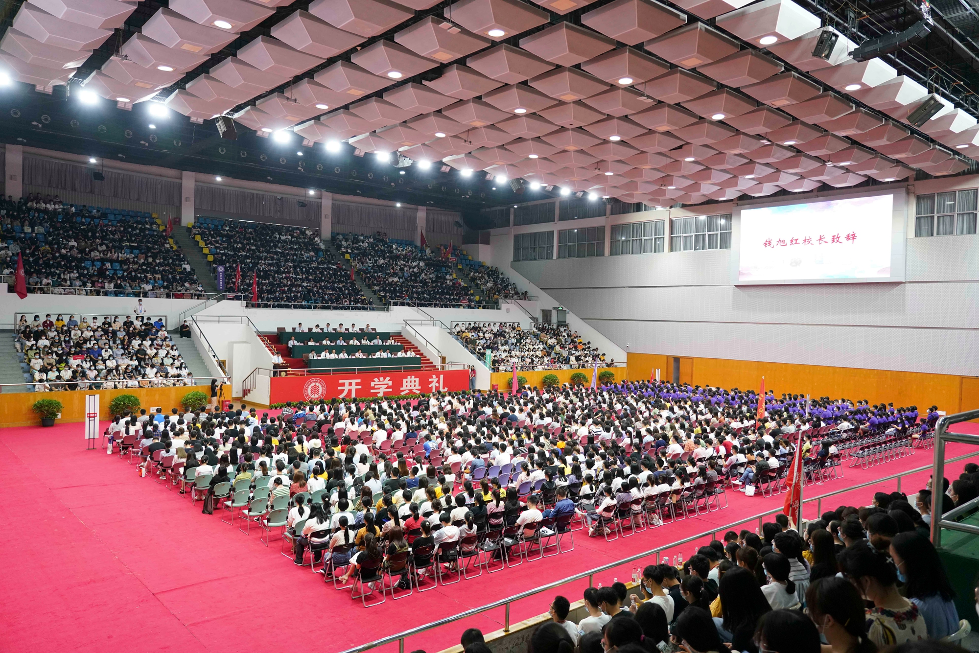 开学典礼分别在华东师大闵行校区东田径场、中山北路校区体育馆举行。10044名来自全国和世界各地的优秀学子,在此开启大学生活新征程。