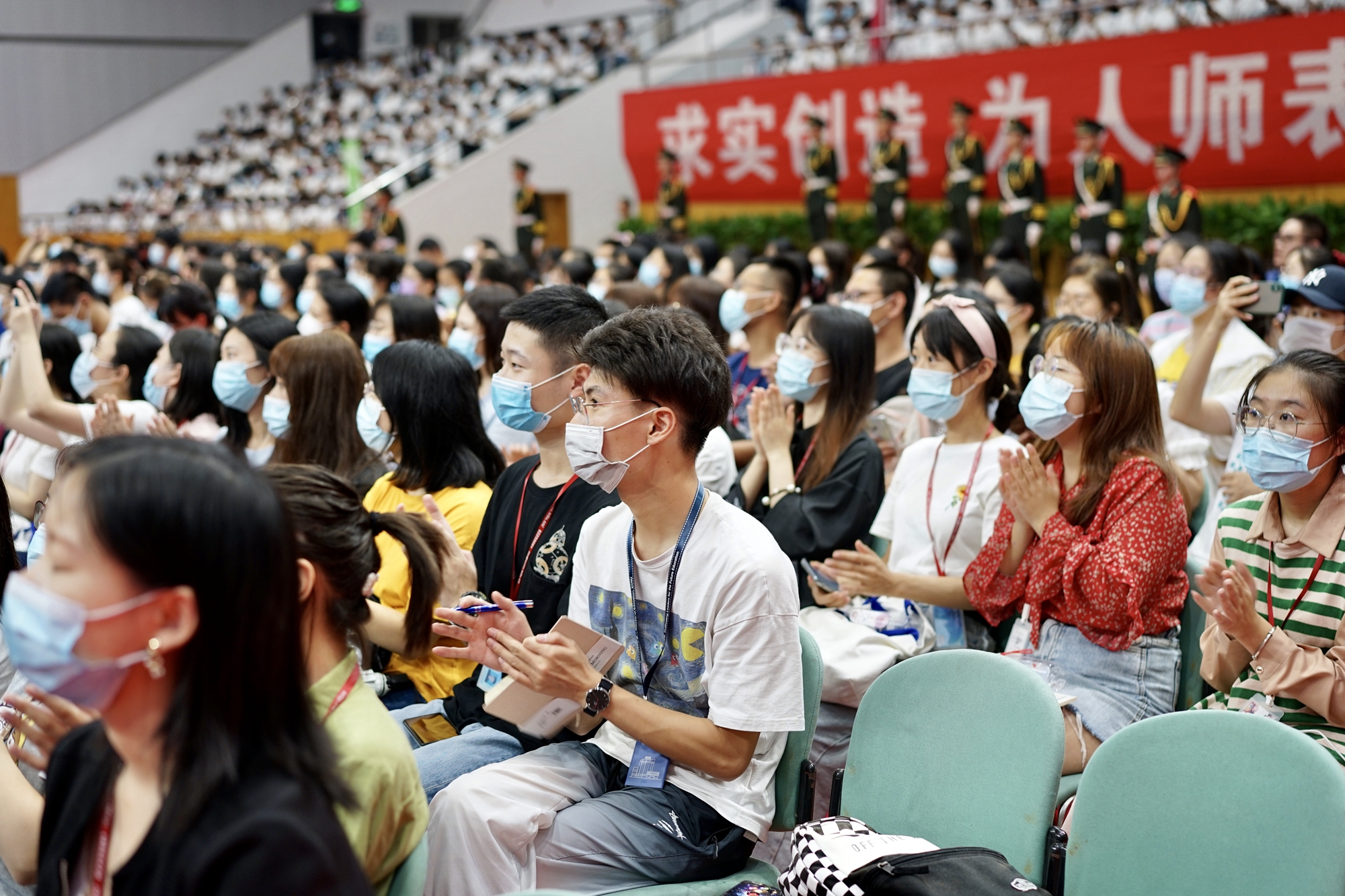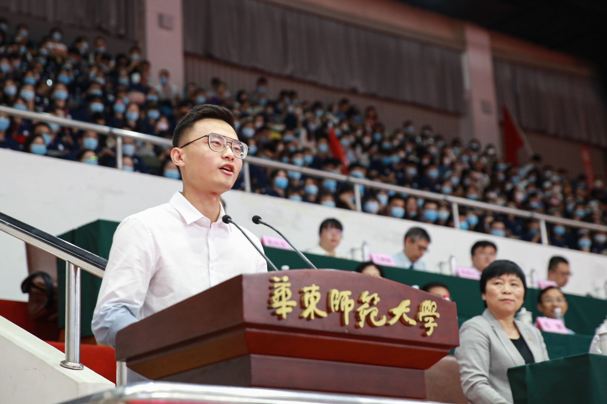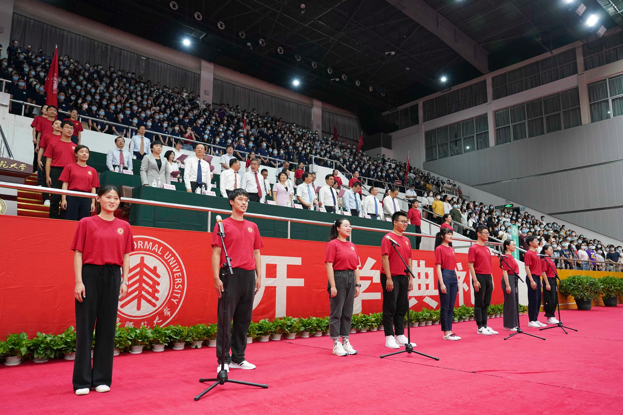 开学典礼分别在华东师大闵行校区东田径场、中山北路校区体育馆举行。10044名来自全国和世界各地的优秀学子,在此开启大学生活新征程。