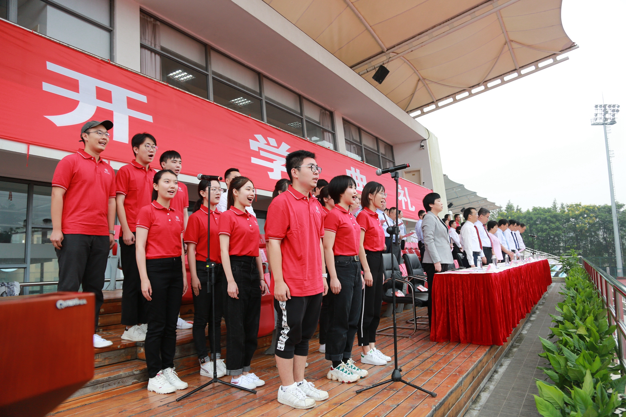 在庄严的国歌声中,2020级新生开学典礼正式开始。