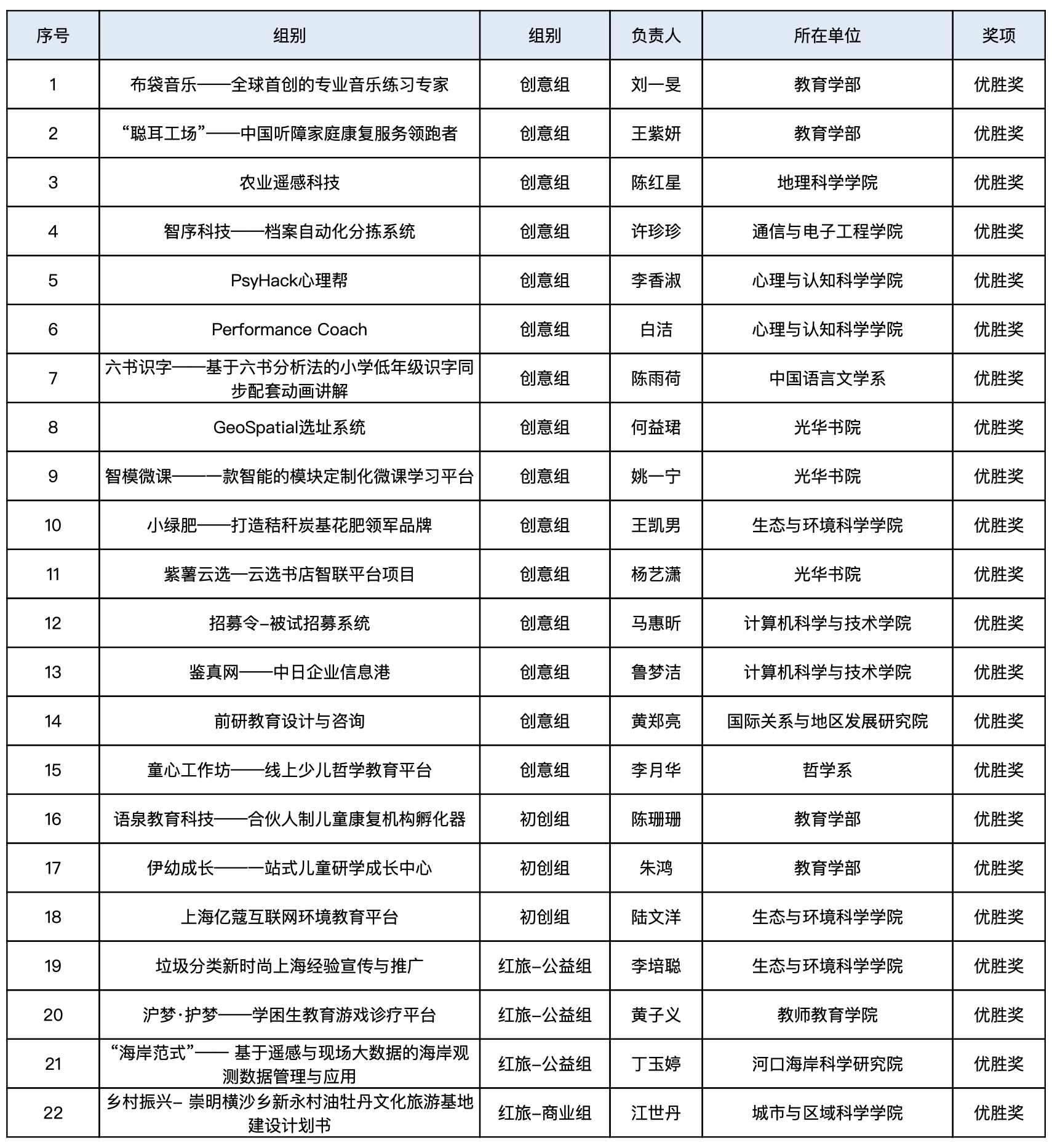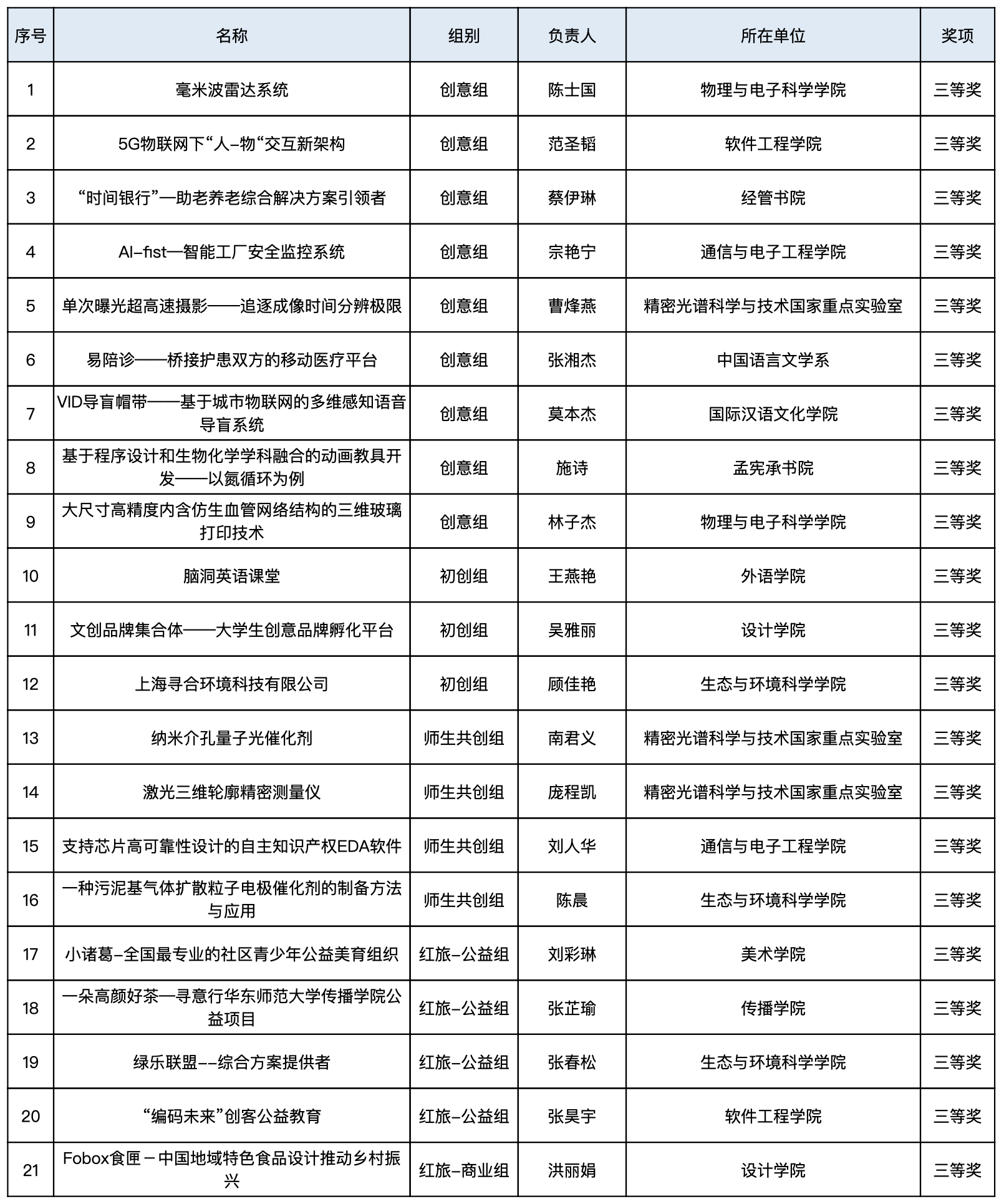 中国国际“互联网+”大学生创新创业大赛是我国深化创新创业教育改革的重要载体和平台,大赛已经成为我国覆盖面最大、影响最广的大学生创新创业盛会。华东师大在第五届“互联网+”大学生创新创业大赛中取得全国赛2金2银4铜及两项先进集体奖。本届大赛以“我敢闯、我会创”为主题,旨在深入推进大众创业万众创新,引领创新创业教育国际交流合作,加快培养创新创业人才,促进创新驱动创业、创业引领就业。