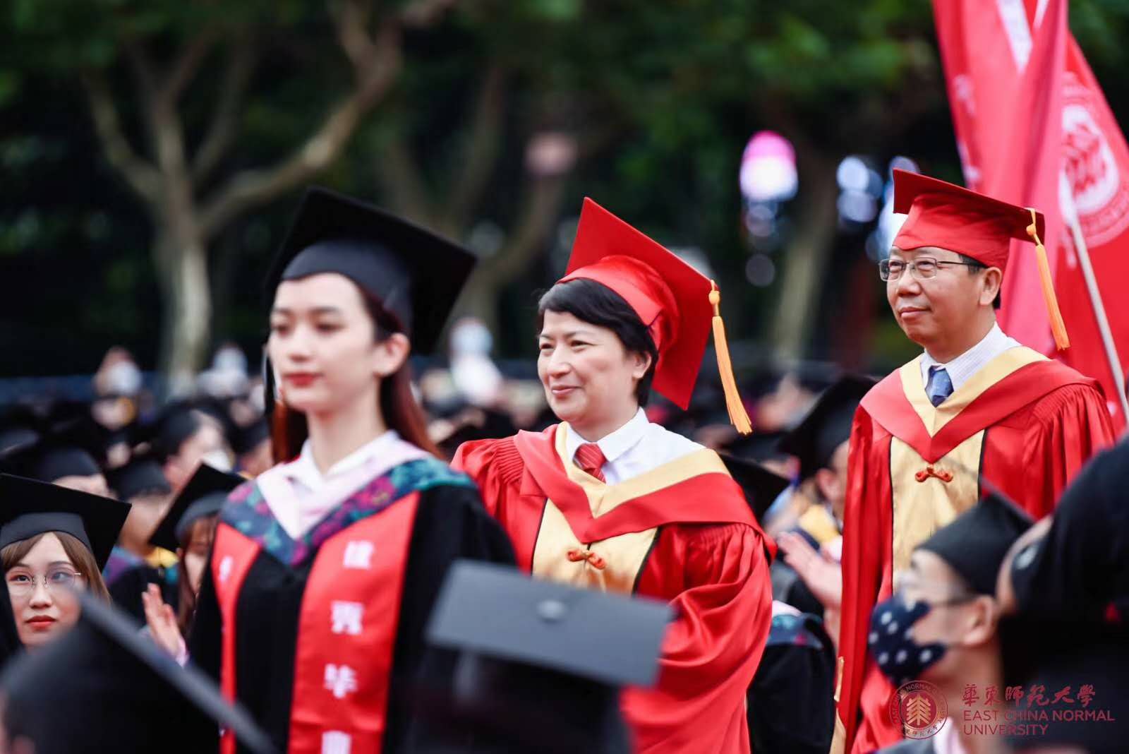 华东师大7000多名毕业生线上线下欢聚一堂。校领导梅兵、钱旭红、朱民、王宏舟、杨昌利、曹友谊、孙真荣、李志斌、周傲英、戴立益,校学术委员会和各专门委员会负责人,校长助理,学部、院系、书院等单位主要负责人,校友代表,教师代表,毕业班辅导员,相关职能部门负责人等出席典礼,一起见证了师大学子完成学业开启人生新征程的重要时刻。