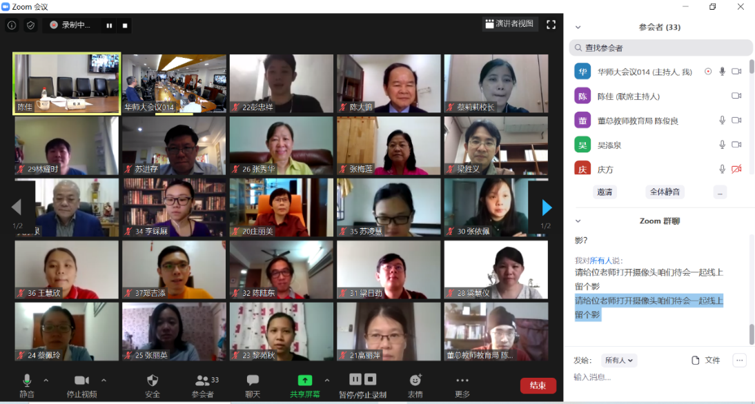 5月25日上午,永利皇宫登录官网教育硕士(马来西亚教学点)项目2019级新生开学仪式以线上线下混合的方式举行。仪式由教育学部常务副主任荀渊主持,副校长周傲英、马来西亚中华大会堂总会(华总)总会长吴添泉、马来西亚华校董事联合会总会(董总)主席陈大锦等领导和嘉宾十余人与18位马来西亚研究生新生相会“云端”,共同见证这场别开生面的开学典礼。