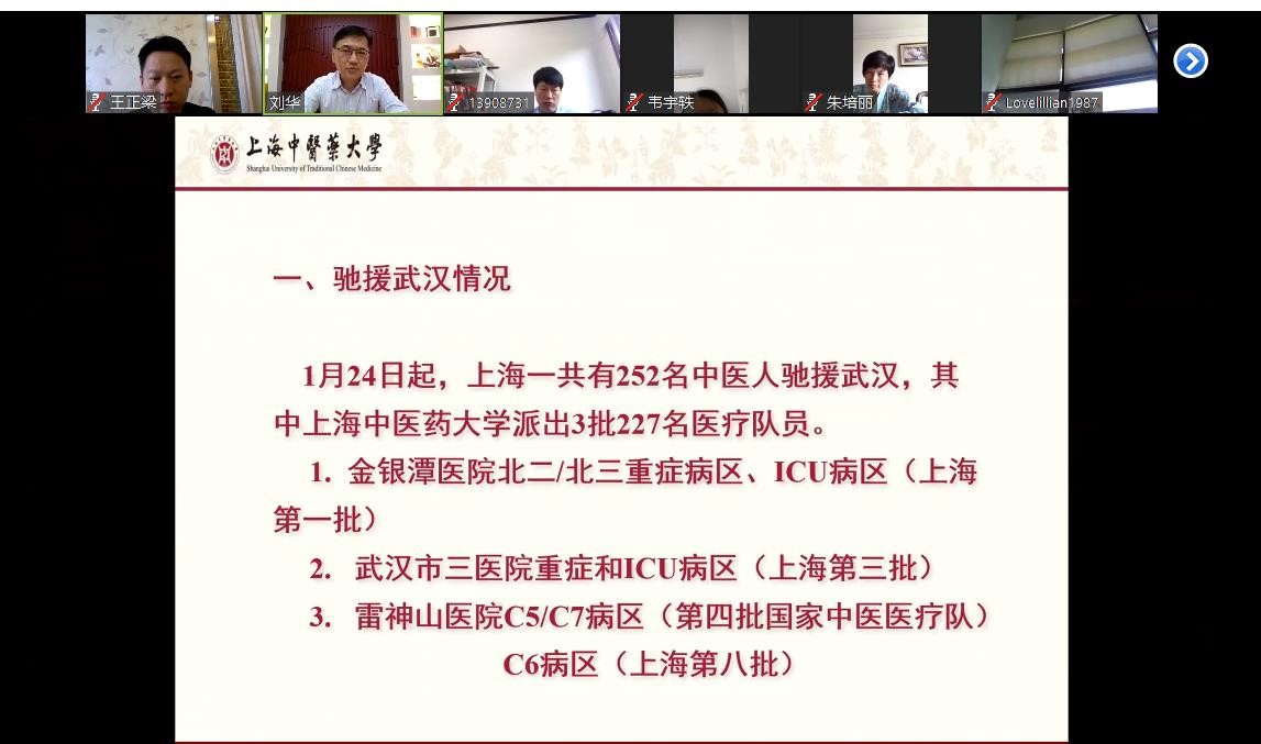 报告伊始,刘华介绍了上海医疗队驰援武汉的基本情况,上海在本次疫情医治中,通过“上海经验、一人一策、中医特色、精准施策”,为疫情医治提供“上海智慧”,发挥了重要作用。在报告中,刘华通过大量亲自拍摄的照片和详细叙述,生动呈现了上海医疗队在武汉“战疫”过程中的点点滴滴。他指出,在新冠肺炎疫情发生后,以习近平同志为核心的党中央迅速将疫情防控工作上升为党和国家的头等大事和最重要的工作,全面彰显了中国特色社会主义制度坚持党的集中统一领导的政治优势,充分体现了中国特色社会主义制度承载的人民至上的价值优势,最终形成了全国一盘棋的合力优势,为中国“战疫”取得阶段性的胜利提供重要保障。