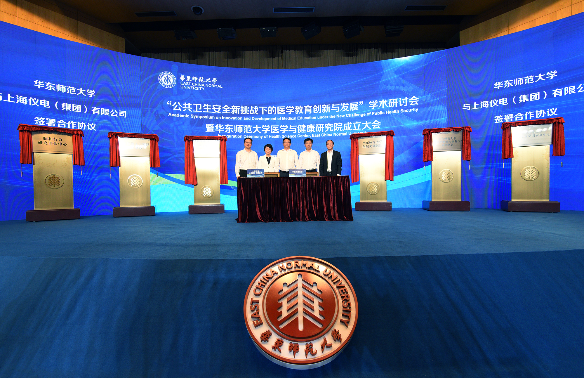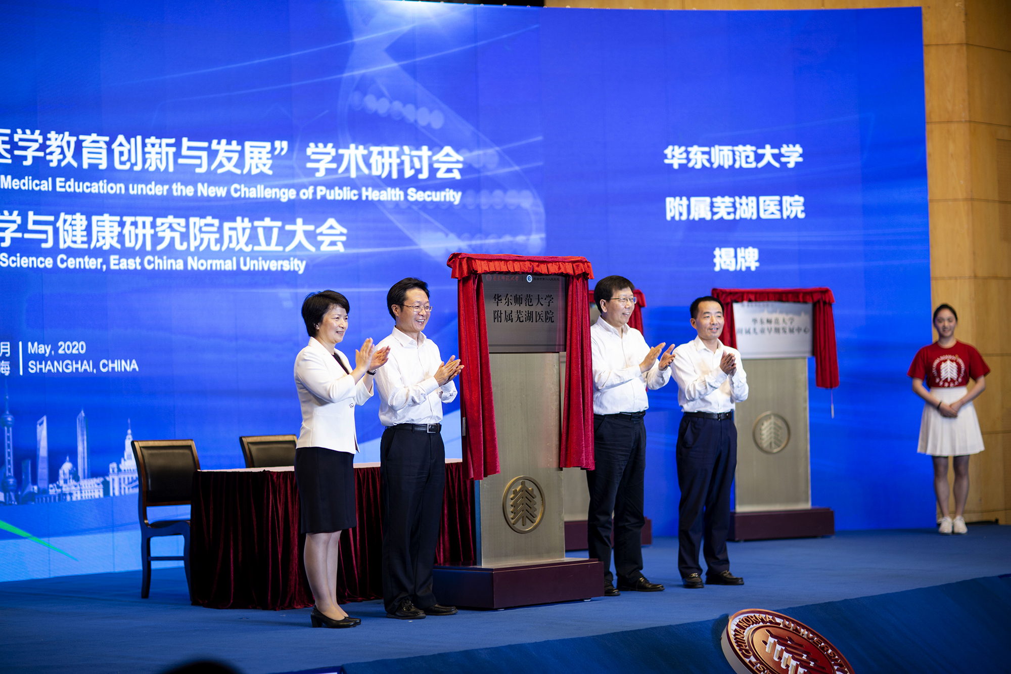 上海市人民政府副市长宗明、上海市人民政府副秘书长顾洪辉、中共上海市卫健委党组书记黄红、上海市教委副主任毛丽娟,永利皇宫登录官网党委书记梅兵、校长钱旭红、医学与健康研究院名誉院长管又飞现场为永利皇宫登录官网医学与健康研究院揭幕。永利皇宫登录官网党委常务副书记王宏舟主持研究院成立大会揭幕仪式。永利皇宫登录官网副校长孙真荣、李志斌以及各单位代表出席仪式。成立大会通过互联网向全球直播。
