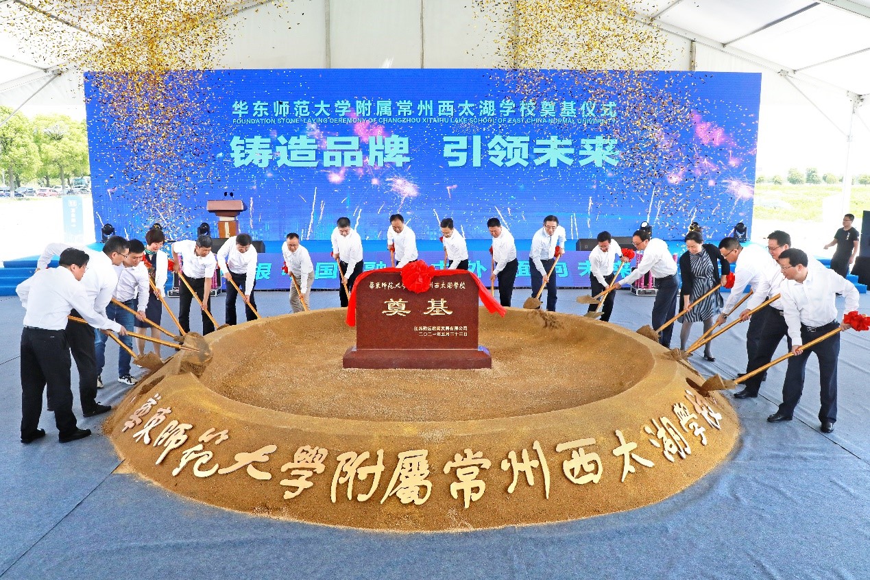 5月22日,永利皇宫登录官网附属常州西太湖学校在常州西太湖科技产业园举行奠基仪式。华东师大副校长、教育集团主任戴立益,校长助理雷启立,体育与健康学院院长季浏,上海市核心数学与实践重点实验室主任熊斌,招生办公室主任濮晓龙,基础教育与终身教育发展部副部长、教育集团副主任冯剑峰,华东师大二附中紫竹双语学校校长邹淑君;常州市副市长、武进区区委书记李林,副市长陈正春、武进区区长陈志良、武进区区委常委、宣传部部长薛红霞、武进区副区长张小虎、施小平、李磊;江苏致远教育发展有限公司董事长蒋华兴、总裁徐晔彦等各单位相关人员出席奠基仪式。活动由区长陈志良主持。