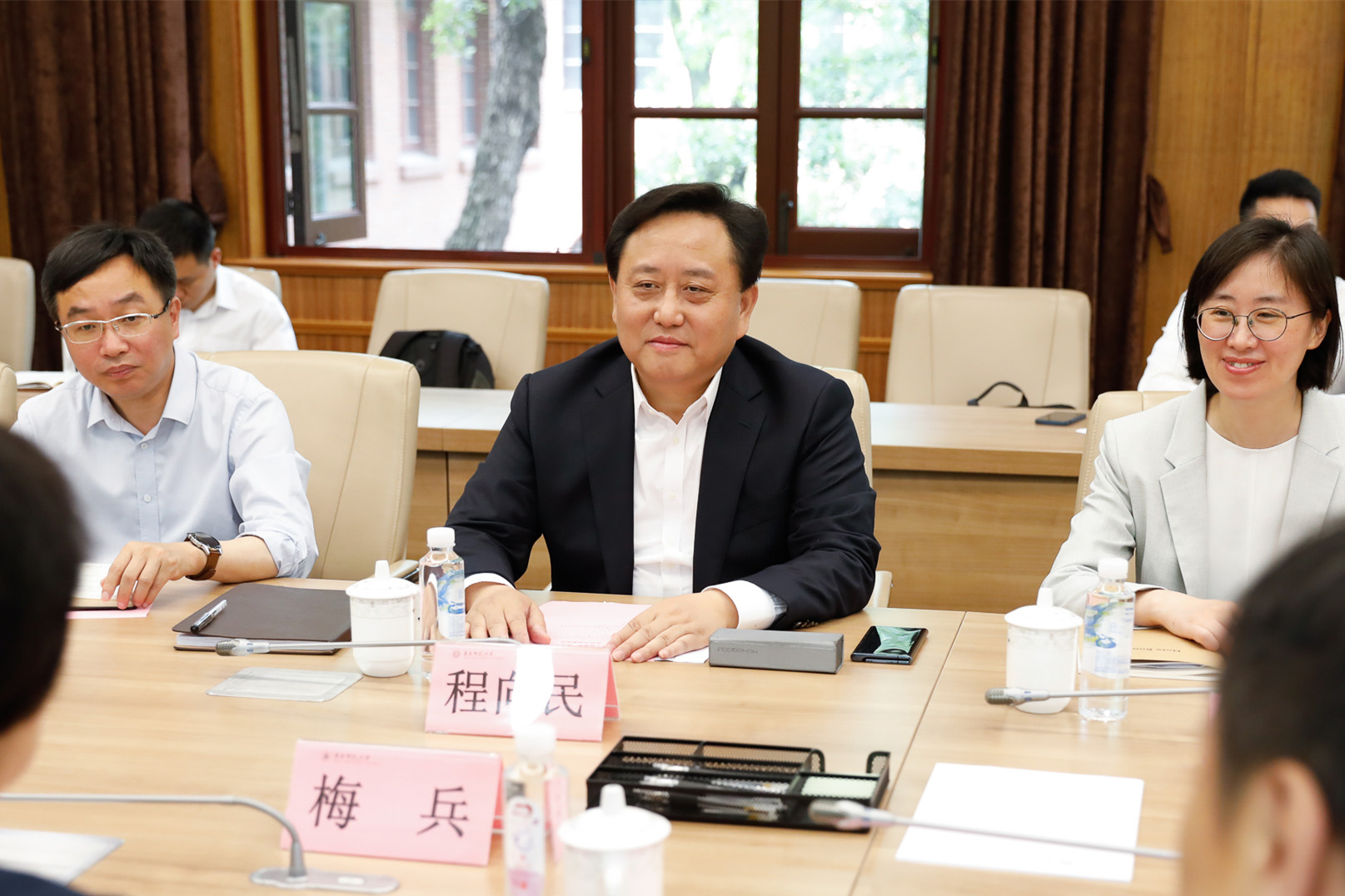 5月27日上午,松江区人民政府-永利皇宫登录官网举行区校合作交流座谈会。华东师大党委书记梅兵会见了来访的松江区委书记程向民一行。座谈会由副校长戴立益主持。松江区副区长顾洁燕,华东师大二附中校长李志聪等出席会议。