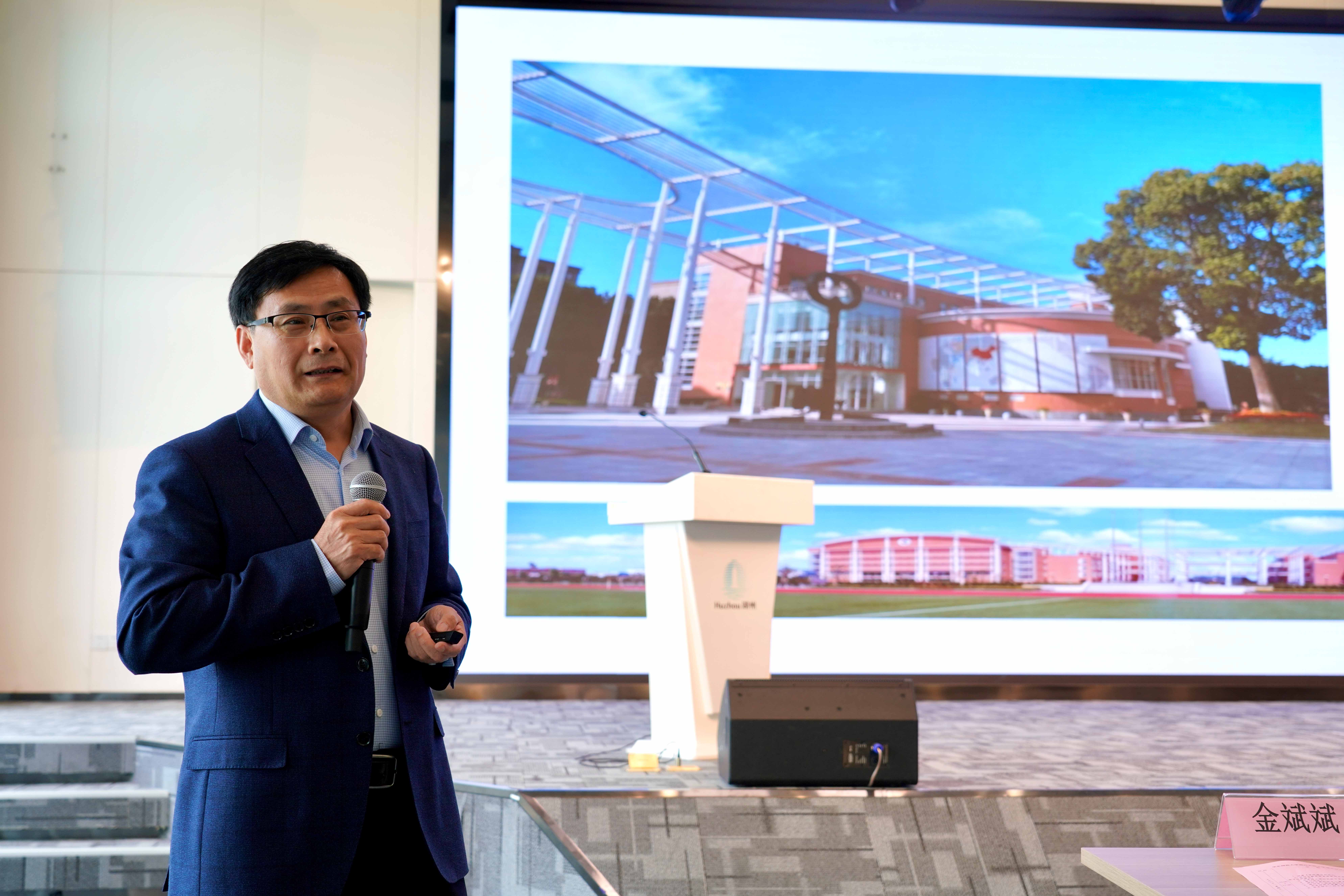 戴立益代表华东师大向参与学校筹建的全体建设者、对关心和支持学校发展的各界人士表示衷心的感谢。他表示,教育在整个经济社会发展中处于基础性、全局性、先导性的作用,发展更加公平、更高质量的教育是教育从业者的责任和担当,要承担起培根铸魂、启智润心的责任。华东师大是一所具有浓厚爱国情怀的国际化大学、是以教育研究和教师教育作为优势特色的研究型大学、以崇尚身心健美的综合性大学、竭诚服务于区域经济社会发展的教育部直属大学。华师湖州作为大学的附属学校、集团成员校,有华东师大和教育集团的资源支持,有华东师大在不同条件、不同模式、不同类别的办学实践经验和成果的有力支撑。在湖州市委市政府、市教育局、南太湖新区、城市集团、市教科研中心等各部门的鼎立支持下,有信心把湖州实验中学打造一所立德树人为先、坚持德智体美劳全面、全面发展学生综合素质的名校;打造一所优美校园环境、优质教学体系、优秀文化内涵的名校;打造一所兼具海派和湖韵风范的、引领基础教育发展改革的名校。