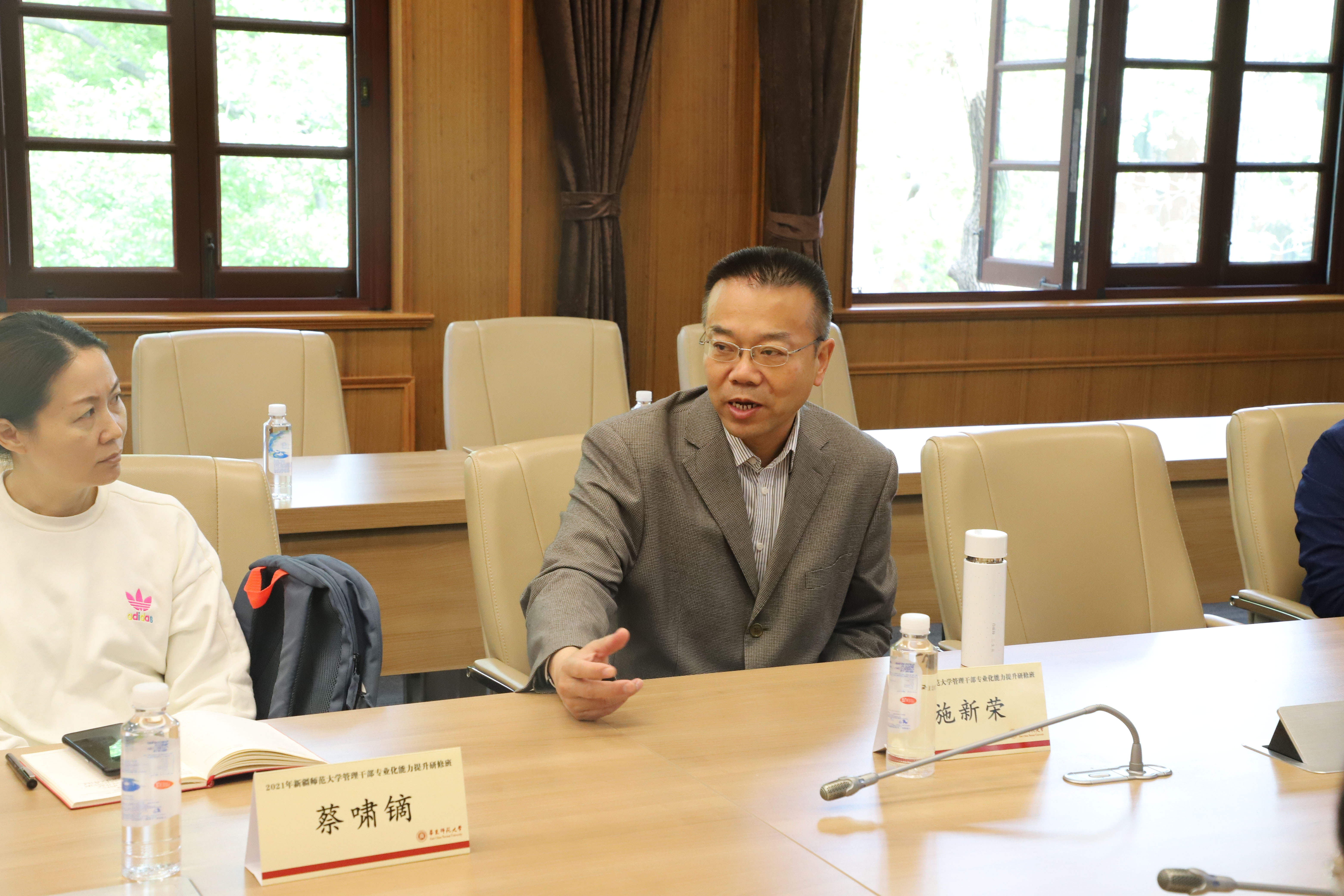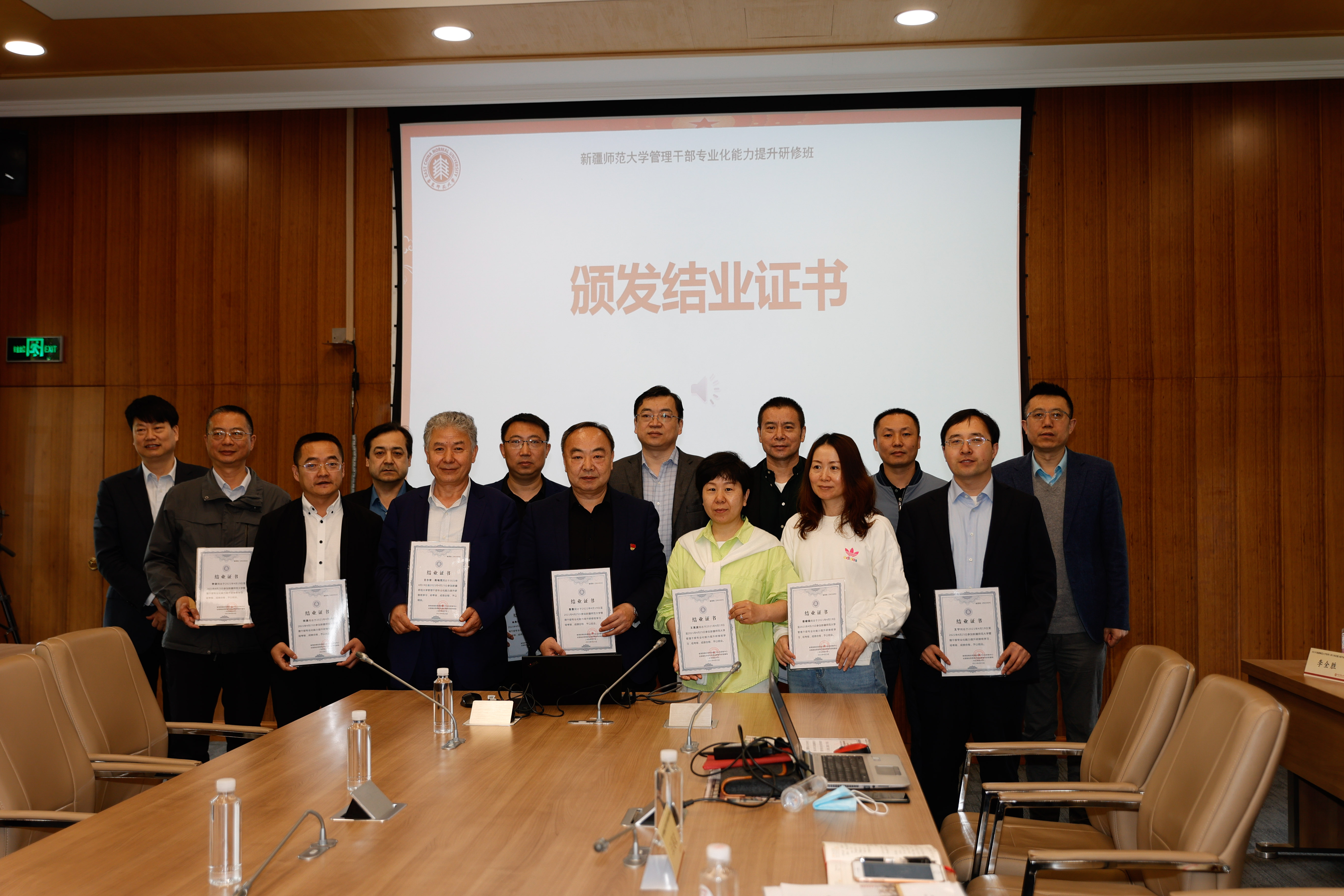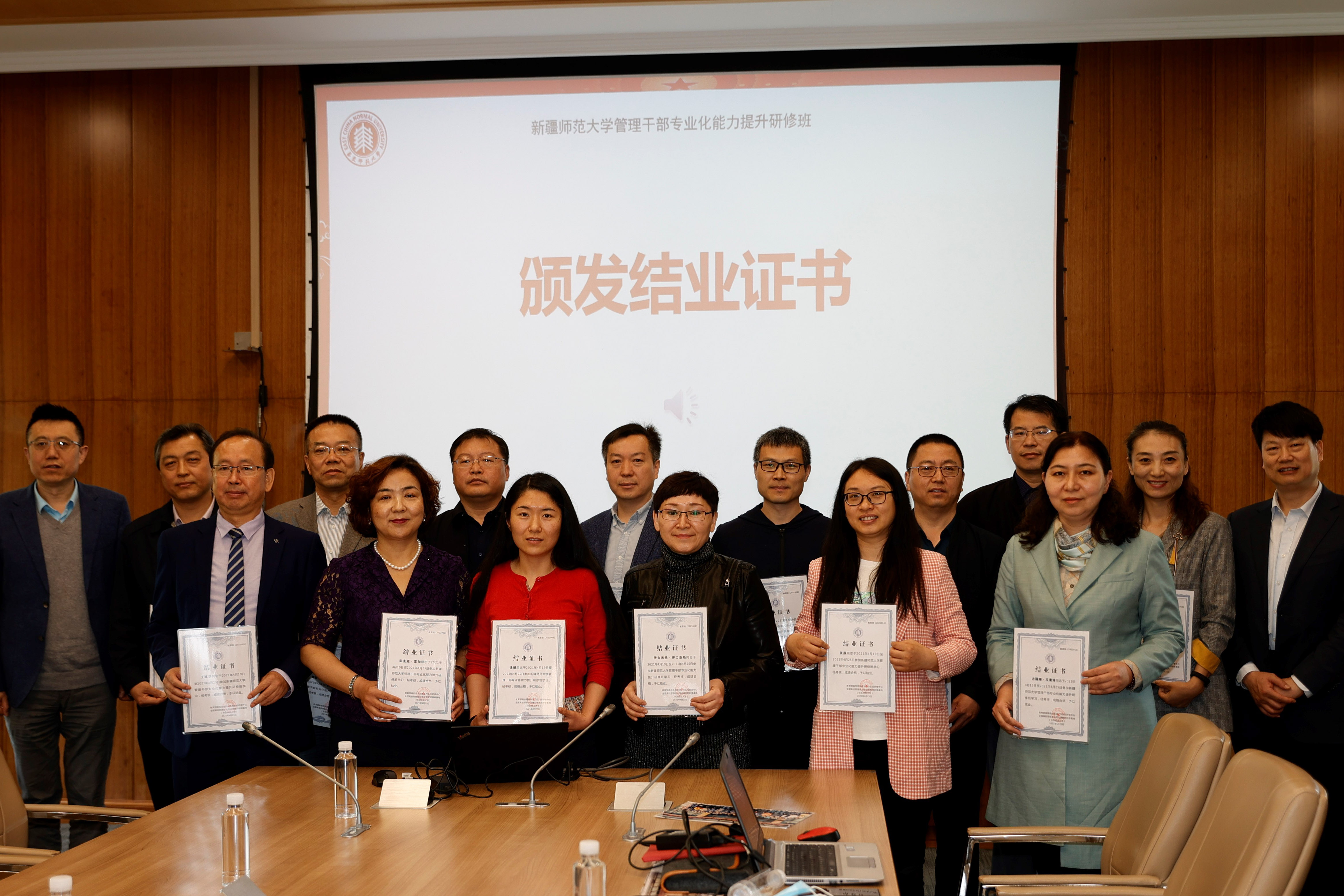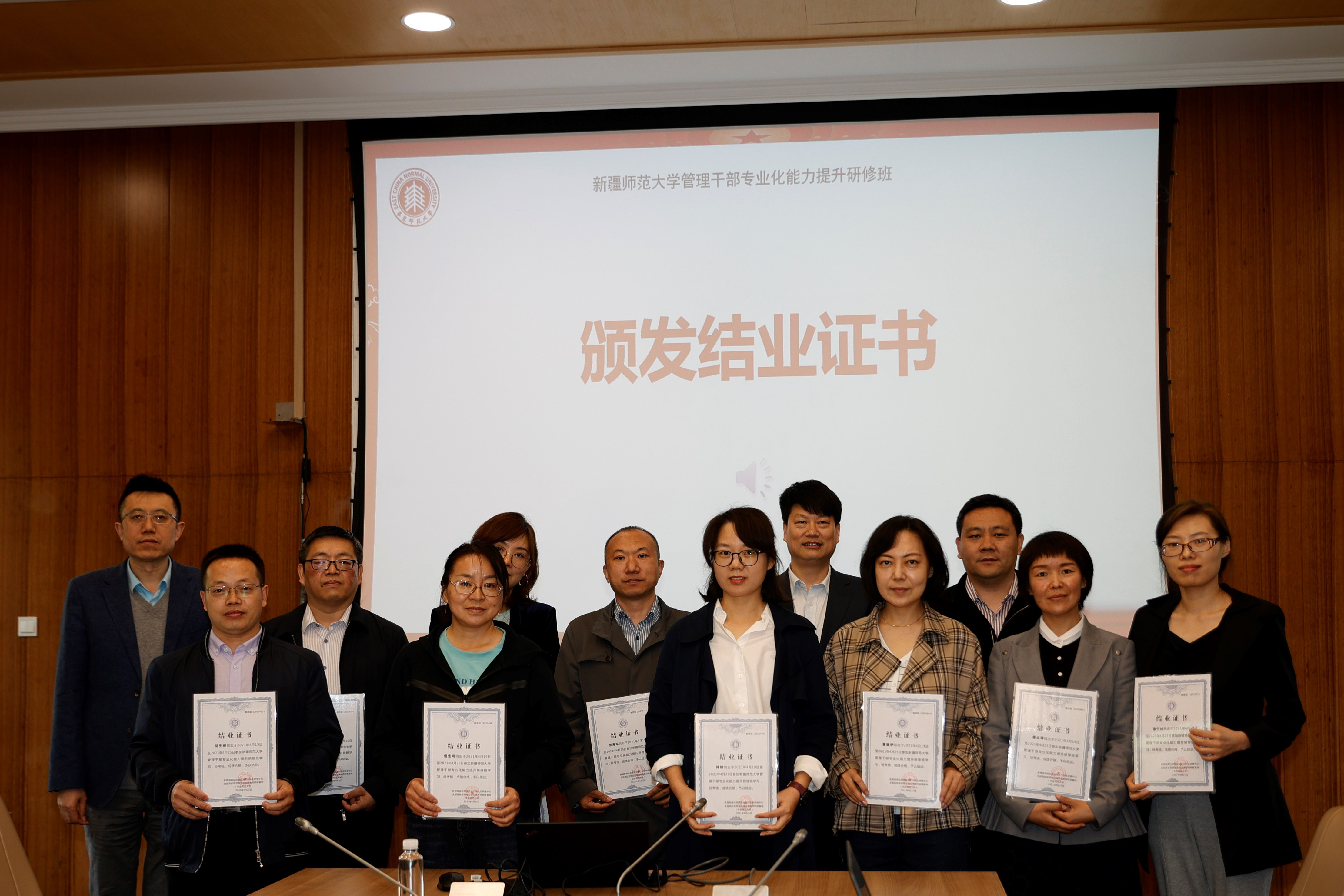新疆师范大学管理干部专业化能力提升研修班是为了进一步贯彻国家对口帮扶支援政策,巩固对口支援工作成果,继续深化校际交流合作,落实《永利皇宫登录官网新疆师范大学对口支援补充协议》相关精神的重要举措,由教育部高校思想政治工作队伍培训研修中心(永利皇宫登录官网)于2021年4月19日至25日举办,新疆师范大学共37名处级干部参加研修,研修班通过“专题报告、现场教学、案例教学、经验分享、主题研讨”等教学环节实施课程计划,邀请了我校城市与区域科学学院副院长孔翔教授、数据科学与工程学院院长钱卫宁教授、经济与管理学部副主任殷德生教授、人文与社会科学研究院副院长吴文钰、科技处成果与知识产权管理办公室主任匡磊、教务处副处长丁旵明、研究生院副院长杨福义、研究生院学位管理办公室主任李海生等作专题报告,以提升管理干部政治素养和履职能力,为新疆师范大学实现“一流师范”办学目标提供政治保障和队伍支撑。