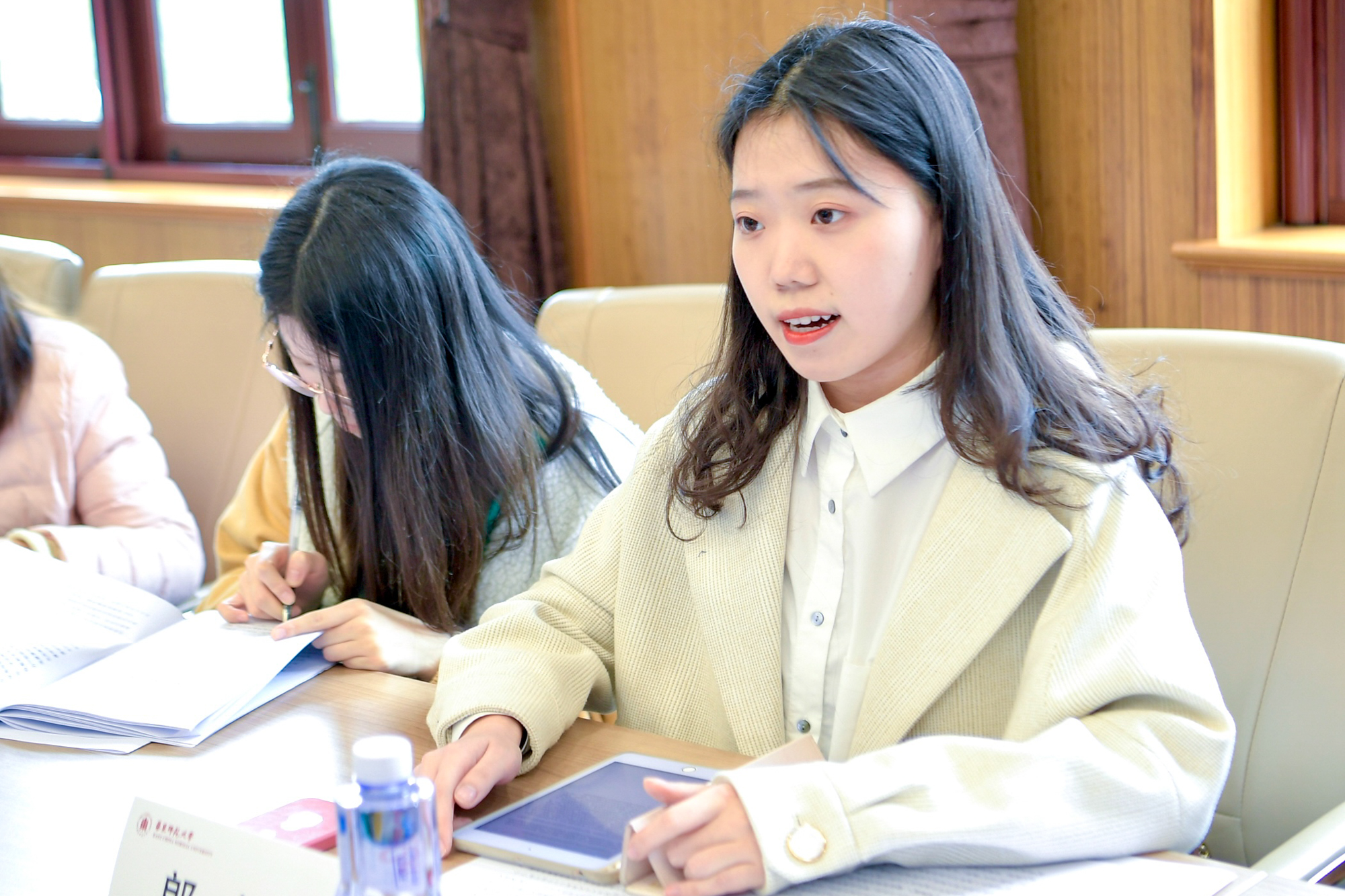 各位学生代表围绕《永利皇宫登录官网“十四五”规划和二〇三五年远景目标纲要》(征求意见稿)进行了热烈的讨论。教育学部本科生邵兴仁建议落实落细导师育人,更好发挥本科生导师的育人作用;生命科学学院博士研究生赵帅提出,要关心、关注学生身心健康,创设更友好的运动校园环境;经管学部硕士研究生彭武光、经管书院本科生吕律、化学与分子工程学院硕士研究生李云涛等围绕加强选调生工作、引导毕业生赴基层就业、对接国家重大战略需求、加强生涯规划指导等主题提出了相关建议;心理与认知科学学院本科生张彤、数学科学学院(孟宪承书院)本科生贺润坤、教育学部本科生伊里哈木·阿里木等从优化本科生课程设置、夯实以思维为导向的通识教育、以研究为导向的教师教育等方面谈了看法;计算机科学与技术学院硕士研究生钱栋炜建议学校增设学生研讨空间;教育学部硕士研究生穆奕蓓、本科生郎朗结合自身学生社团工作经历,从文化育人、文明校园方面提出培育社团品牌活动、丰富卓越育人内涵的建议;国际汉语文化学院本科生(留学生)沙少坤从适度提升国际学生招生比例、促进中外学生交流、加强校园文化建设从而推进世界一流大学建设等方面提出了意见。