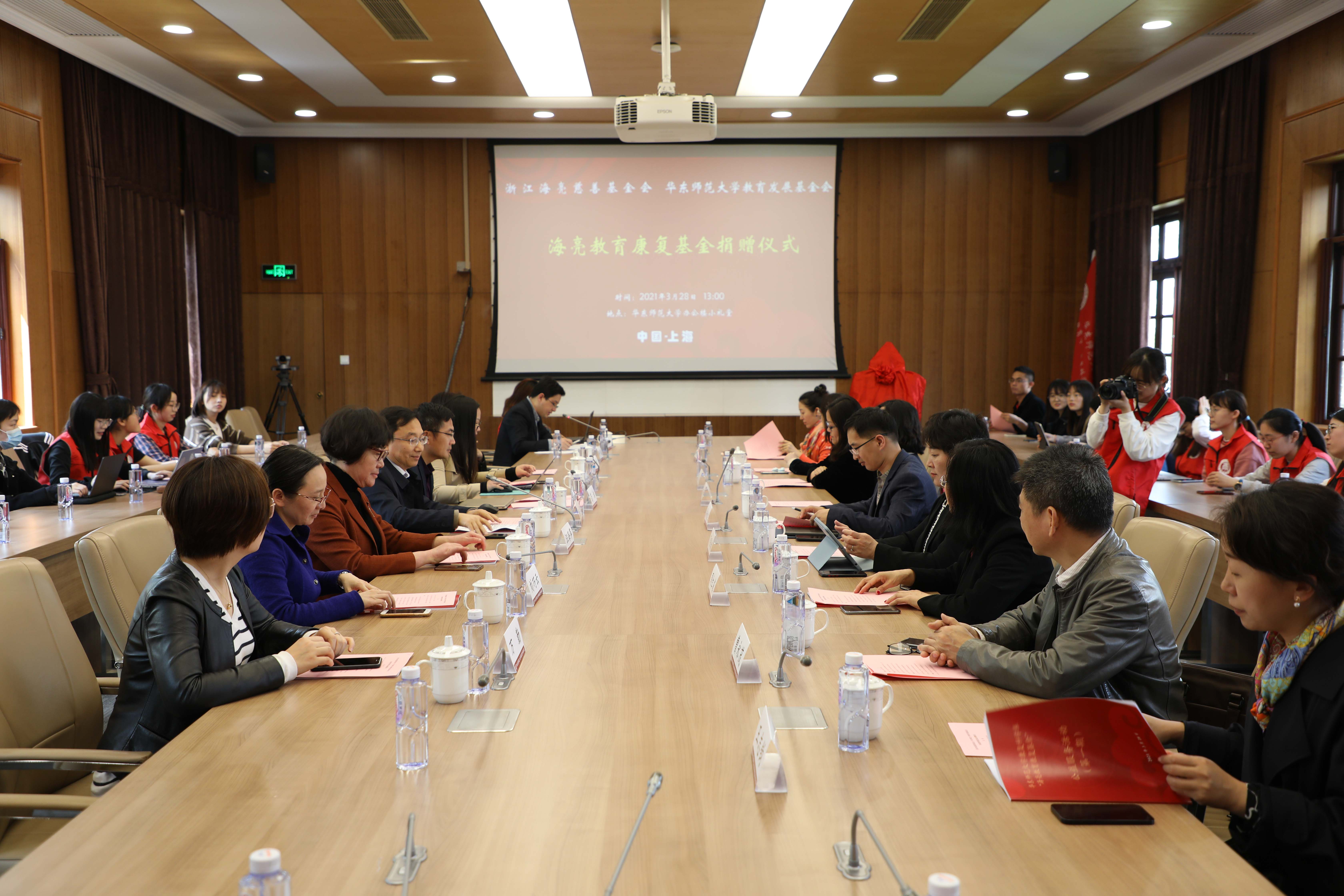 28日,海亮教育康复基金捐赠暨永利皇宫登录官网实践教学基地授牌仪式在永利皇宫登录官网中北校区隆重举行。海亮集团纪委书记、浙江海亮慈善基金会副秘书长潘金生,海亮教育管理集团教育工会主席、融爱星总经理肖照娥,融爱星康复副总经理方杨红,融爱星专家委员会教学督学、融爱星康复(上海长风中心)校长周红省,融爱星教育管理中心副总监宋阳;永利皇宫登录官网校长助理、教育发展基金会秘书长斯阳,教育学部常务副主任荀渊,教育学部教授汪海萍,教务处经雨珠、音乐学院音乐教育专业负责人李茉;康复科学系刘巧云、万勤、程辰、卢海丹、赵航等教师;《听力与言语病理学杂志》编辑部主任、武汉大学人民医院耳鼻咽喉-头颈外科主任医师曹永茂、复旦大学附属儿科医院儿保科主任医师丁艳华、朵云轩少儿美育研究与实践基地总督导王志均等专家出席活动。活动由学校教育发展基金会副秘书长章晶晶主持。