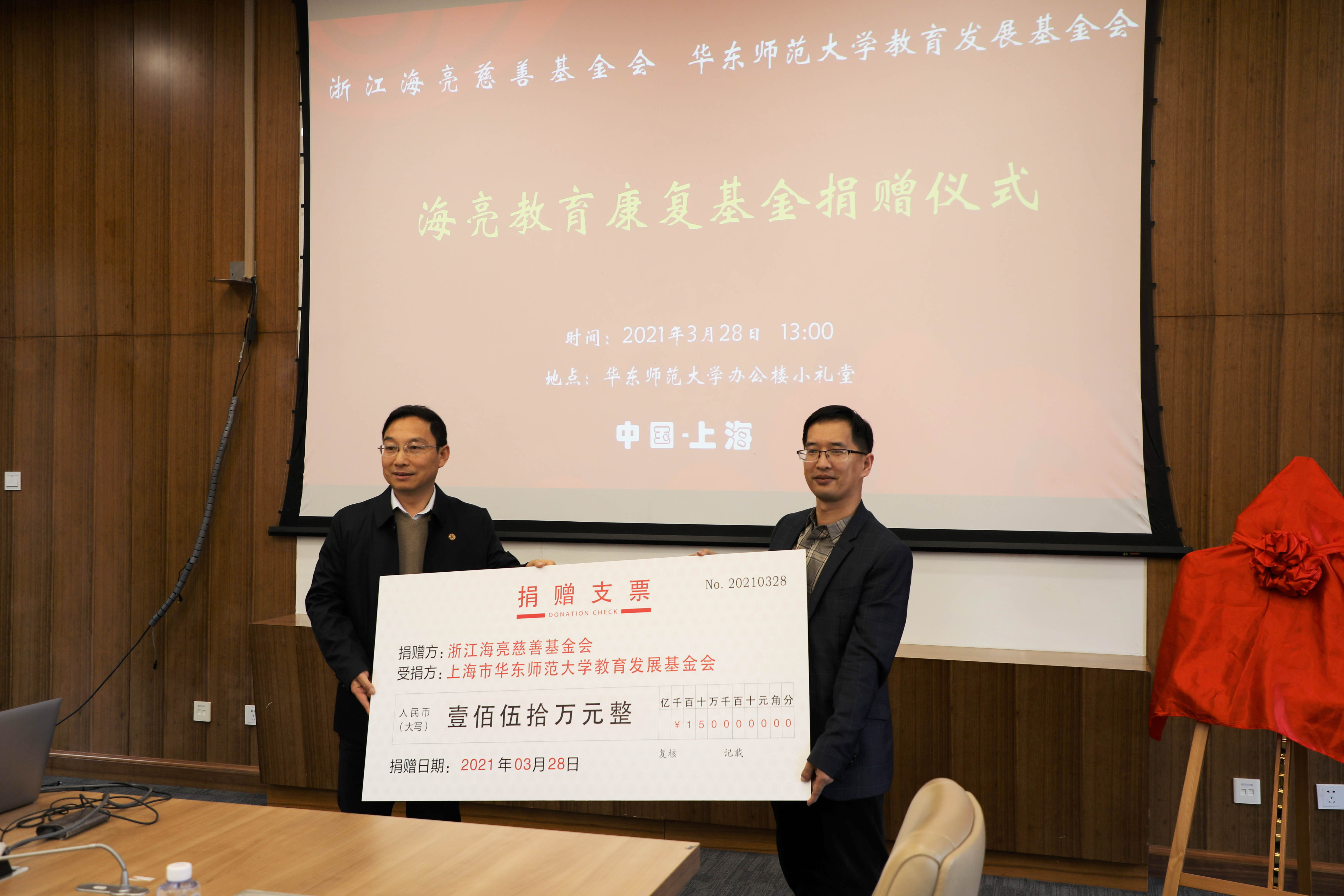 海亮集团纪委书记、浙江海亮慈善基金会副秘书长潘金生代表浙江海亮慈善基金会向永利皇宫登录官网教育发展基金会捐赠150万元,设立海亮教育康复基金;永利皇宫登录官网授予海亮融爱星“永利皇宫登录官网实践教学基地”。