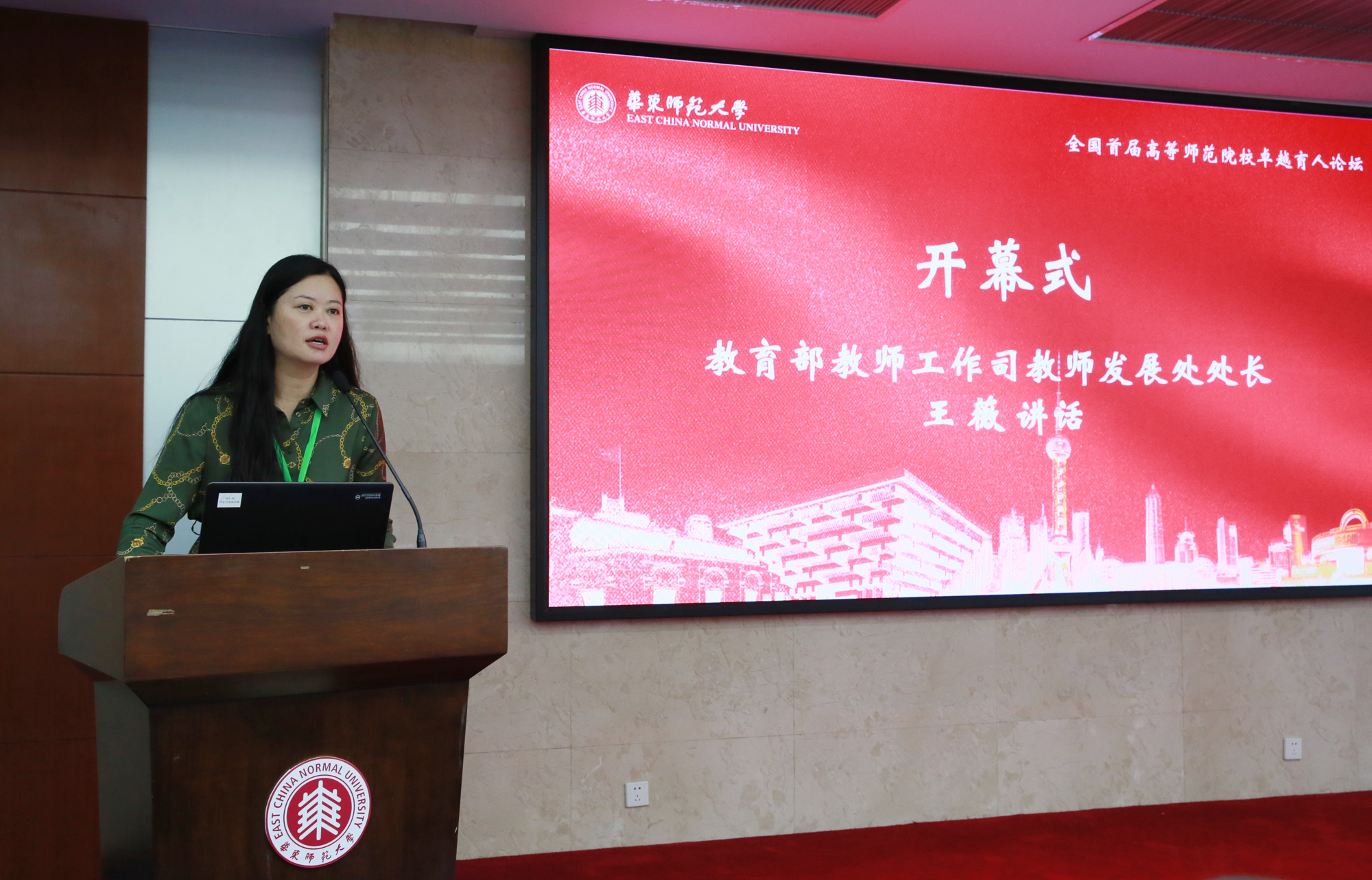 “师范教育是教育事业的母机。”教育部教师工作司教师发展处处长王薇强调:“希望各高校在落实习近平总书记的重要讲话指示精神中明确育人方向,在落实国家重大战略中构建育人格局,在落实立德树人任务中创新育人机制,在落实初心使命中强化育人特色,培养一批又一批为实现中华民族伟大复兴中国梦的筑梦人、大先生。”