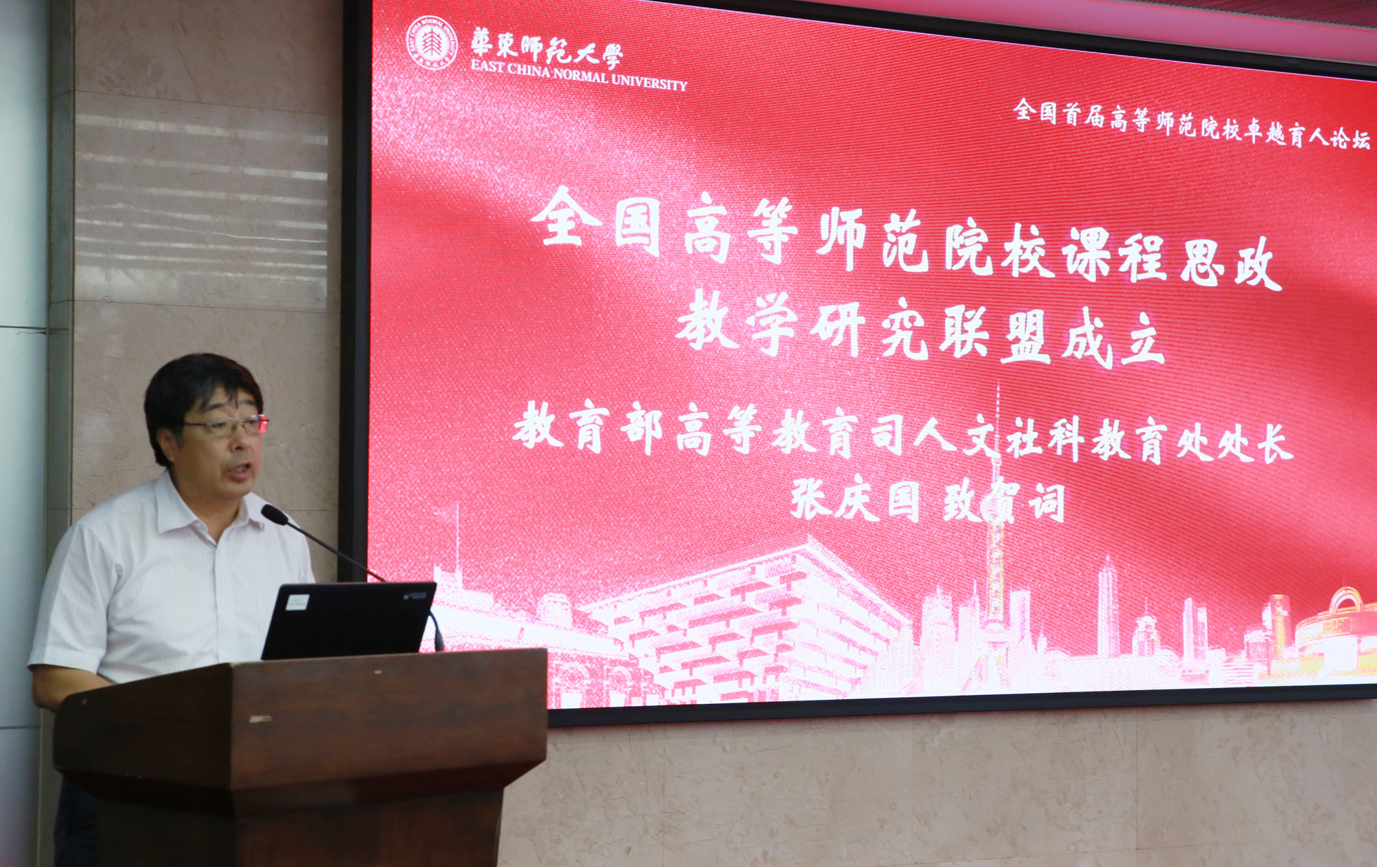 教育部高等教育司人文社科教育处处长张庆国对联盟的成立表示祝贺。他指出:“希望联盟突破创新、深化合作、内涵发展,为全国高校探索出一套符合思政教育规律、契合青年学生特点、融合师范院校特色的‘课程思政’建设模式,同时也为基础教育学科德育提供可复制、可借鉴‘样板’。”