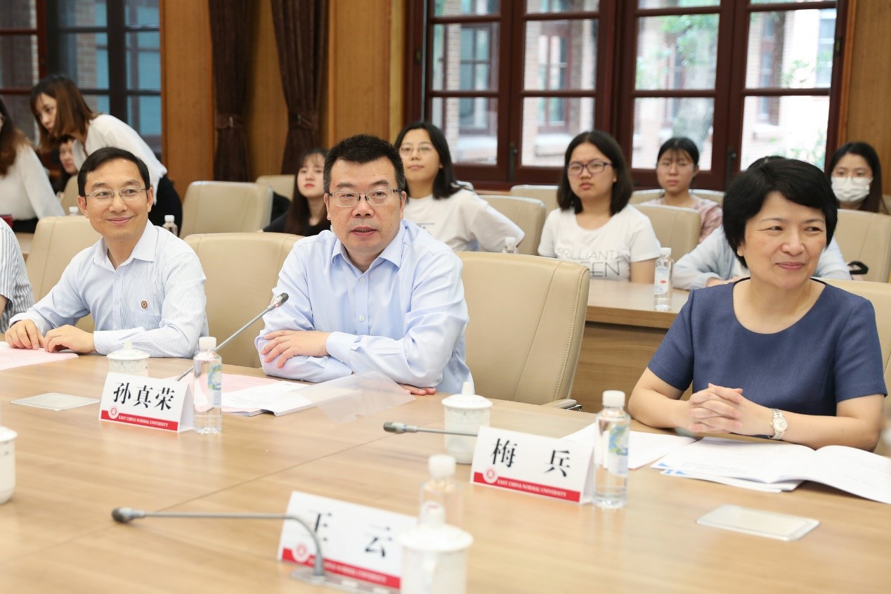 党委学生(研究生)工作部部长余佳介绍“王云基金·助飞卓越项目”,他提出,上海明泉企业(集团)在华东师大捐赠“王云慈善基金”已历时15年,累计捐赠达1120万元,惠及3600多名学生,获奖学生成立了学生公益社团“云友会”,通过“行走家乡”回馈意识培养、“卓越成才”综合素养训练、“华师逐梦 胜友如云”创新创业帮扶,提升本领、传播公益慈善义举。从今年起,王云基金将资助额度提高到每年百万元,开启王云慈善基金与华东师大的下个十年之约,支持更多“云友会”的同学扎根基层,成长成为具有社会责任心、公益心的新时代卓越人才。