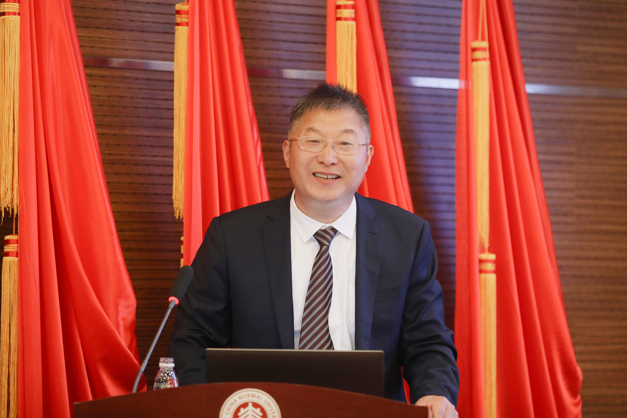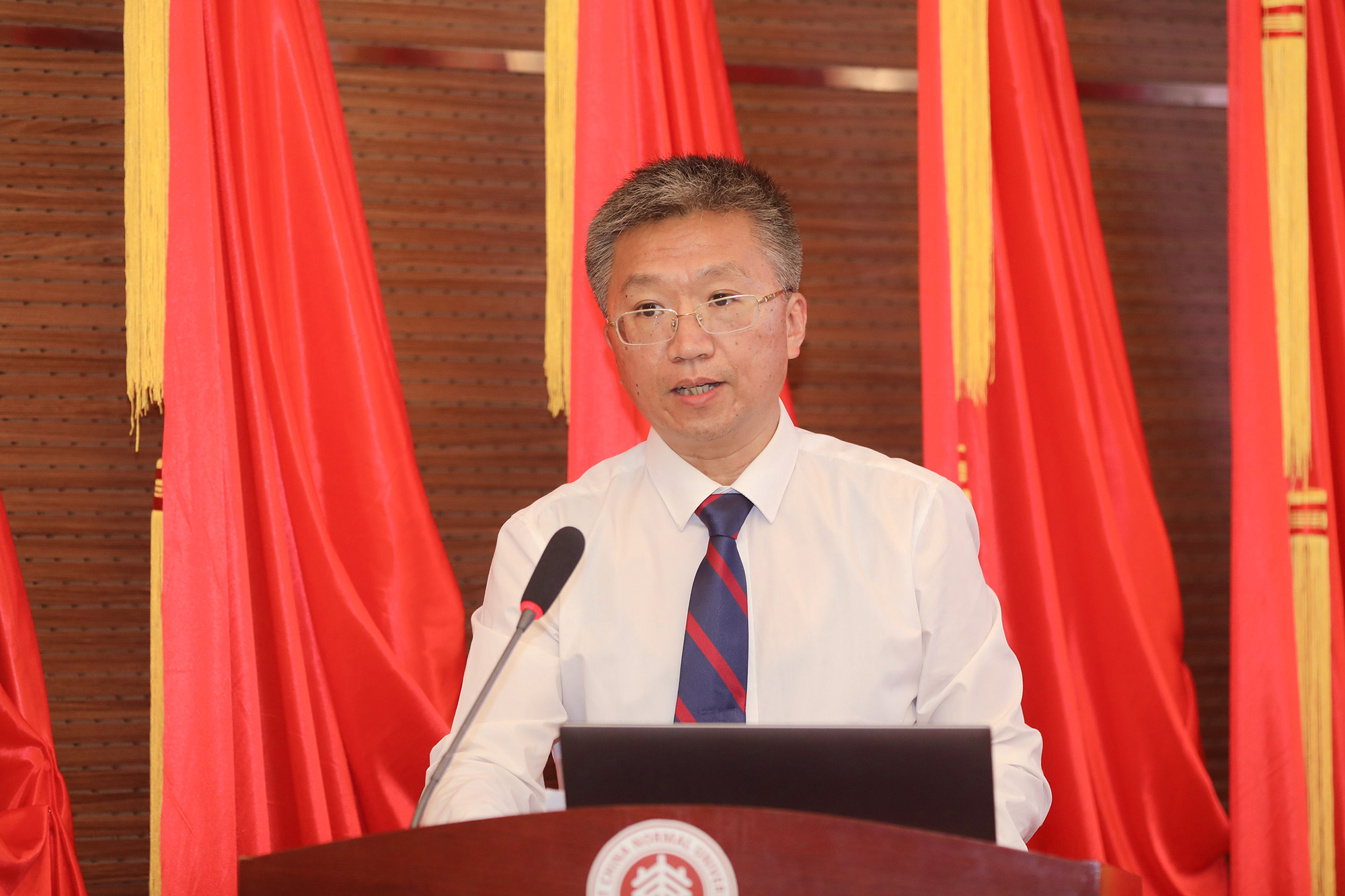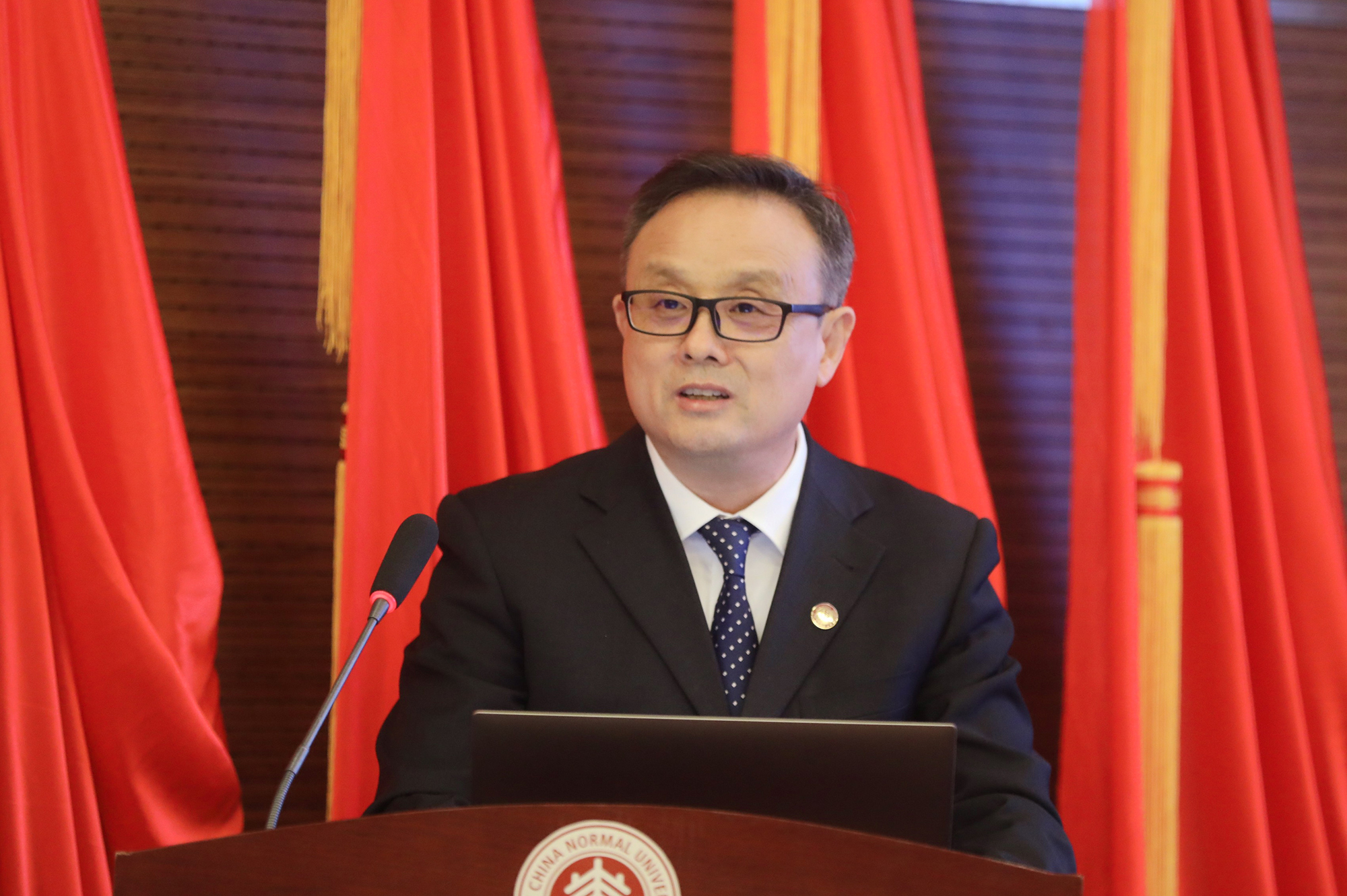 段纯刚代表新一届委员会发言,他表示新一届委员会将继续发挥师大民盟的特色优势,把华东师大民盟的工作推向新的高度。