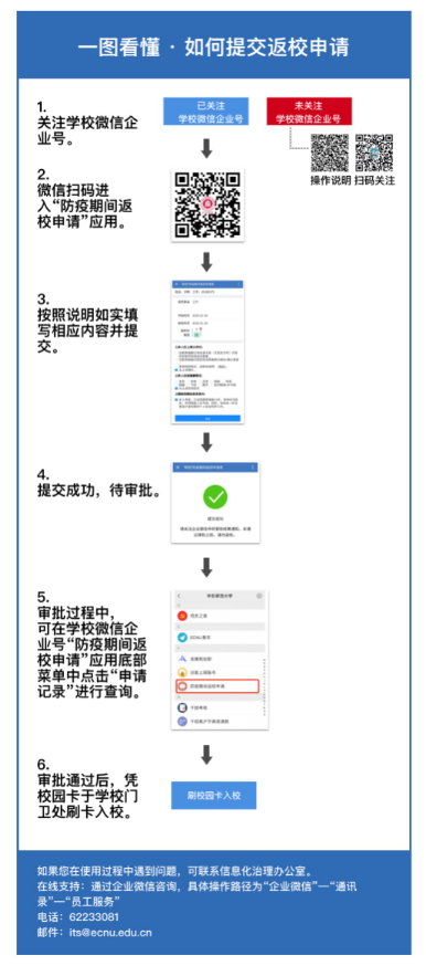 为便于学生返校申请和校园管理,学校开发了“学生返校申请”和“学生出校申请”小程序。学生只需通过“永利皇宫登录官网”微信企业号,填写健康信息和返校交通信息等,即可快速完成返校申请,并可查看本申请工作流。辅导员、院系学生工作负责人和相关职能部门人员可即时根据学生状态,对学生申请做出审批意见。此外,学校还通过“出校申请”小程序加强对学生临时进出校园的管理,做到出校有报备、去向可查询、安全有提醒、数据有记录。无纸化,零接触,优流程,简程序,有记录,通过信息化手段,既提升了校园管理效率,也为学生返校提供了最大便利。