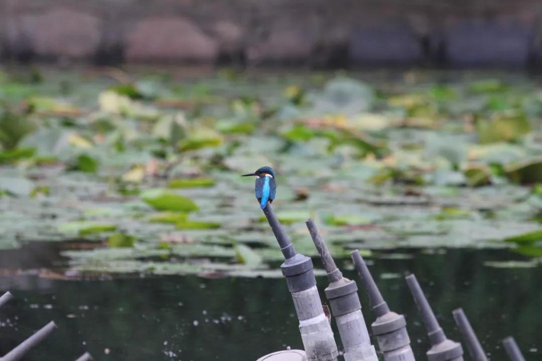 丽娃河汇聚了师大的灵性,鸟儿们也尤其喜欢出没于河边。它们选择喝水的地点往往是夏雨岛,相对幽静,且这里的缓坡也便于它们接近水面。在这里,如果你运气好,偶尔会看到一种浑身翠蓝色金属光泽的漂亮小鸟,它就是普通翠鸟。