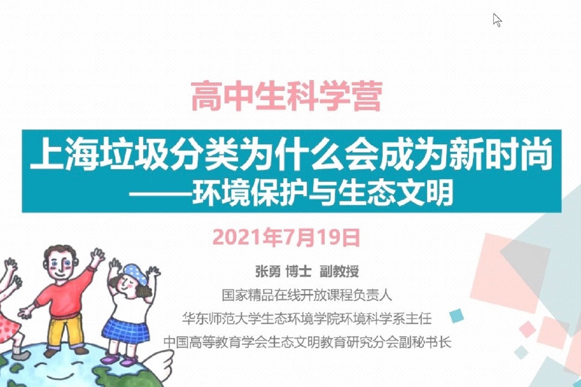 张颖教授引经据典,以历史上的重大事件“八大公害”与现下热点“新冠疫情”为例,为营员们打开了环境毒理学的大门;张勇教授用幽默诙谐的语言为营员们介绍了上海市进行生活垃圾分类这项“技术活”的原因,与营员们一同领略上海市生活垃圾分类的新时尚,并探究其与碳达峰、碳中和、全社会生态文明建设的关系。