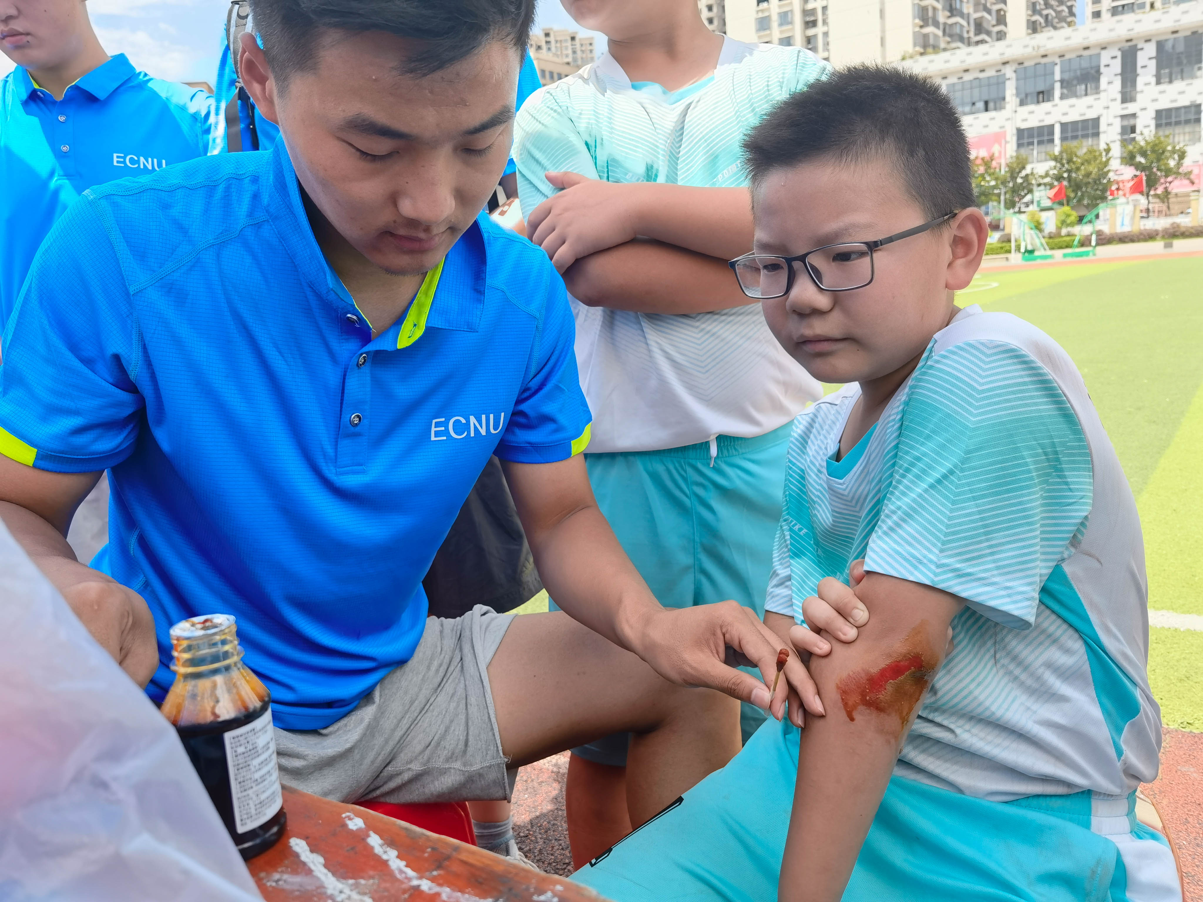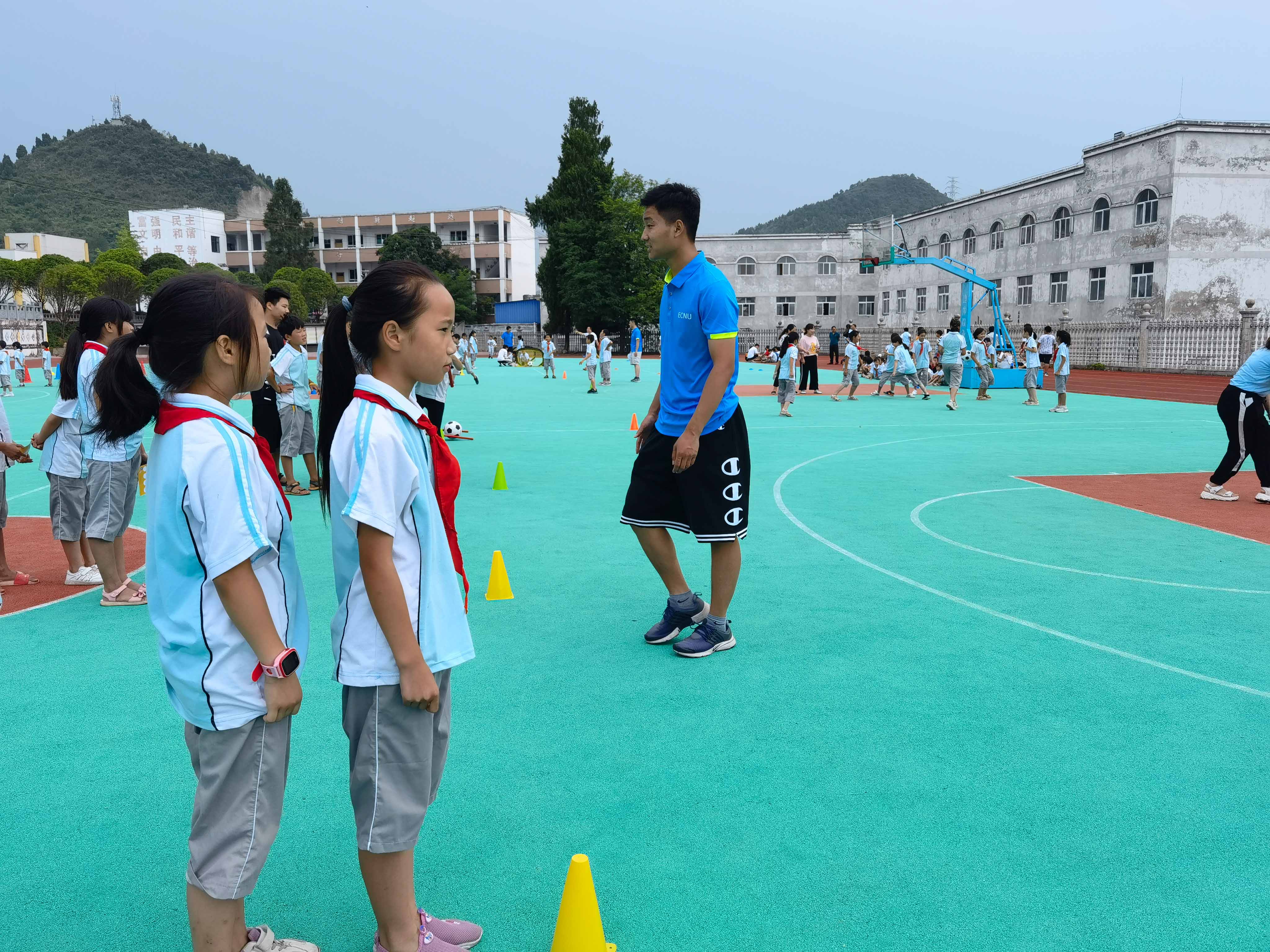 贵州省名校长工作室主持人兴隆小学易军校长邀请学院支教团队为其同盟校开展协同指导,于是支教团队每天奔波于铜仁市印江土家族苗族自治县的四所学校,对四所学校的校队开展训练与指导,并协助带队老师一起参与印江县第四届运动会,烈日下与老师和孩子们一同挥汗如雨,留下了深厚的友谊。