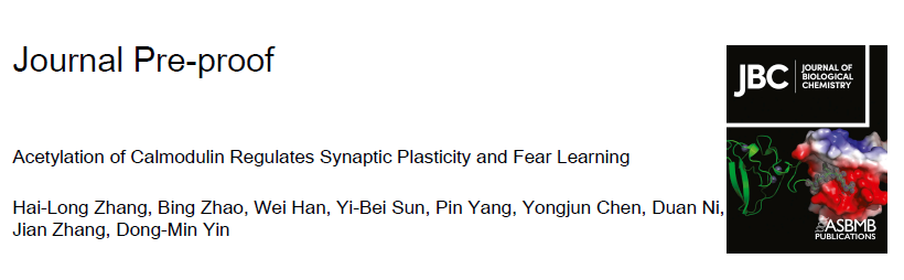 这部分研究成果以“Acetylation of Calmodulin Regulates Synaptic Plasticity and Fear Learning”为题发表。永利皇宫登录官网生命科学学院博士生张海龙(现工作于苏州大学)、赵冰(现工作于复旦大学)、韩威为论文的共同第一作者,殷东敏研究员为论文的通讯作者。上海交通大学张健教授团队提供了分子动力学计算方面的支持。