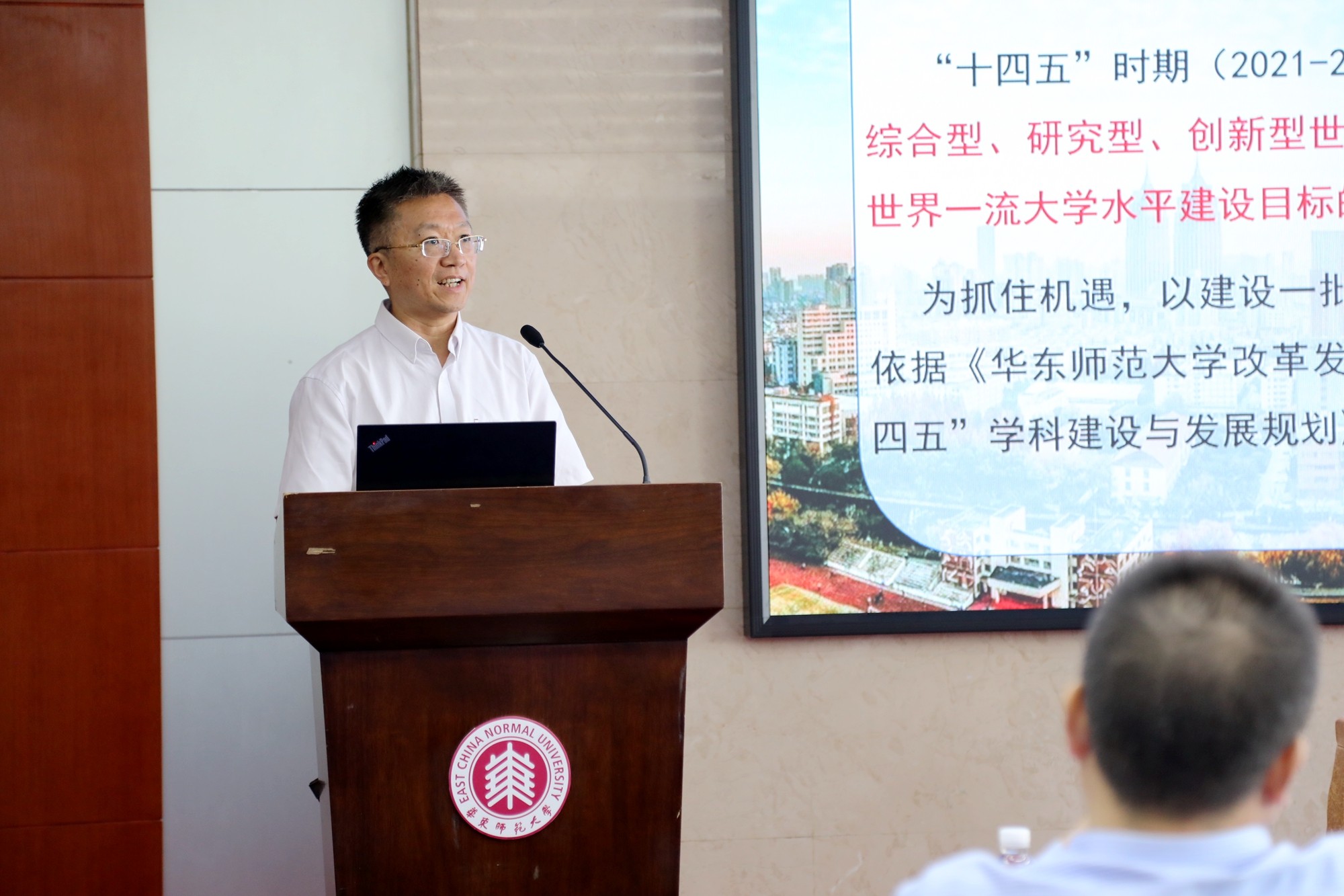 副校长雷启立作了“《永利皇宫登录官网“十四五”发展规划》(审议稿)解读”的主旨报告,校党委副书记曹友谊主持会议。雷启立主要从“十三五”规划的建设成效、“十四五”规划的编制过程、环境背景,以及“十四五”建设战略目标和“十四五”重点工作任务等方面进行了系统阐述。雷启立介绍道,五年来,华东师大整体办学水平和国际办学地位跃上新台阶,THE排名跃升世界前400强,学校入选国家“双一流”建设高校(A类)并顺利完成首轮建设周期任务。他指出,学校制订“十四五”规划面临着多个重要的历史节点和社会背景,在这样多重现实之中,学校确定2025年总体目标是学校整体实力稳居全国高水平大学前列,为2035年接近世界一流大学水平打下扎实基础。为实现这一目标,“十四五”规划建设期间,学校将从坚守筑梦教育初心,办好一流师范教育;围绕立德树人使命,打造卓越人才培养新模式;深化“双一流”内涵建设,构建学科发展新格局;追求学术卓越,提升科研创新的策源能力;对接国家及区域需求,着力提升服务新发展格局效能等十个层面来全力推进。